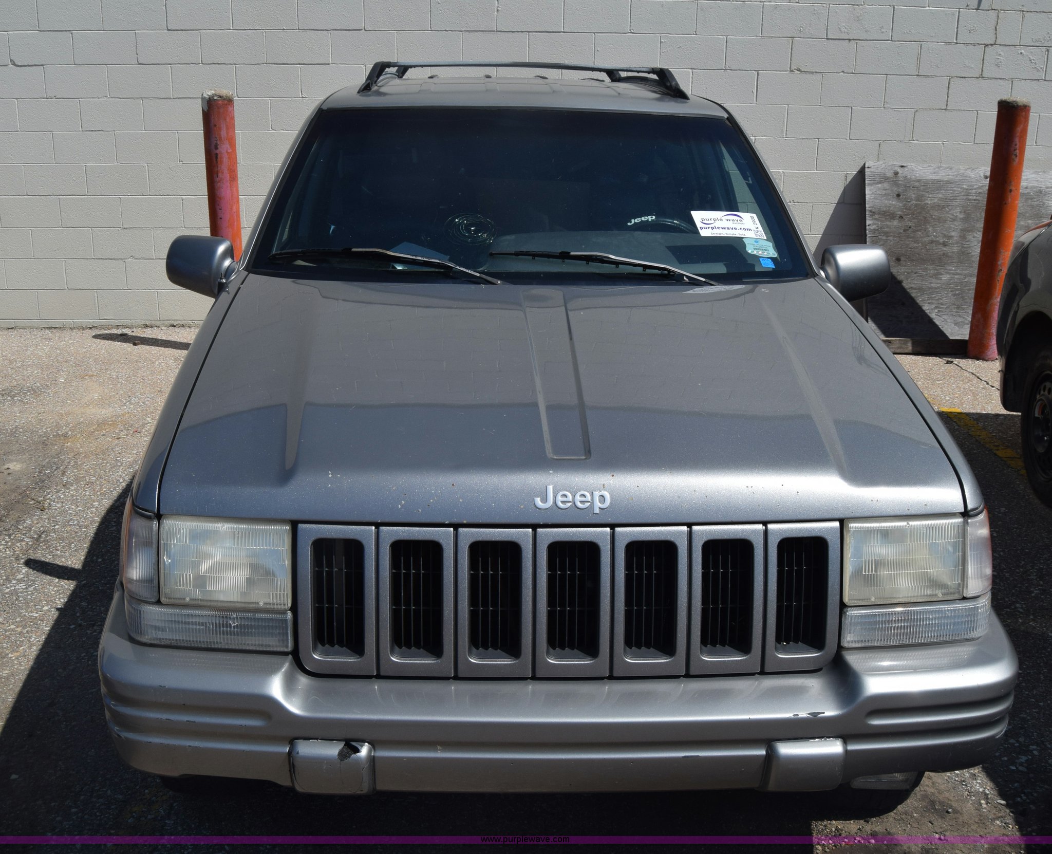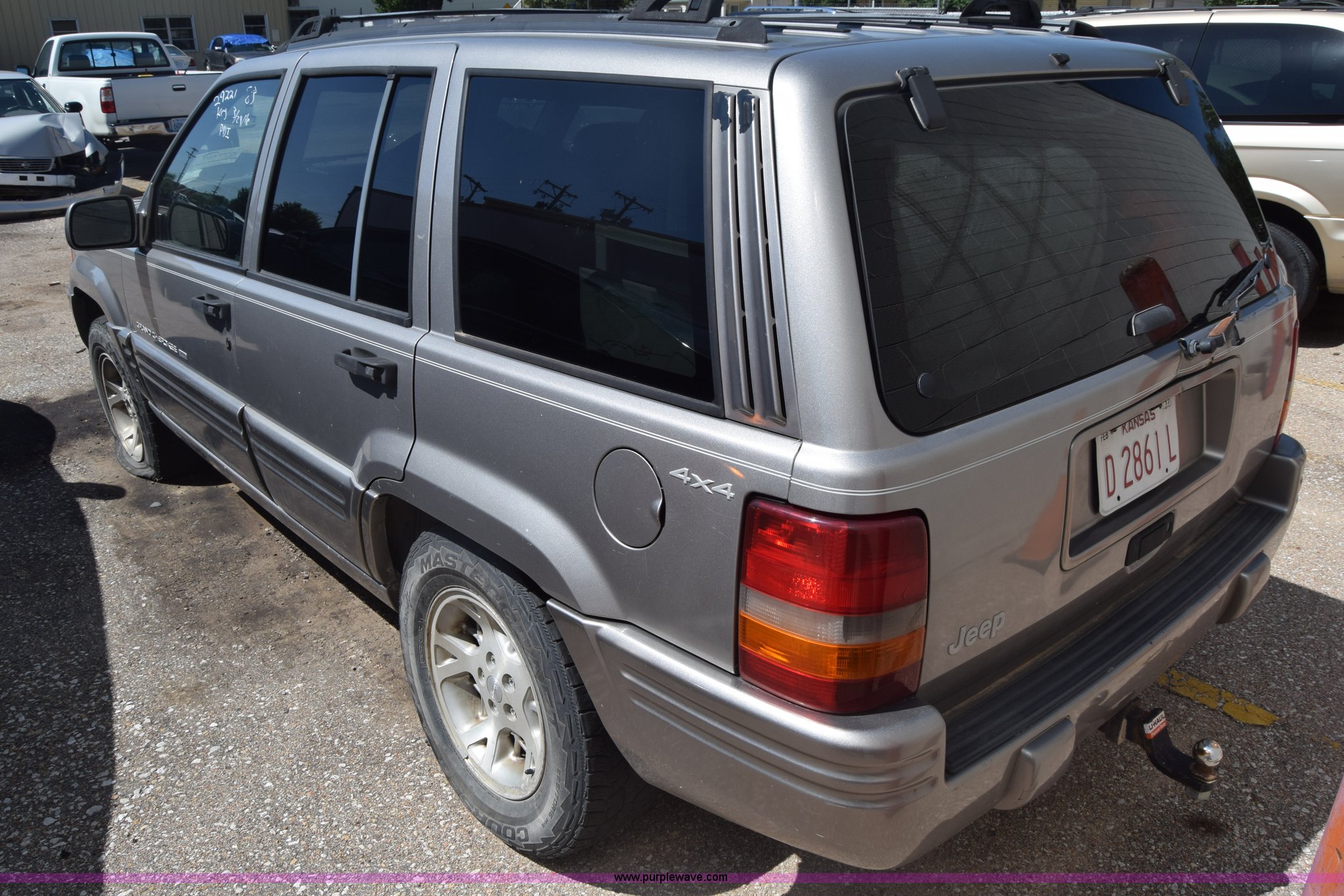Purple Wave is selling a used Passenger Vehicle in Kansas. This item is a 1997 Jeep Grand Cherokee SUV with the following: Unknown miles on odometer, 4.0L L6 OHV 12V gas engine, Automatic transmission, Four wheel drive, AC and heat, Tilt, Cruise, Power windows, locks, and mirrors, Leather interior, Receiver hitch, 225/70R16 tires, Doors locked, Stereo removed, Case# 16C019982