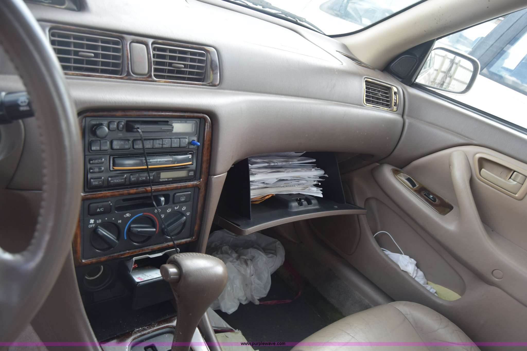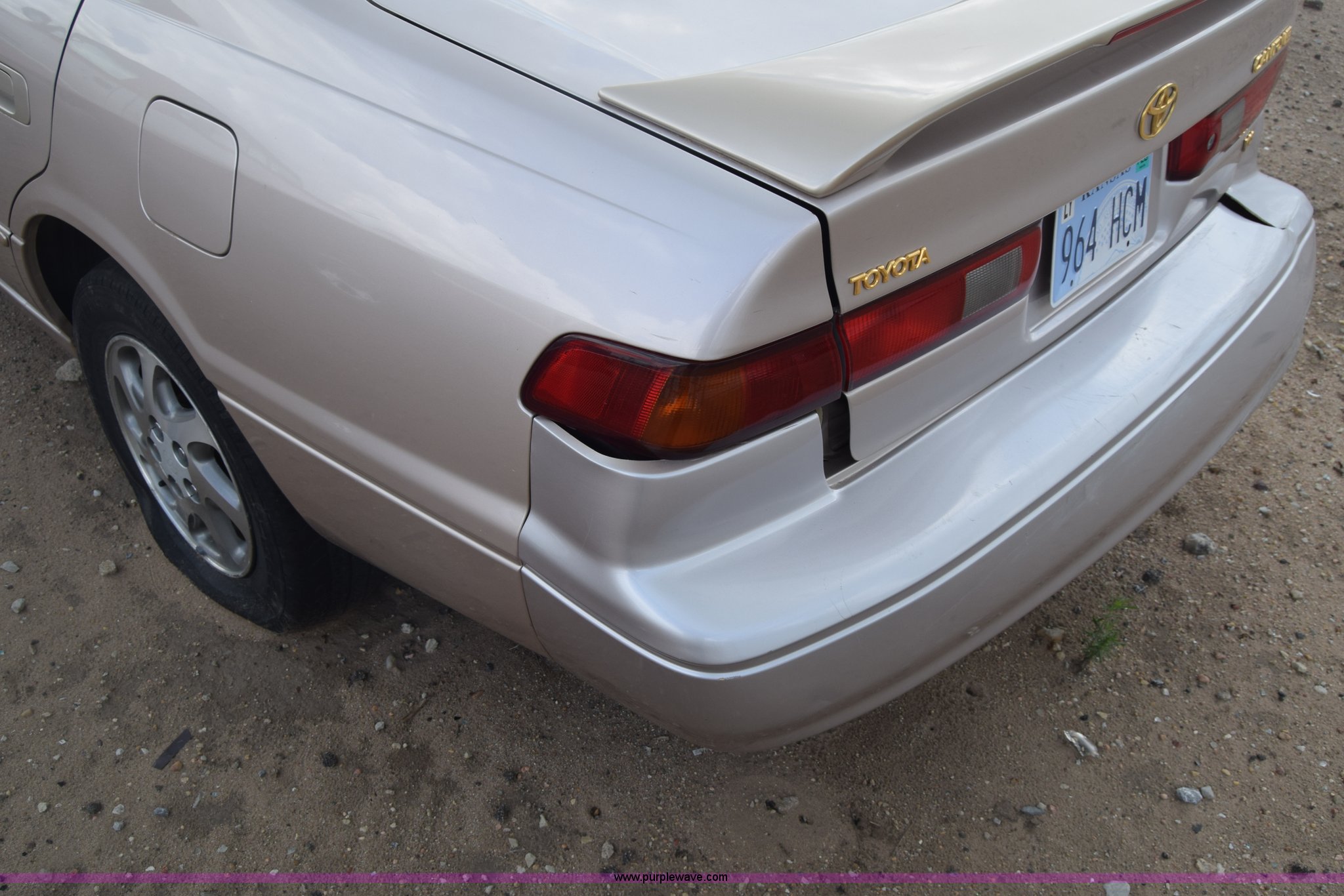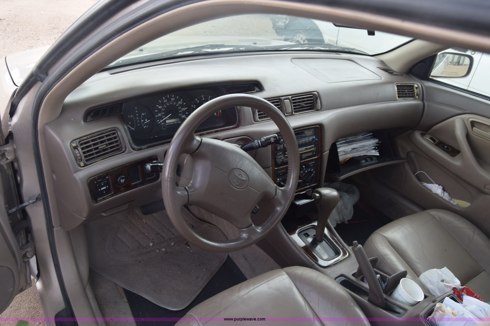 Purple Wave is selling a used Passenger Vehicle in Kansas. This item is a 1997 Toyota Camry with the following: Unknown miles on odometer, 3.0L V6 DOHC 24V gas engine, Automatic transmission, AC and heat, AM/FM/cassette, Power windows, locks, and mirrors, Vinyl interior, Sunroof, 205/65R15 tires, Rear bumper damage, Case# 16C034607