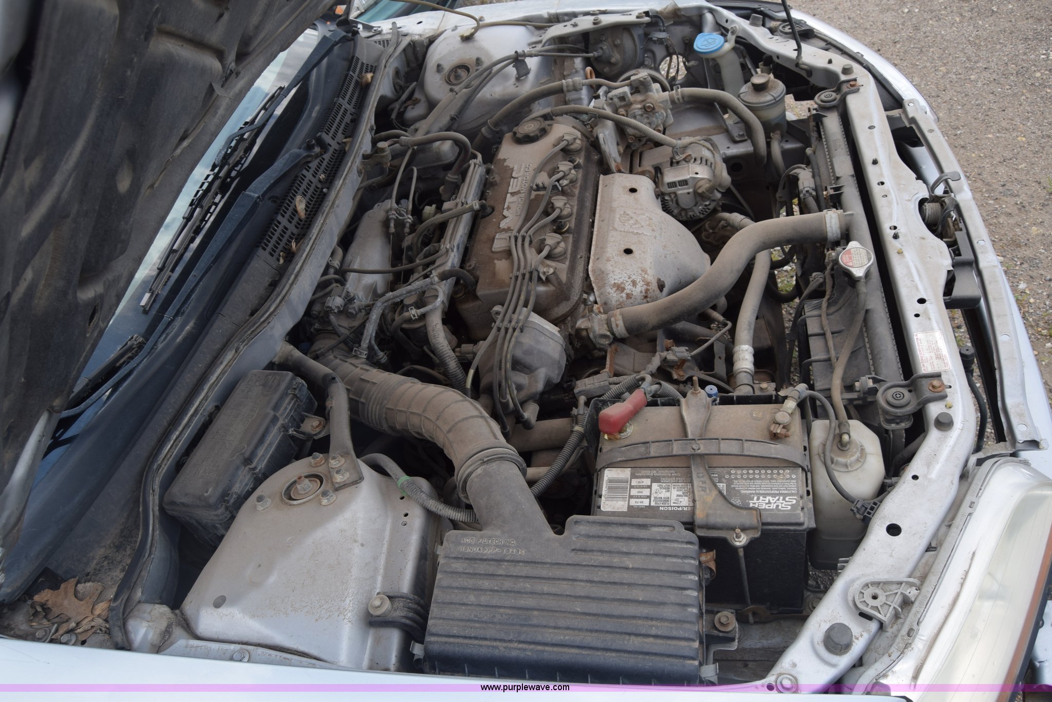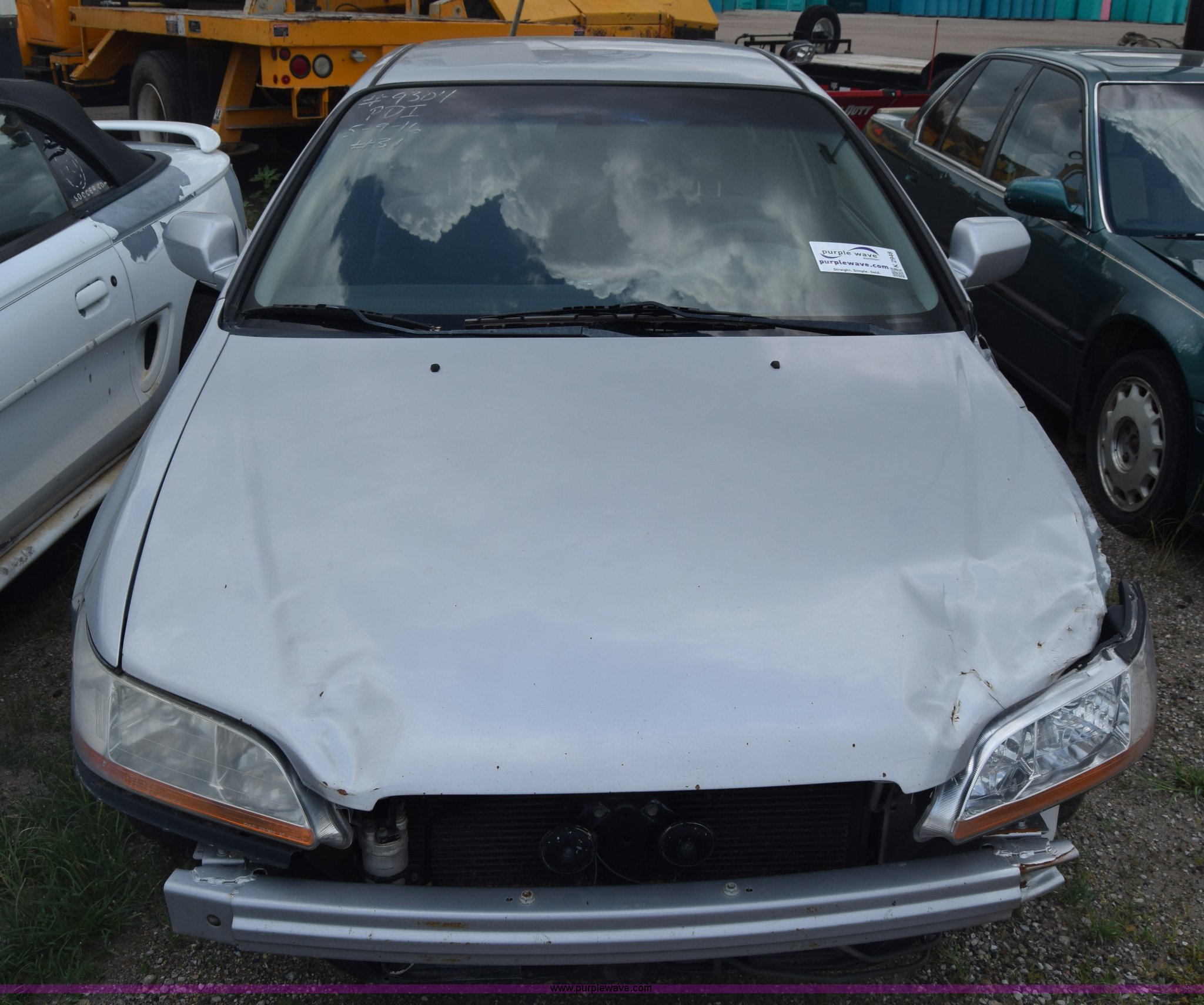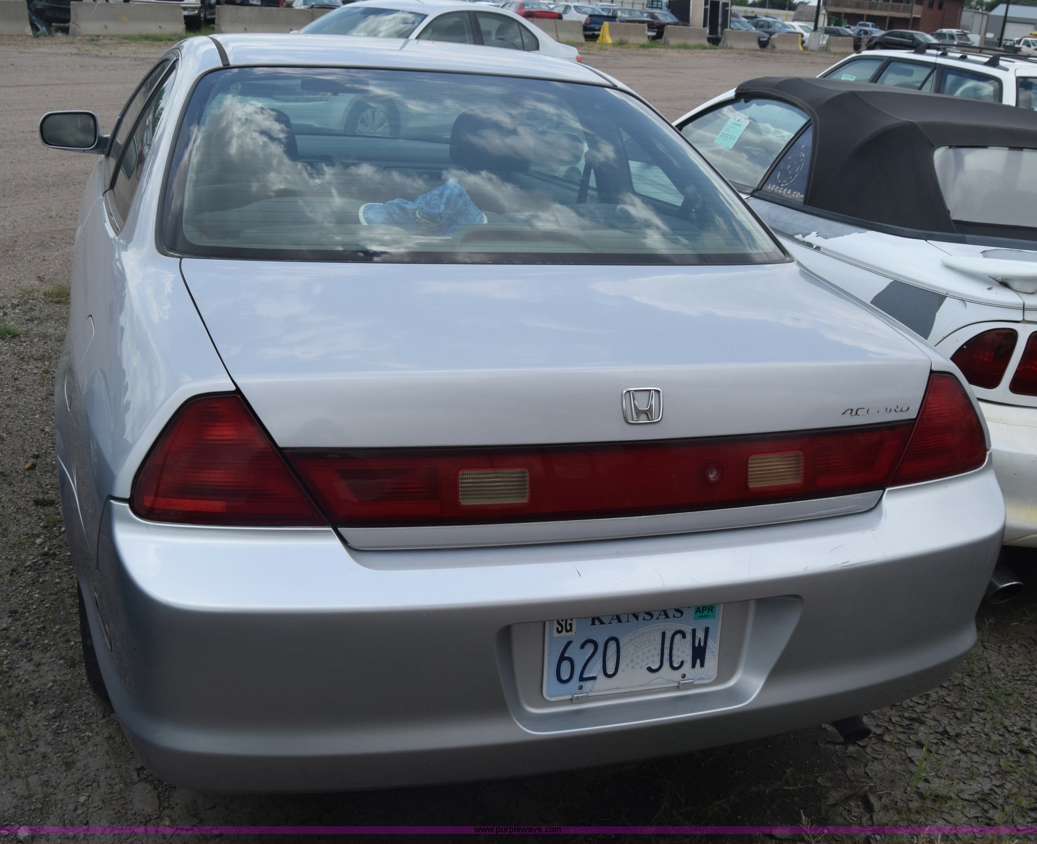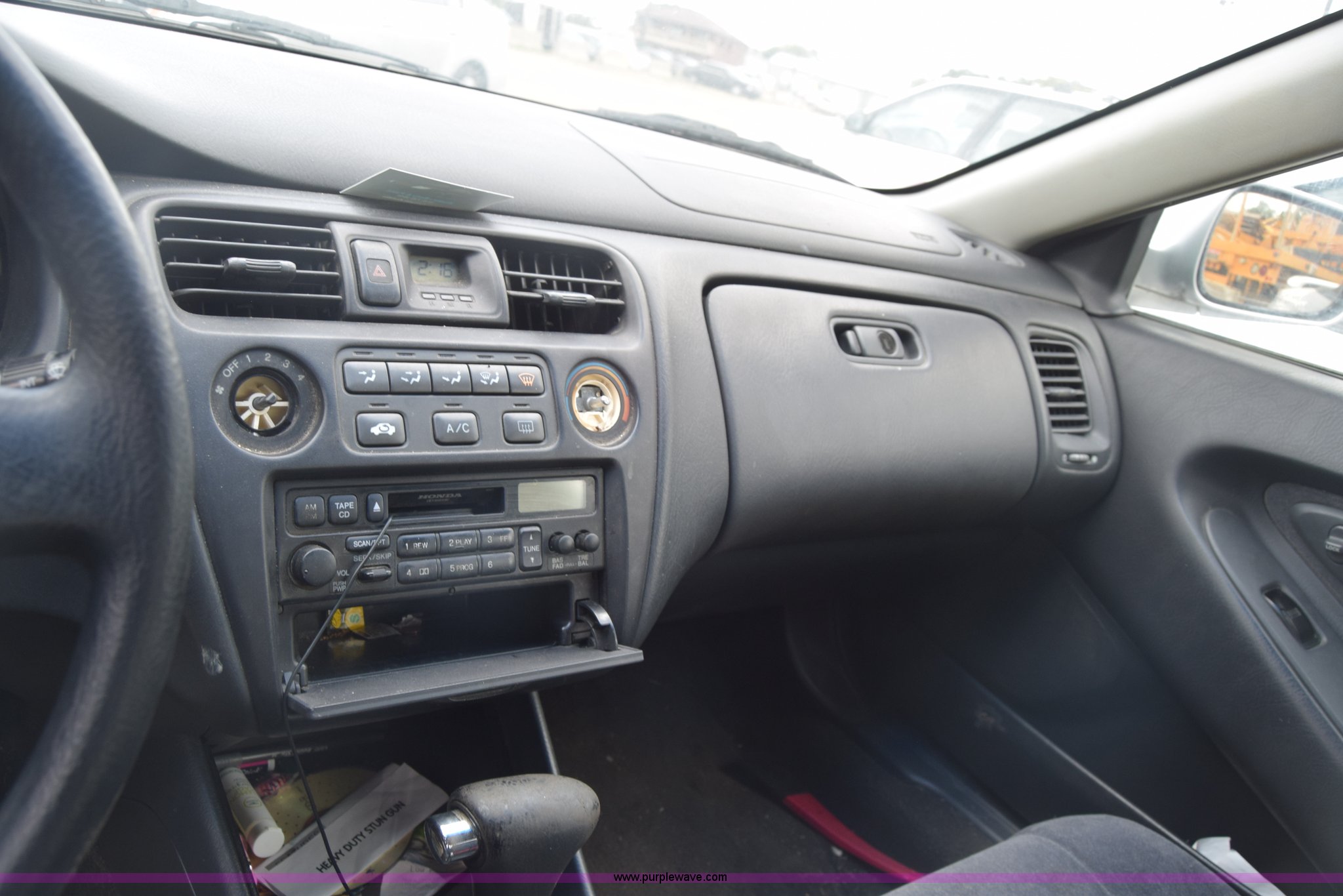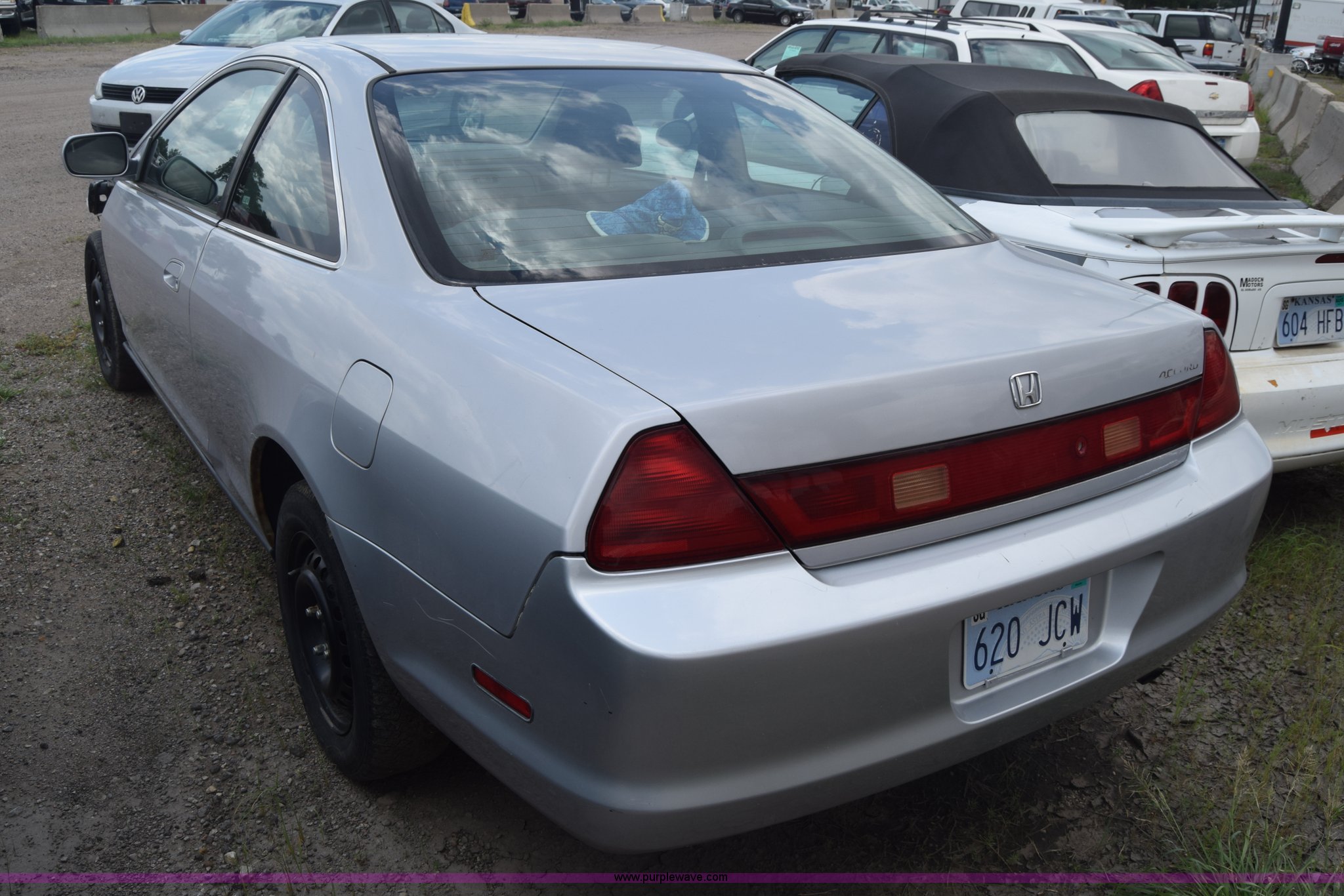 Purple Wave is selling a used Passenger Vehicle in Kansas. This item is a 1999 Honda Accord with the following: Unknown miles on odometer, 2.3L L4 SOHC 16V gas engine, Automatic transmission, AC and heat, AM/FM/CD, Power windows, locks, and mirrors, Cloth interior, 195/65R15 tires, Front end damage, Front bumper missing, Case# 16C031660