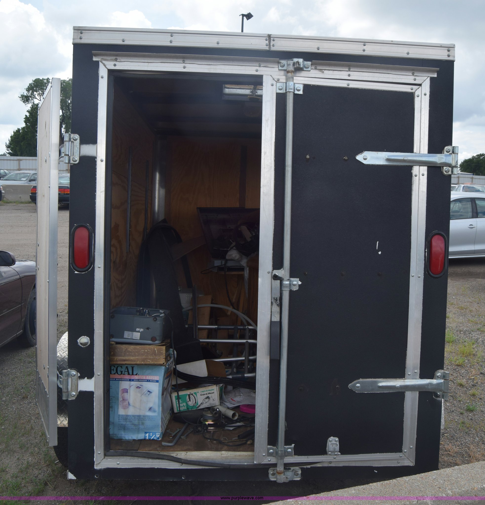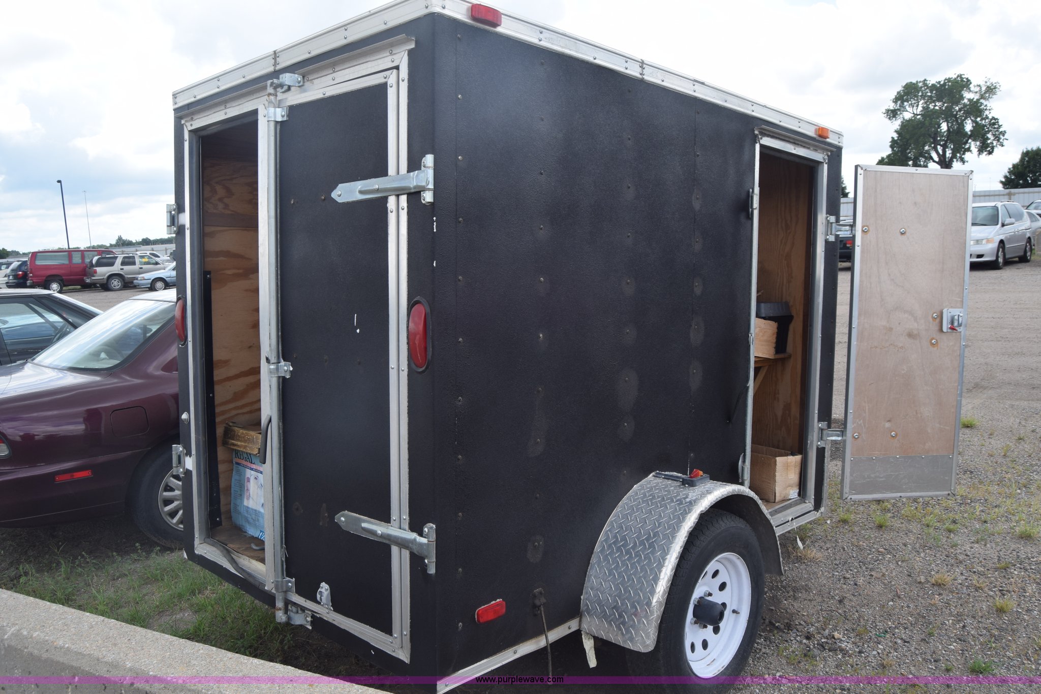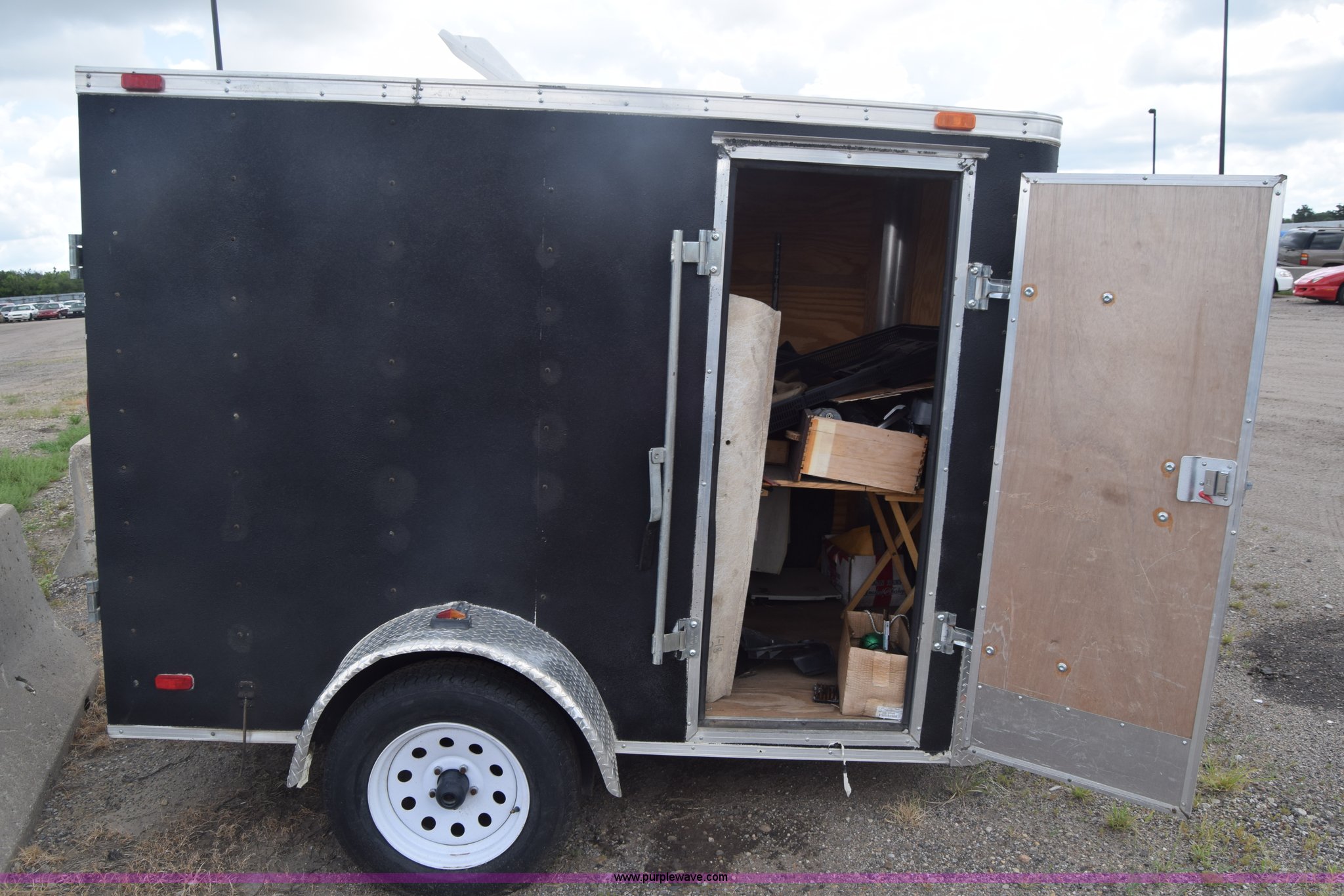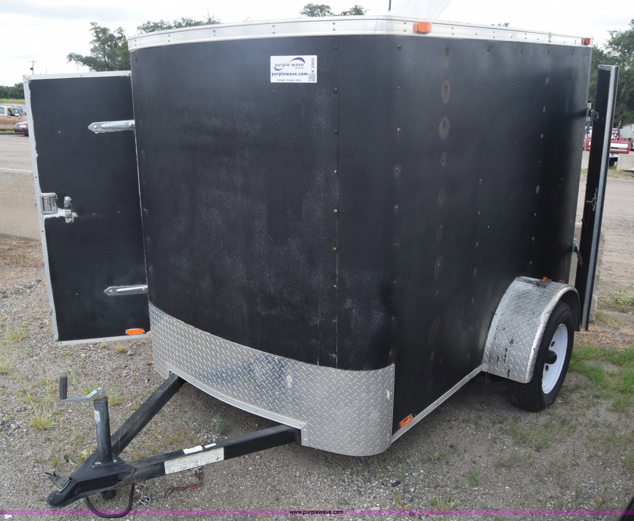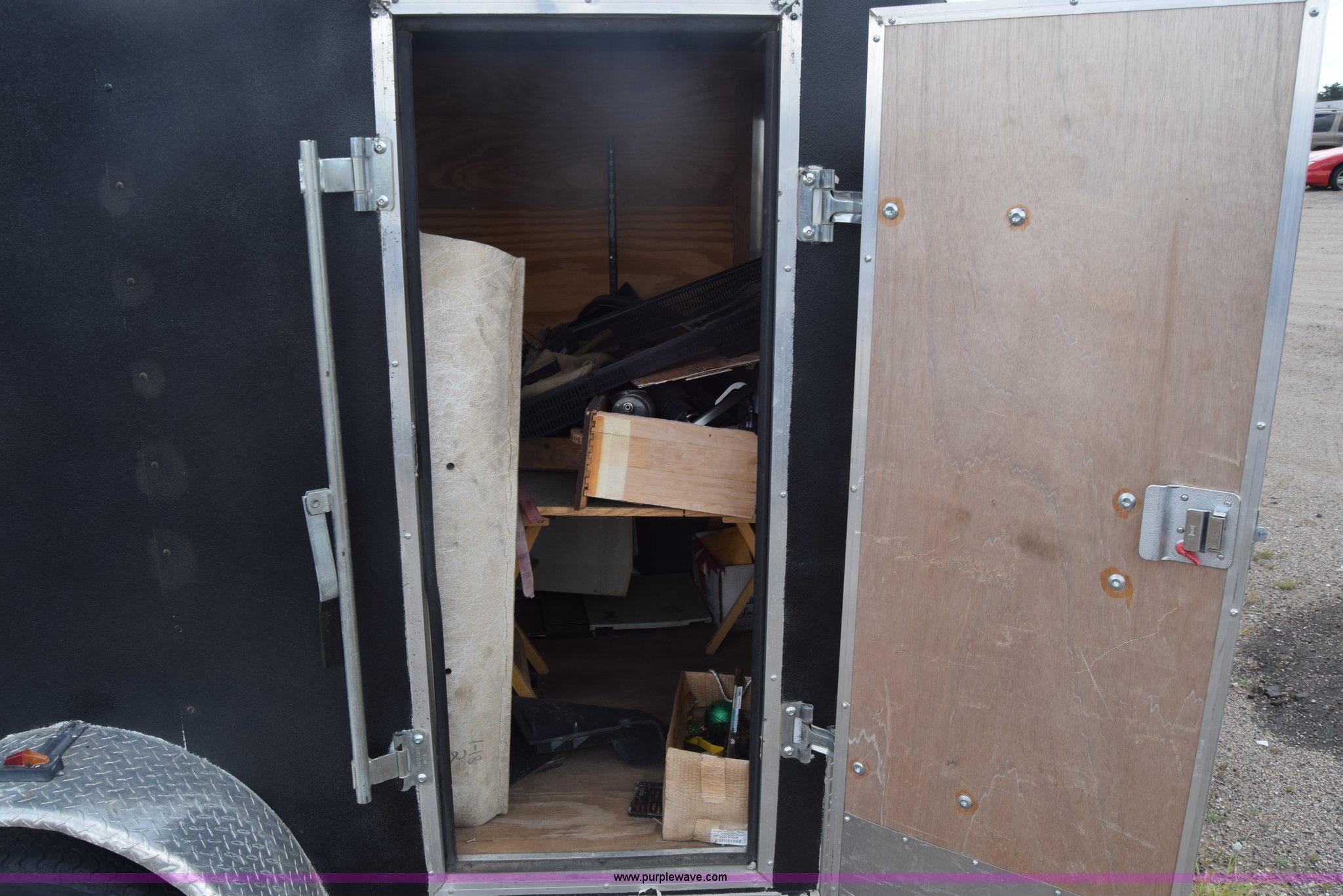 Purple Wave is selling a used Enclosed Cargo Trailer in Kansas. This item is a 2011 American Hauler enclosed cargo trailer with the following: 9'L x 65"W, Rear swing-out doors, Wood floor, Ball hitch, 205/75D15 tires, Dents, Scratches, Case# 16C027554
