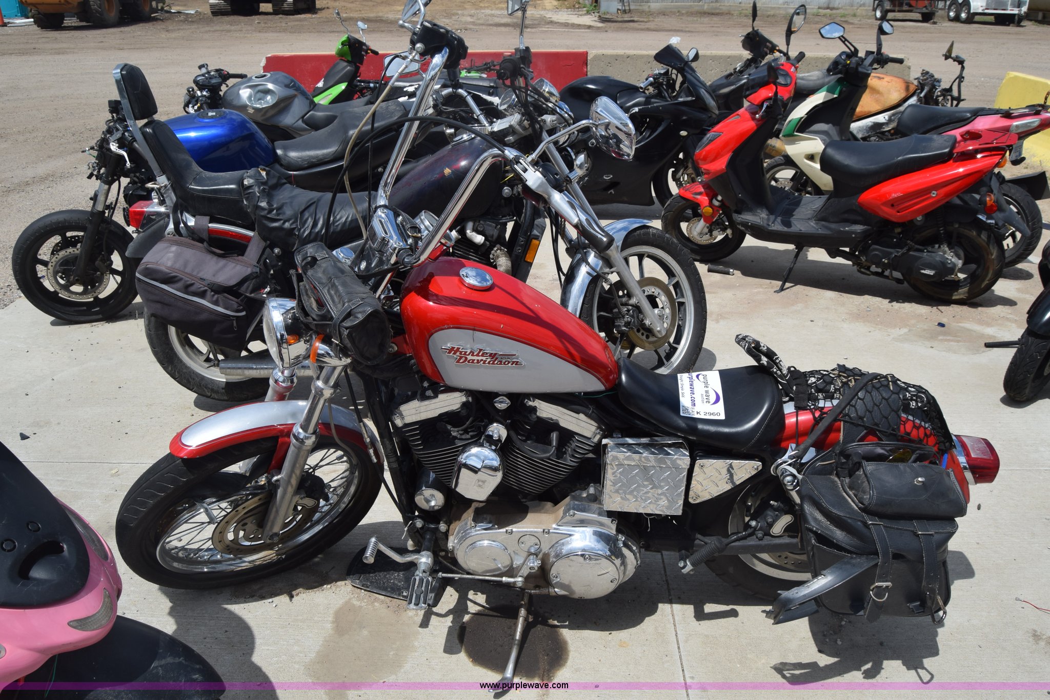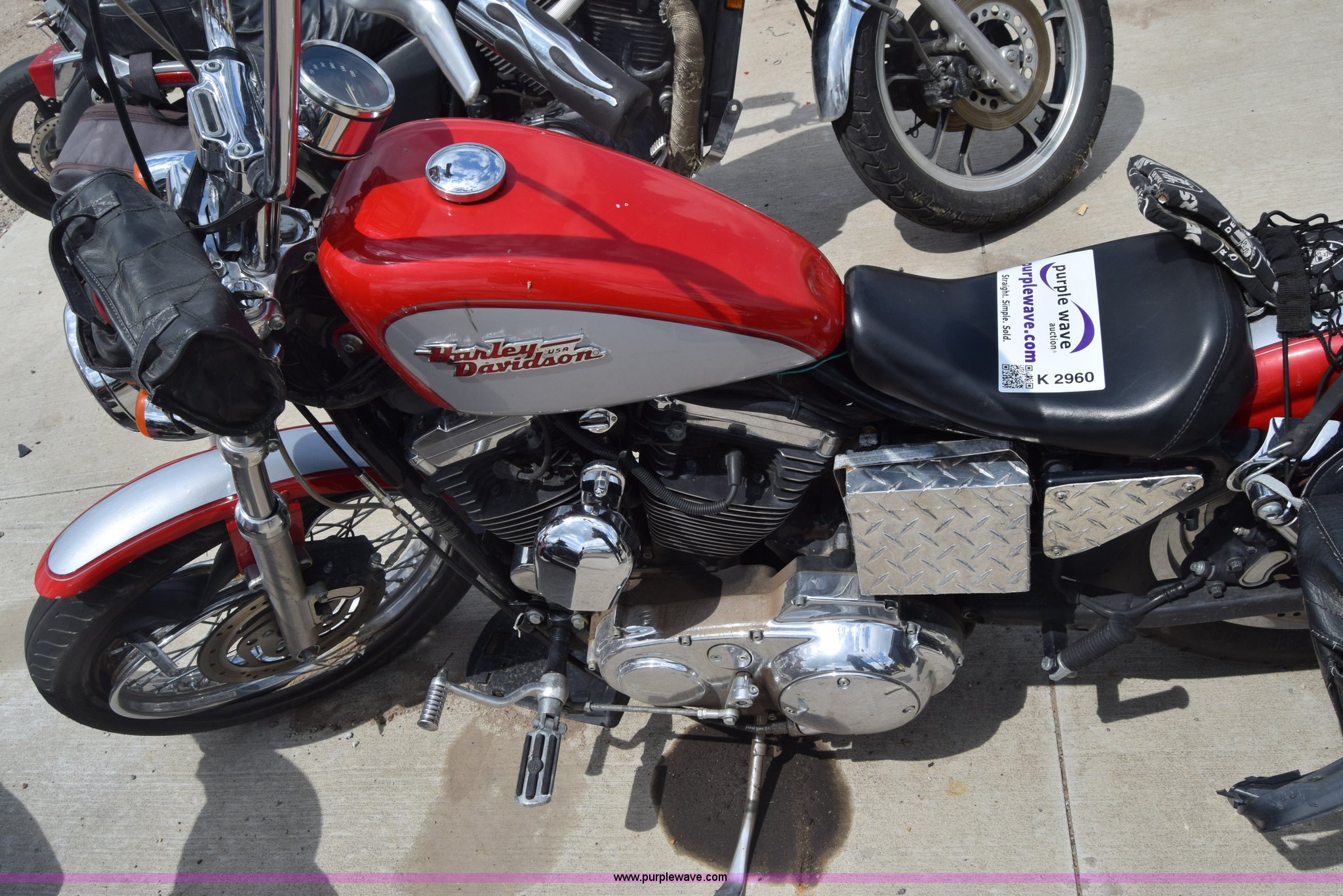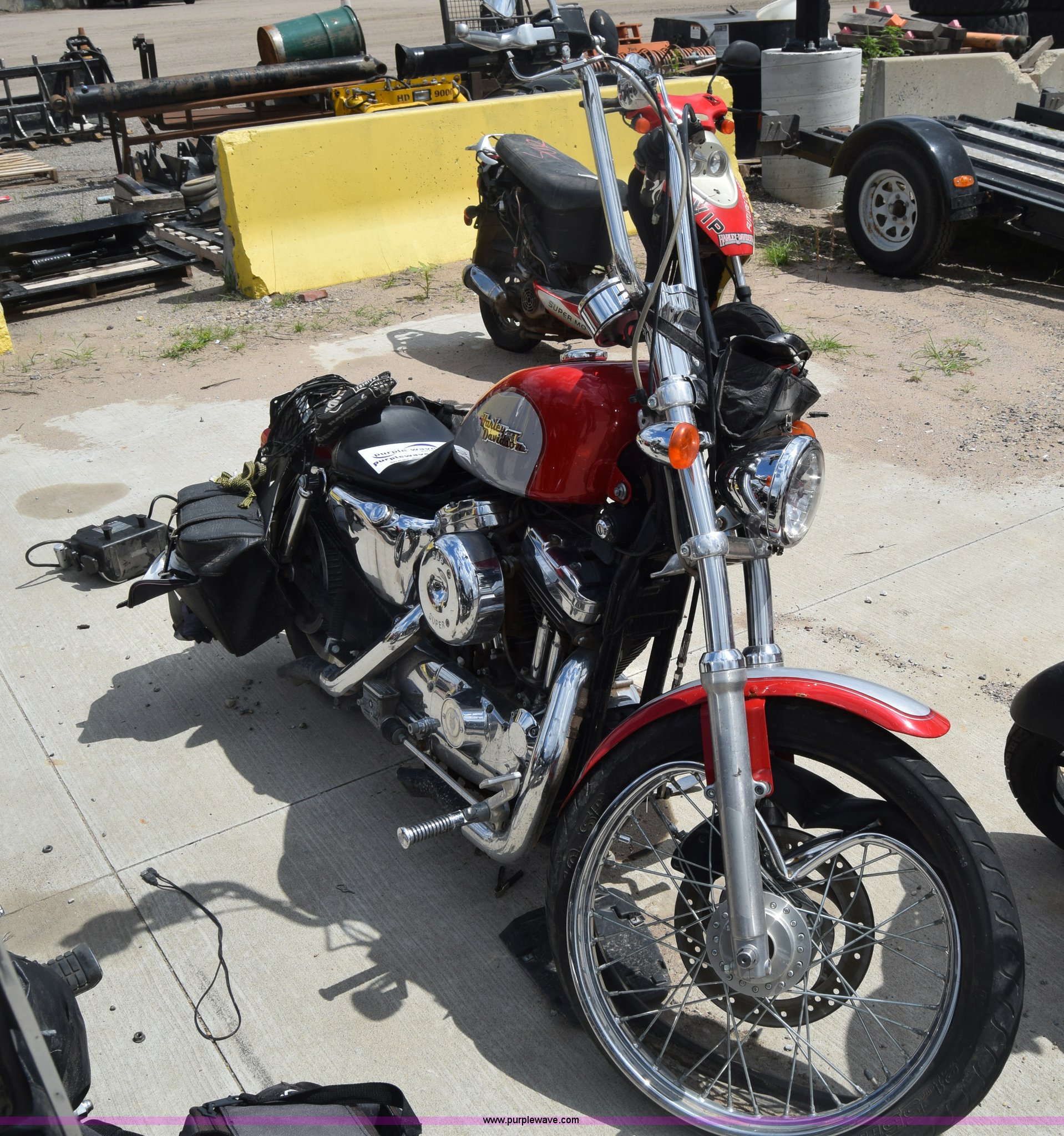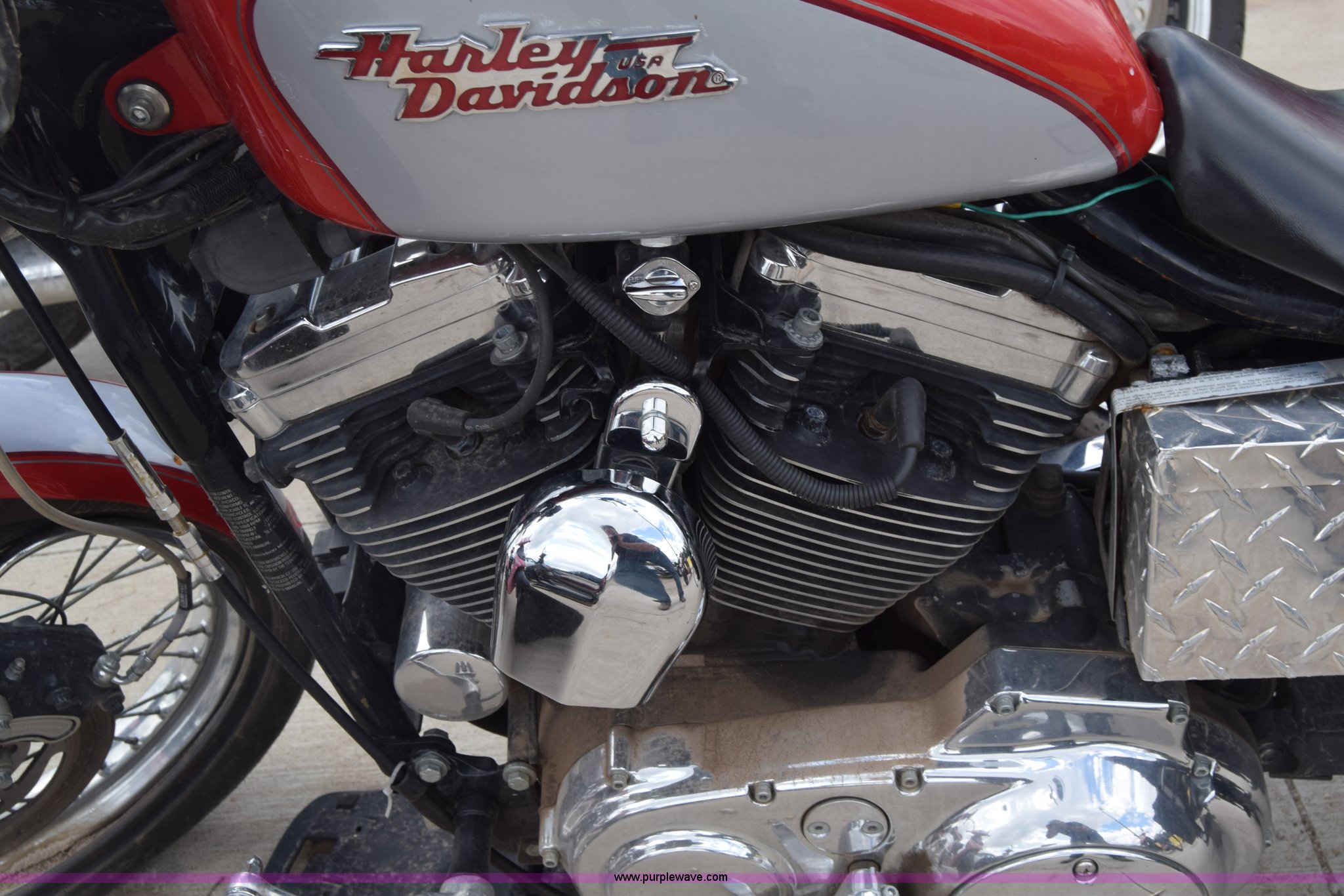 Purple Wave is selling a used Motorcycle in Kansas. This item is a 2002 Harley Davidson XL1200C Sportster motorcycle with the following: Unknown miles on odometer, 1200cc gas engine, Manual transmission, MH90-21 56H tires, Tires off wheel, Case# 16C26787