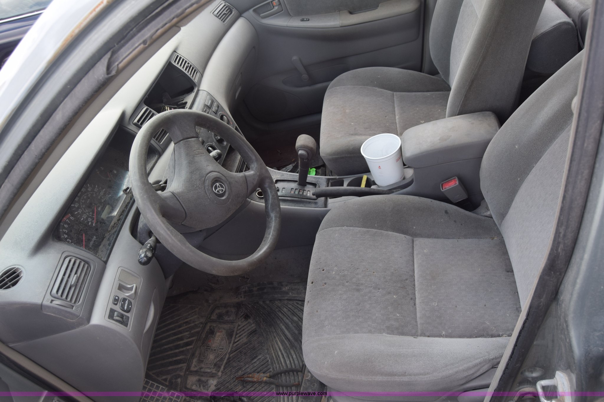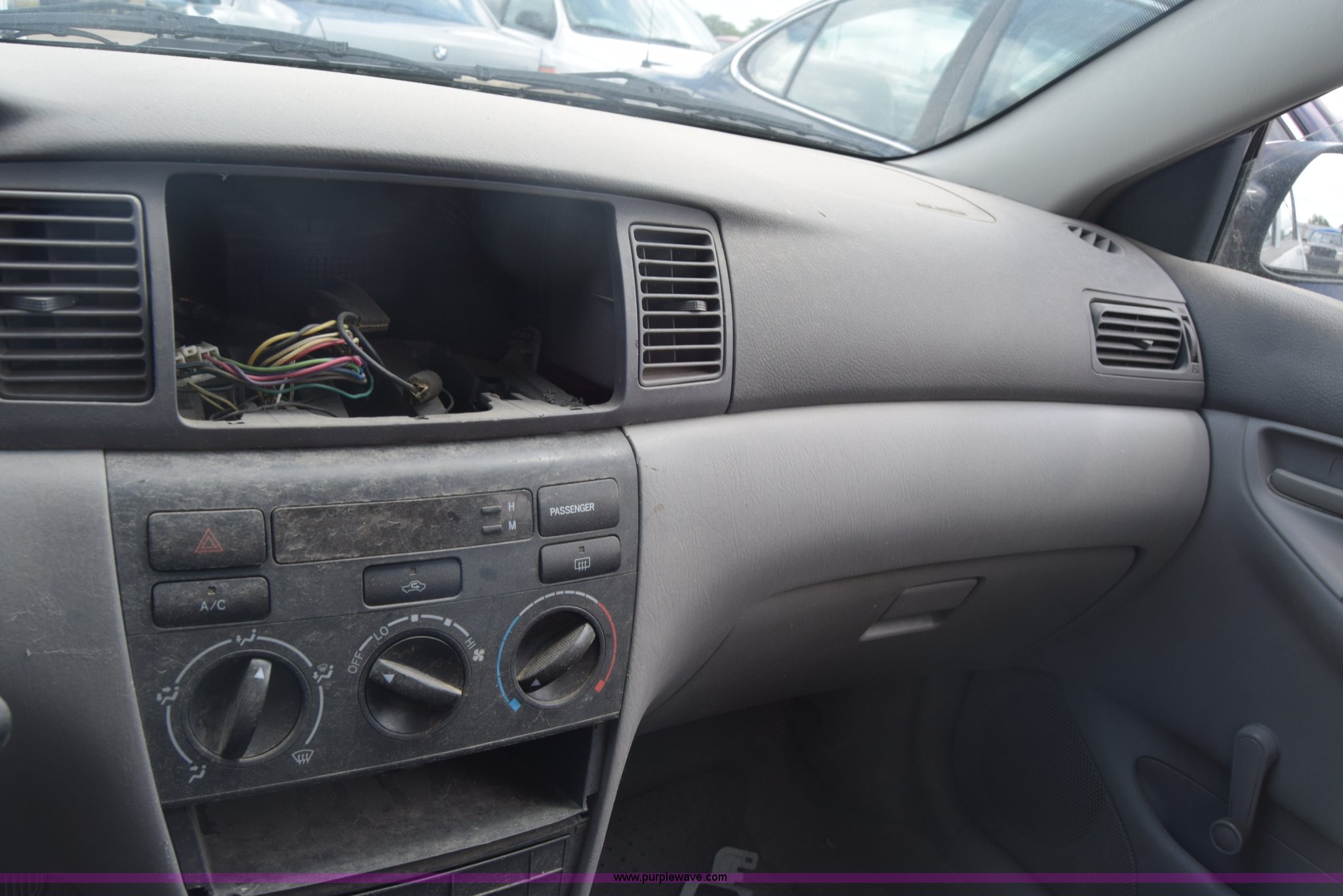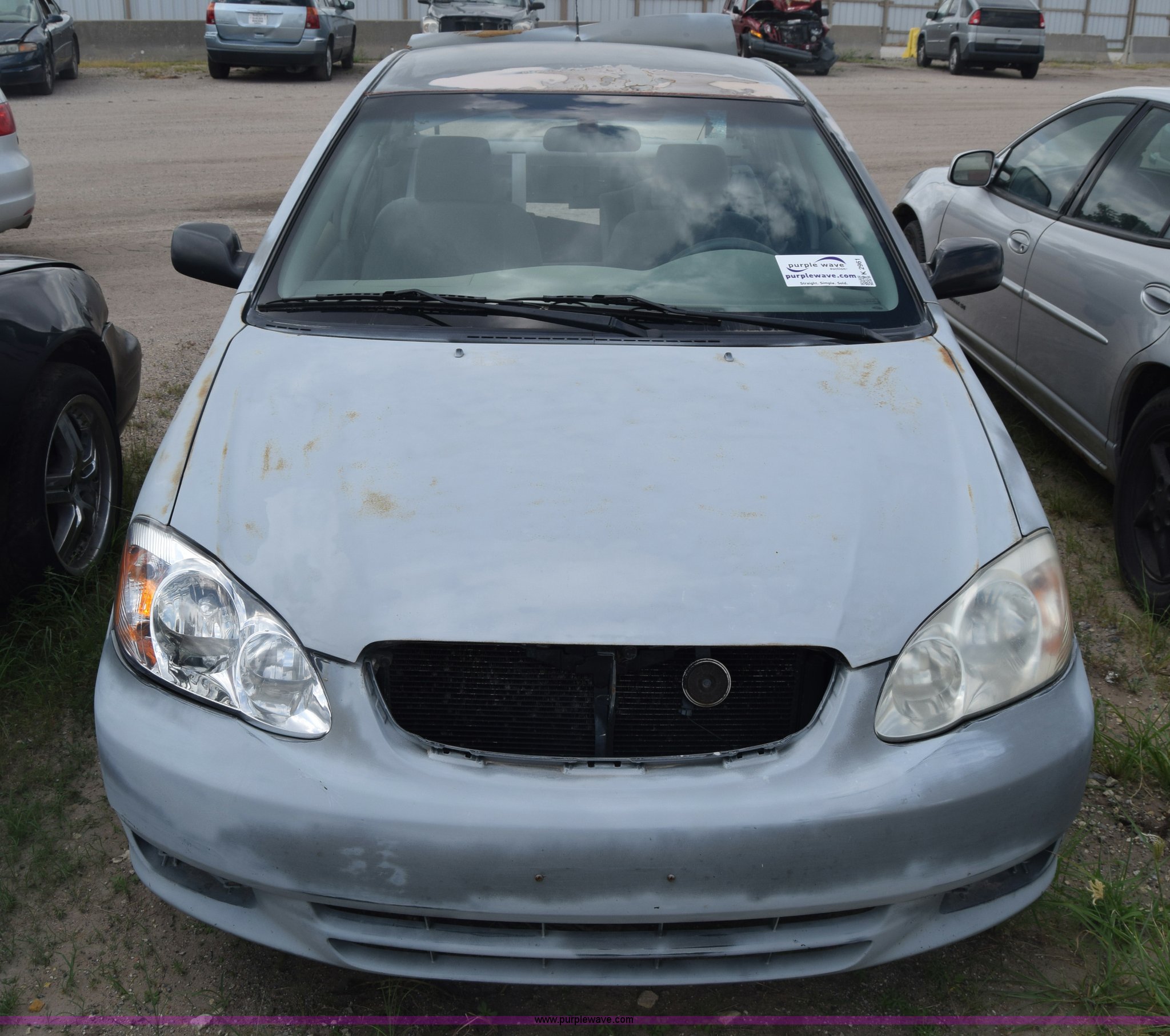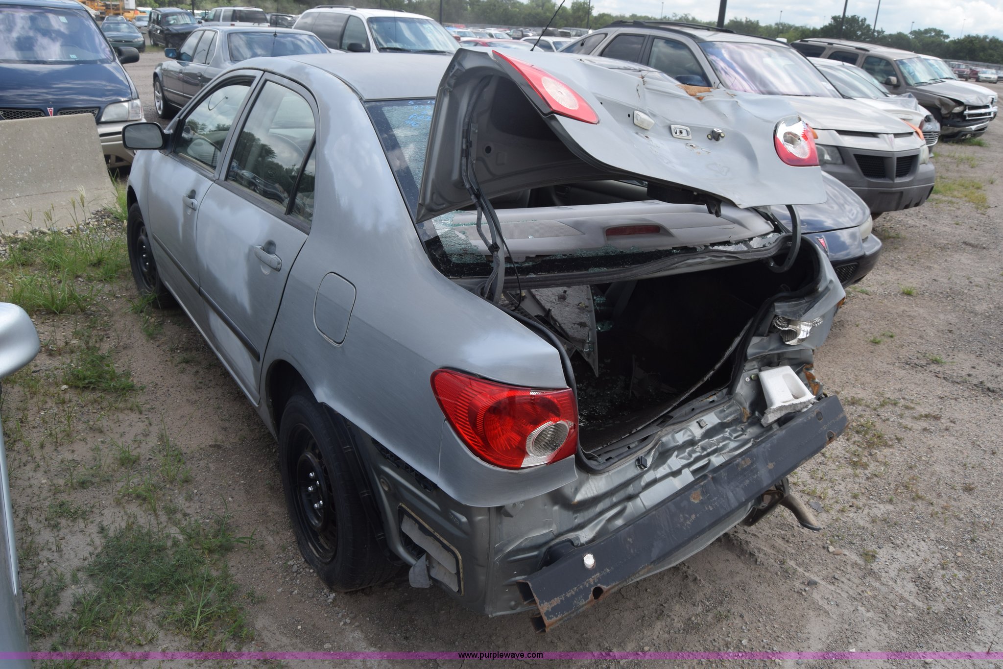 Purple Wave is selling a used Passenger Vehicle in Kansas. This item is a 2003 Toyota Corolla with the following: Unknown miles on odometer, 1.8L L4 DOHC 16V gas engine, Automatic transmission, AC and heat, Manual windows and locks, Cloth interior, 195/60R15 tires, Mismatched paint, Rear end damage, Stereo removed, Case# 16C032421