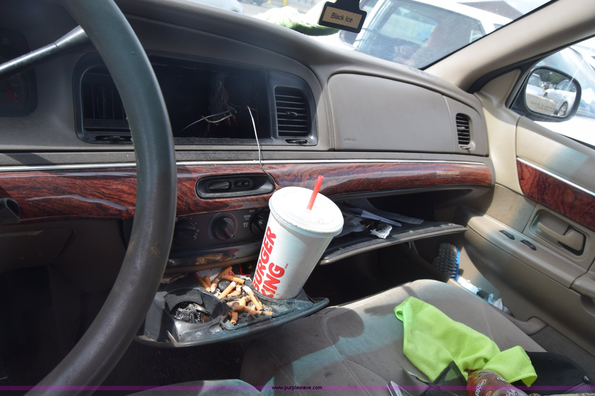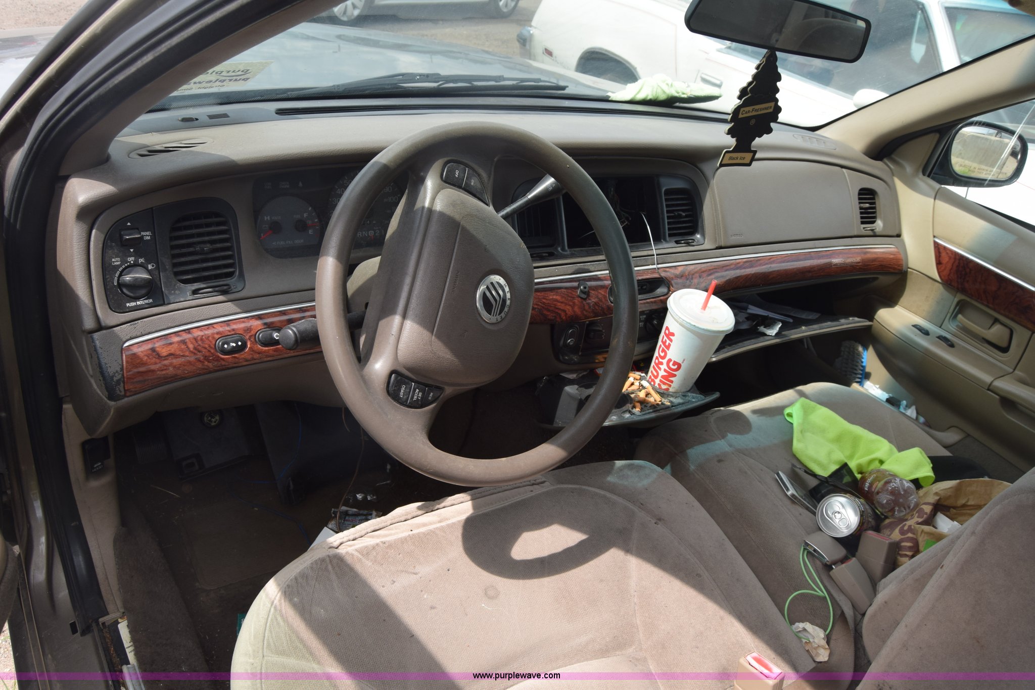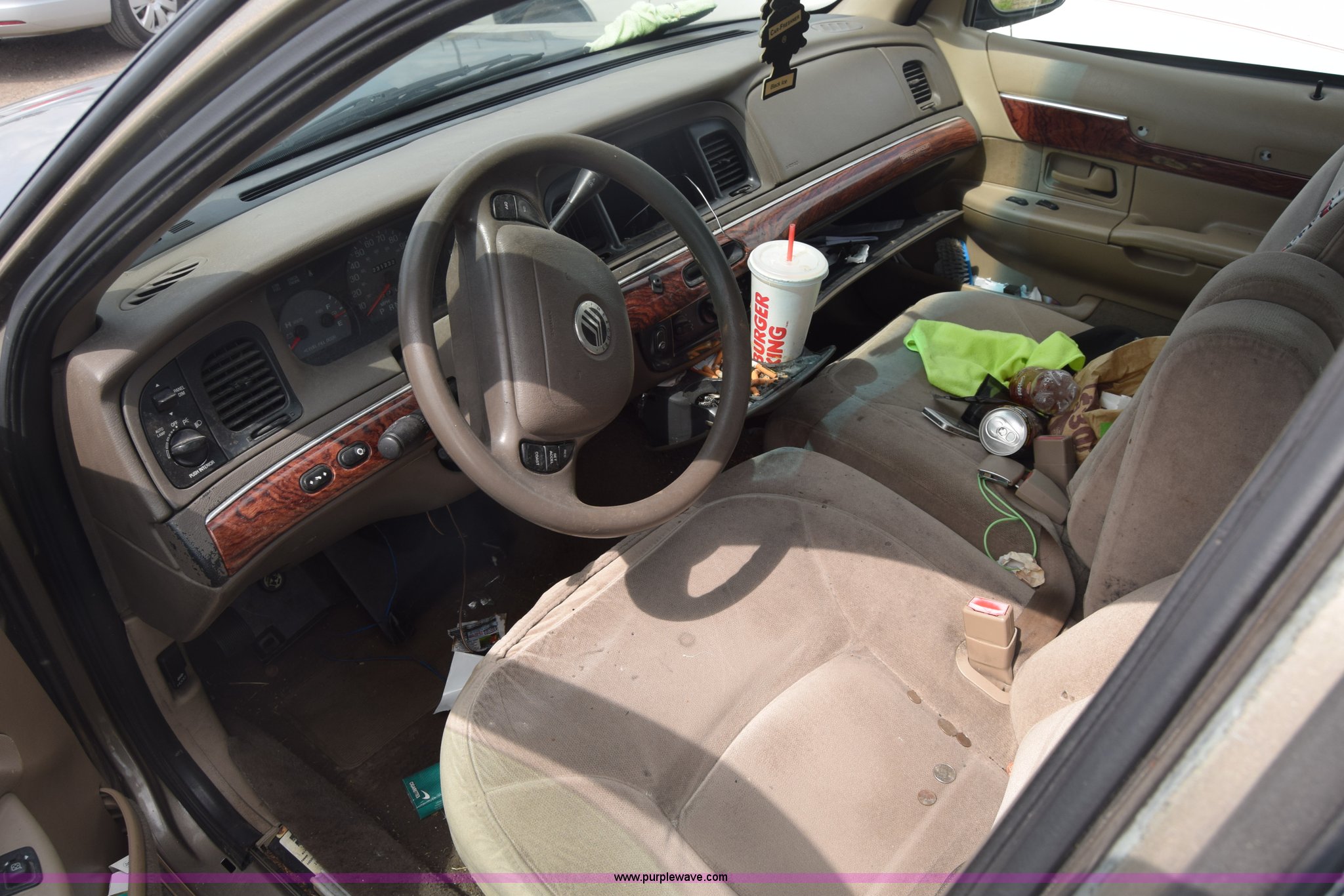 Purple Wave is selling a used Passenger Vehicle in Kansas. This item is a 2002 Mercury Grand Marquis with the following: 231,232 miles on odometer, Actual mileage unknown, 4.6L V8 SOHC 16V gas engine, Automatic transmission, AC and heat, Tilt, Cruise, Power windows, locks, and mirrors, Cloth interior, 215/60R16 tires, Hood will not open, Stereo removed, Case# 16C033723