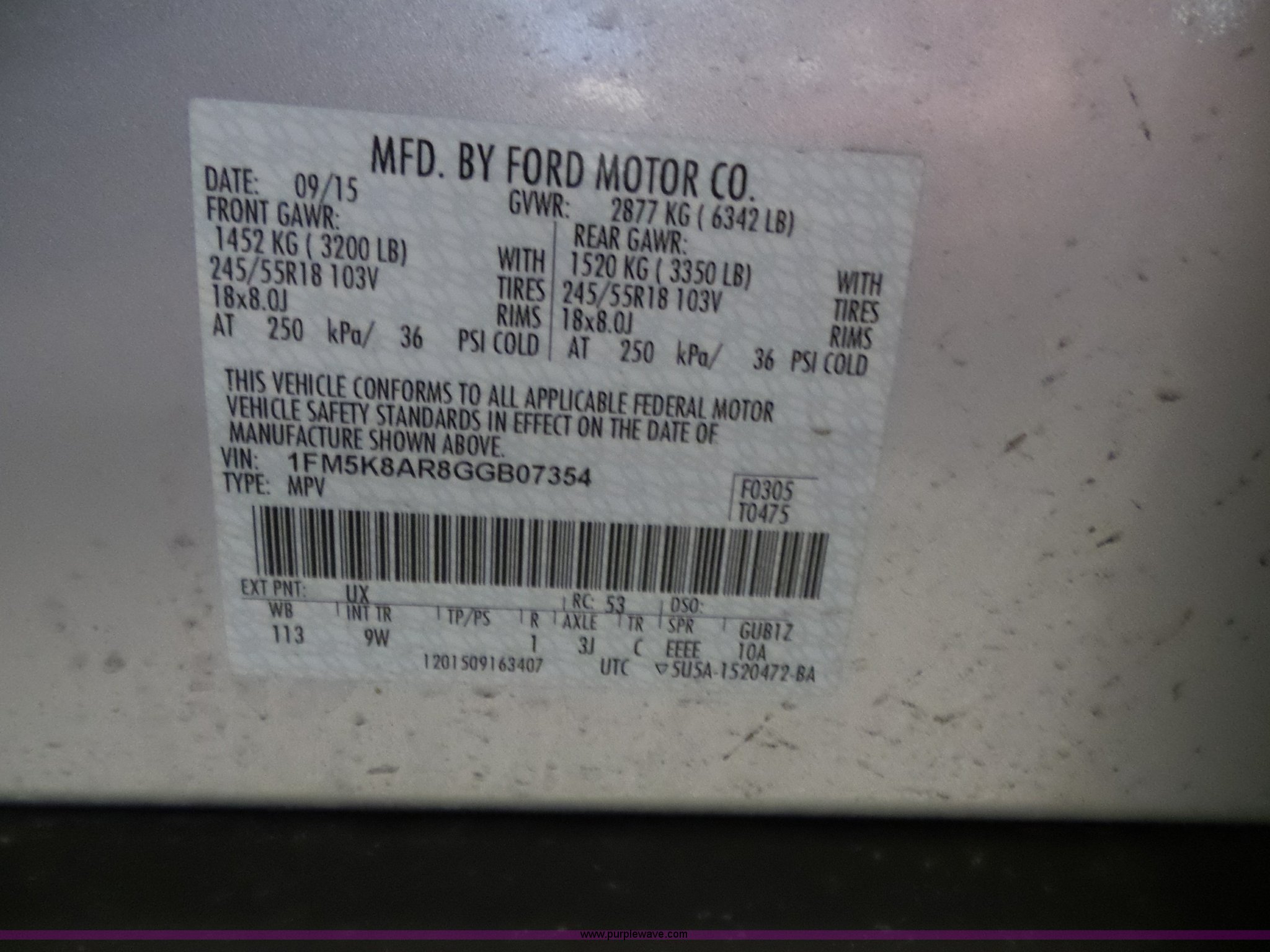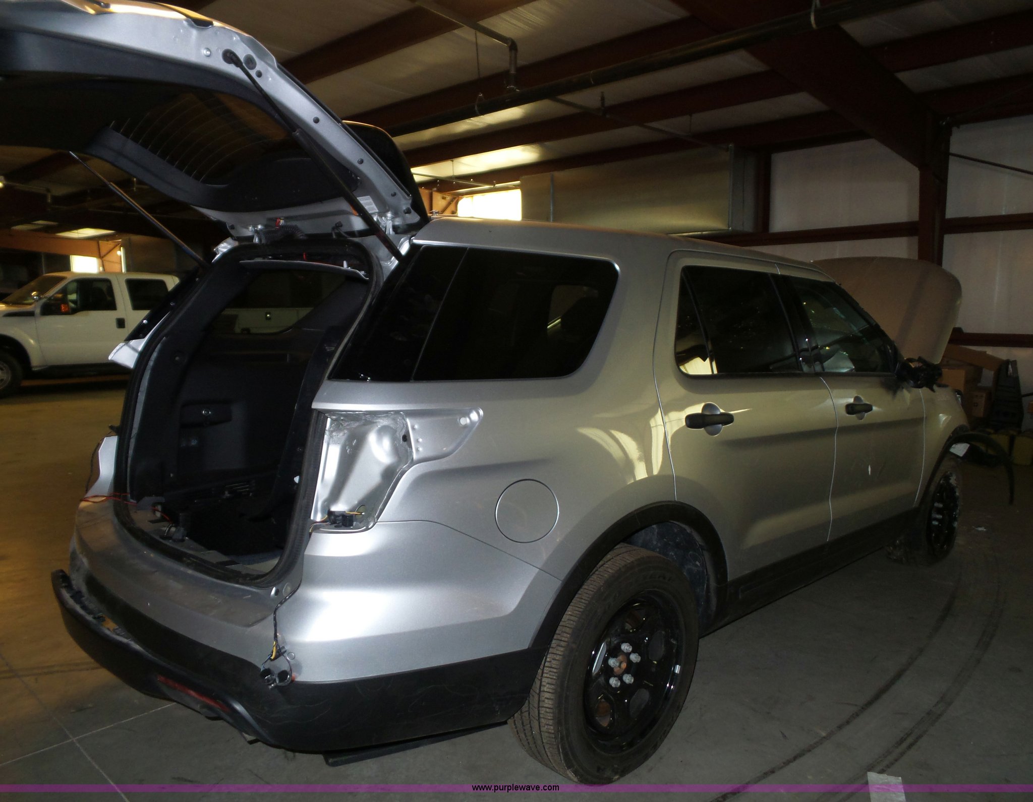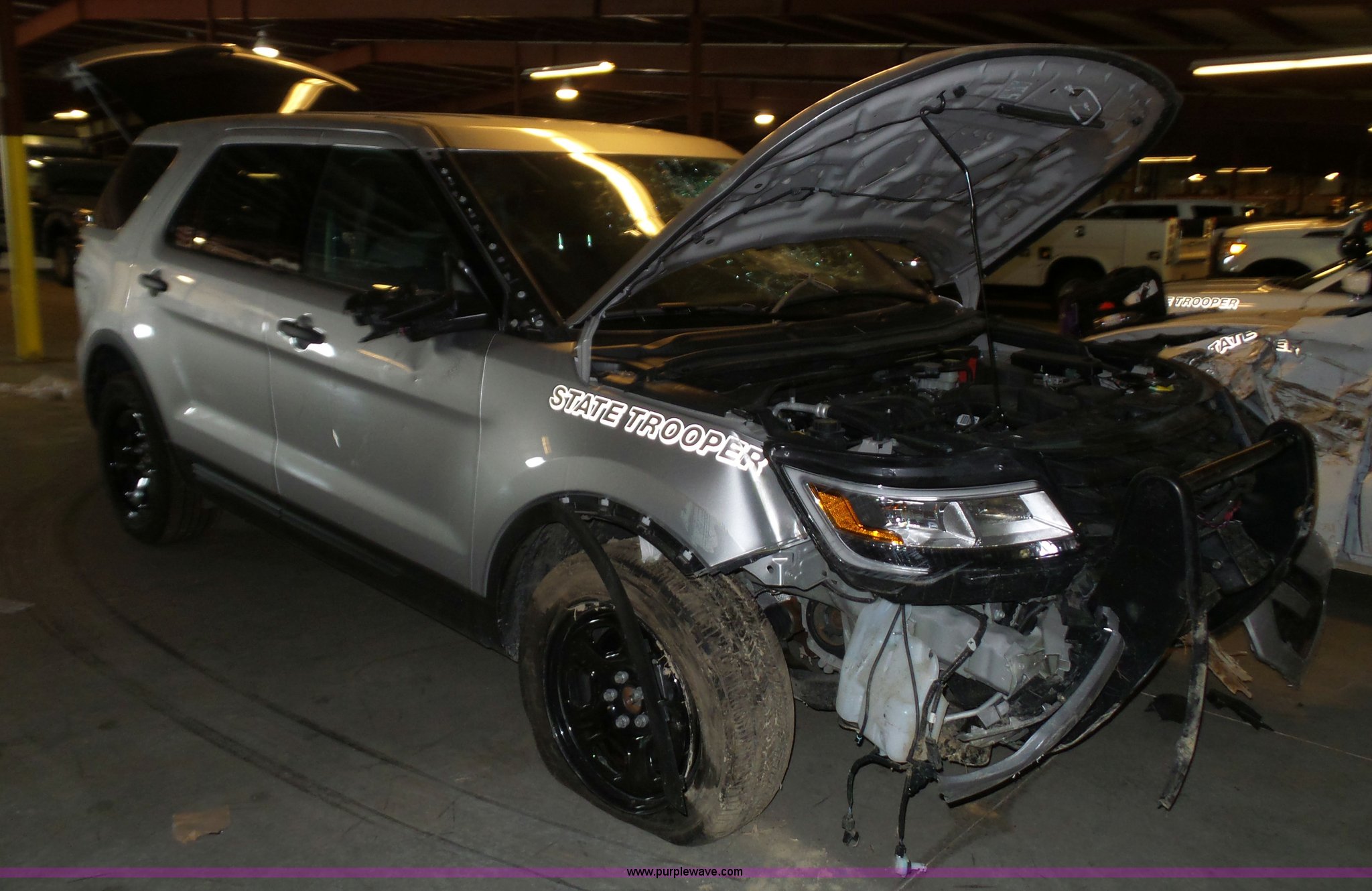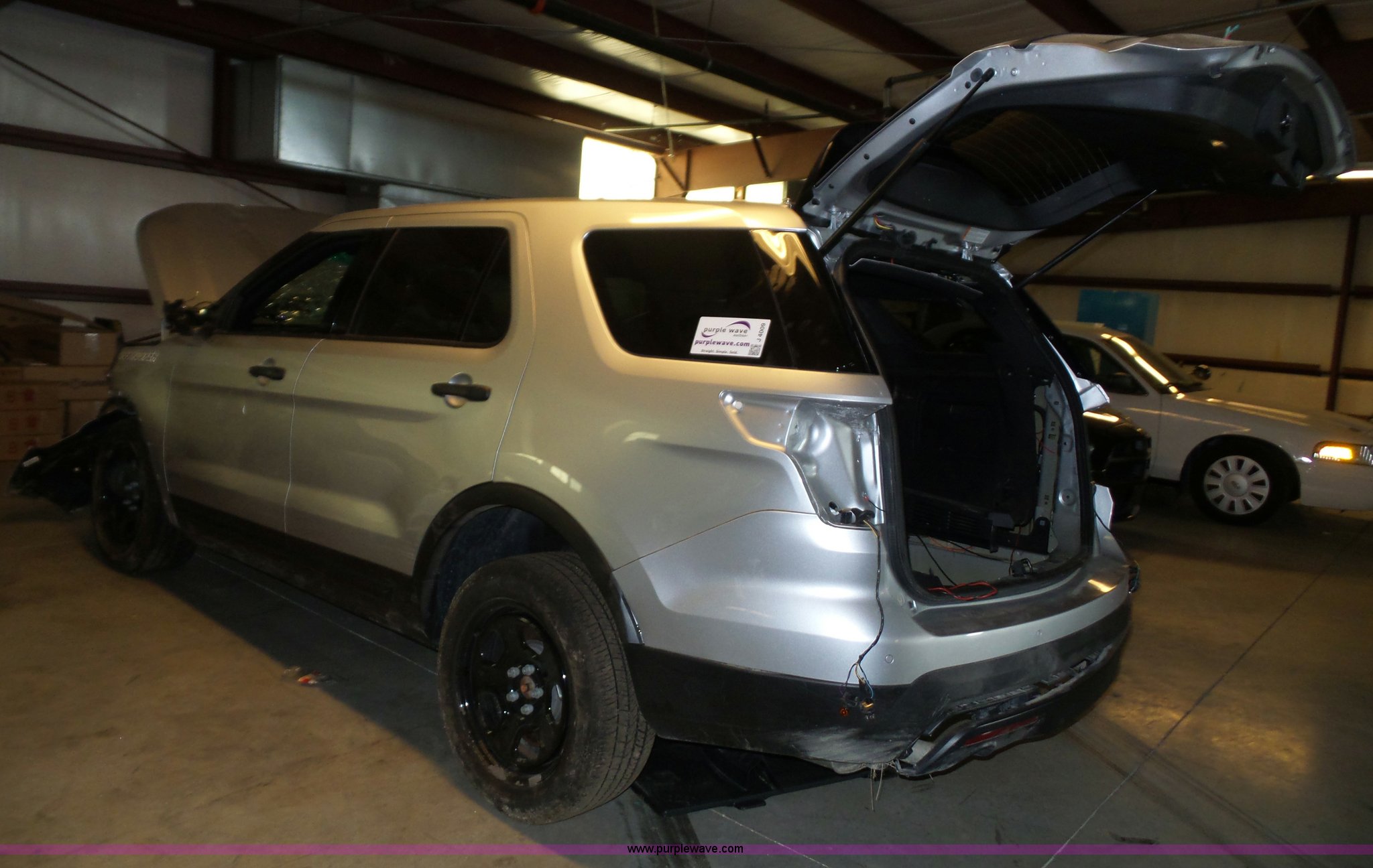Purple Wave is selling a used Passenger Vehicle in Kansas. This item is a 2016 Ford Explorer Police SUV with the following: Unknown miles on odometer, Approx. 5,089 miles, 3.7L V6 DOHC 24V gas engine, Automatic transmission, Four wheel drive, AC and heat, Tilt, Cruise, AM/FM/CD, Power windows, locks, mirrors, and seat, Cloth interior, 245/55R18 tires, Some tires flat, Broken windshield, Wrecked, Unit must be towed, Unit# 16-575