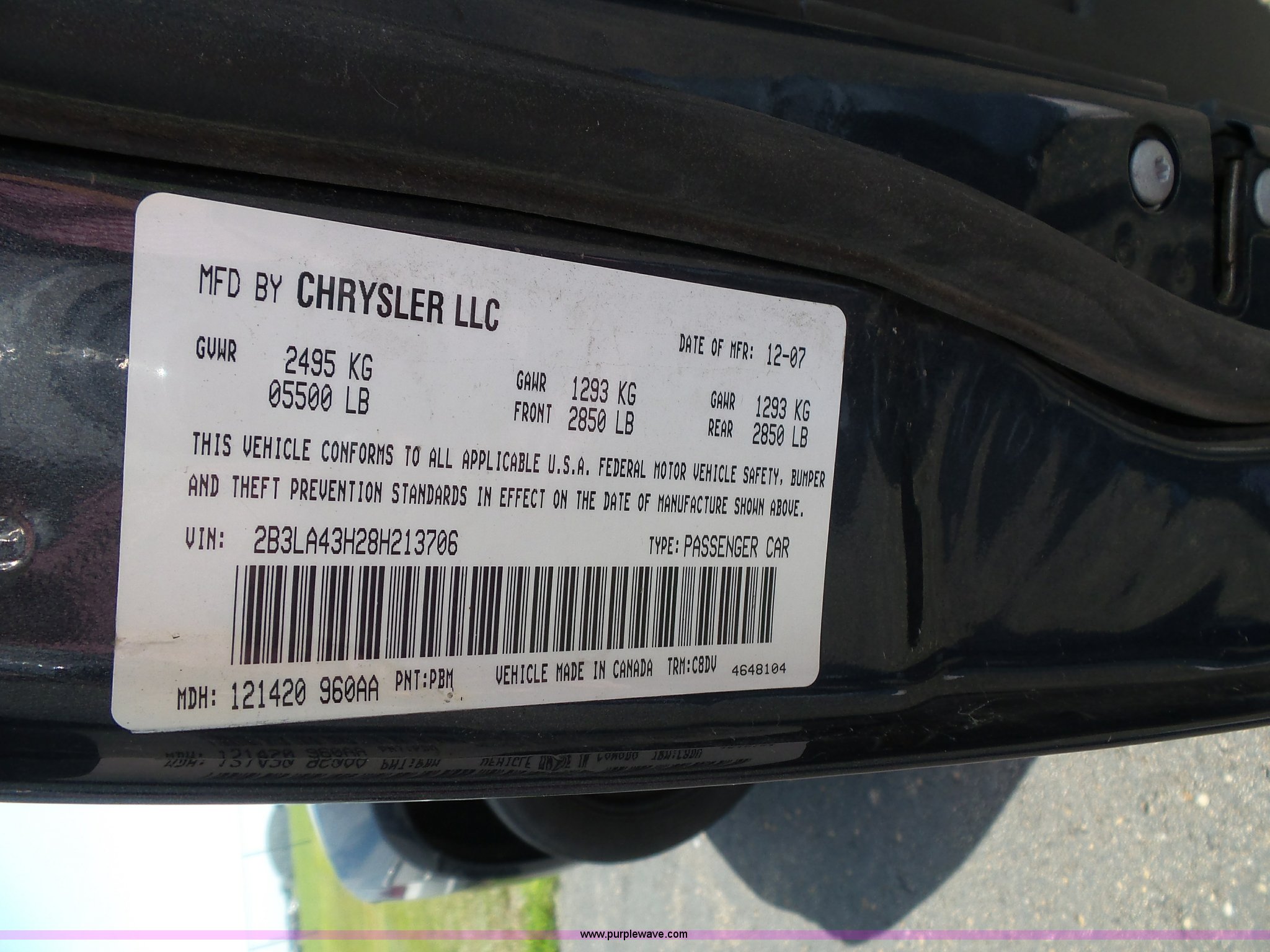 2008 Dodge Charger. 50,518 miles on odometer, 5.7L V8 OHV 16V gas engine, Automatic transmission, AC and heat, Tilt, Cruise, AM/FM/CD, Power windows, locks, mirrors, and seat, Cloth interior, Spotlight, 225/60R18 tires, Unit# 08-567. Kansas title. 2B3LA43H28H213706. Topeka, KS 66616