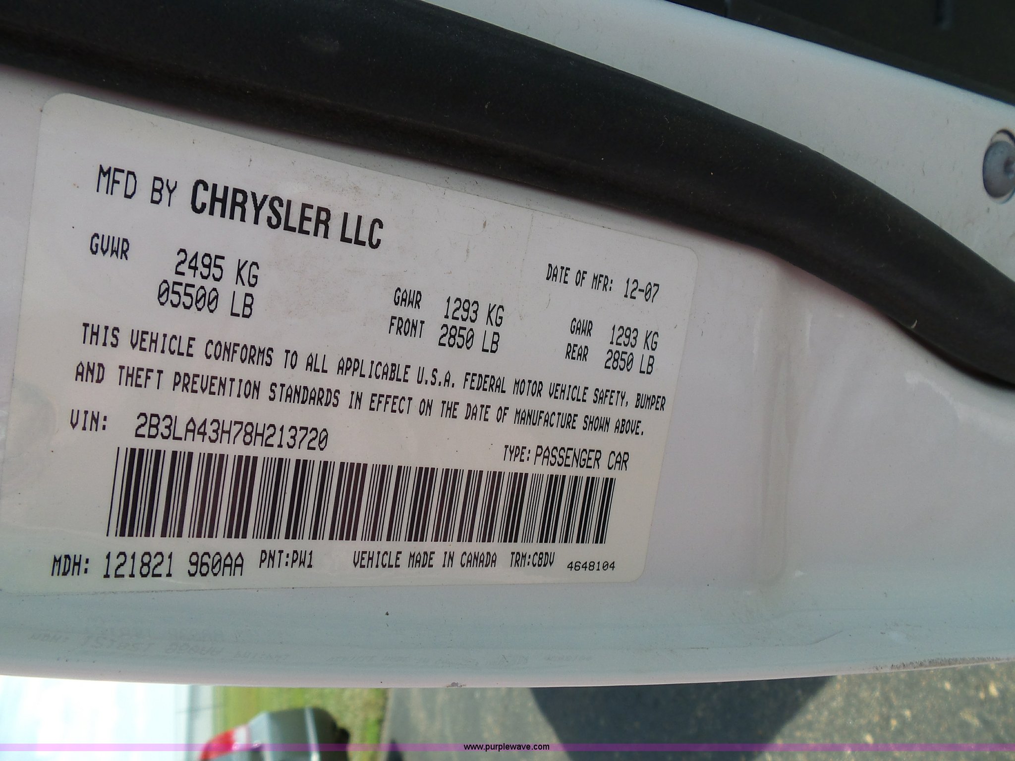 Purple Wave is selling a used Passenger Vehicle in Kansas. This item is a 2008 Dodge Charger with the following: 51,945 miles on odometer, 5.7L V8 OHV 16V gas engine, Automatic transmission, AC and heat, Tilt, Cruise, AM/FM/CD, Power windows, locks, mirrors, and seat, Cloth interior, Spotlight, 225/60R18 tires, Unit# 08-431