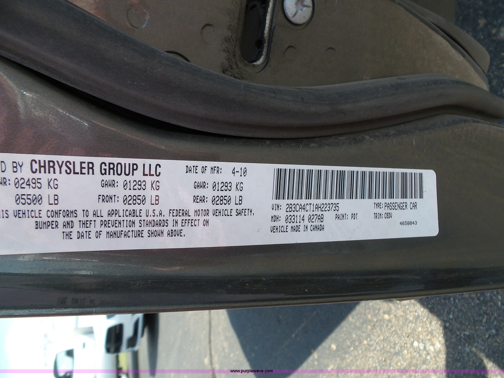 Purple Wave is selling a used Passenger Vehicle in Kansas. This item is a 2010 Dodge Charger with the following: 53,314 miles on odometer, 5.7L V8 OHV 16V gas engine, Automatic transmission, AC and heat, Tilt, Cruise, AM/FM/CD, Power windows, locks, mirrors, and seat, Cloth interior, Spotlight, 225/60R18 tires, Hail damage, Unit# 10-449
