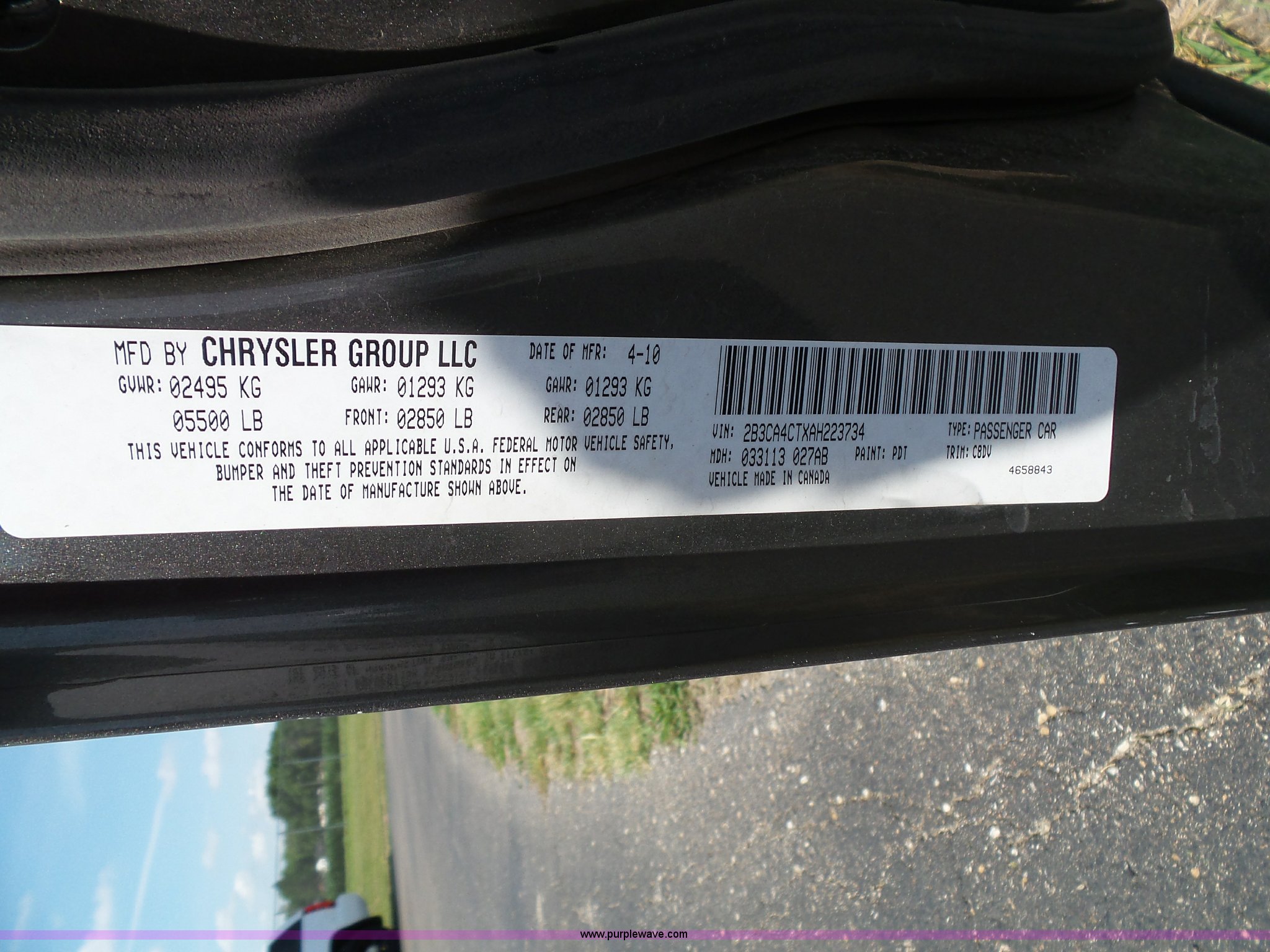 Purple Wave is selling a used Passenger Vehicle in Kansas. This item is a 2010 Dodge Charger with the following: 65,040 miles on odometer, 5.7L V8 OHV 16V gas engine, Automatic transmission, AC and heat, Tilt, Cruise, AM/FM/CD, Power windows, locks, mirrors, and seat, Cloth interior, Spotlight, 225/60R18 tires, Decals and equipment will be removed prior to auction, Hail damage, Unit# 10-527