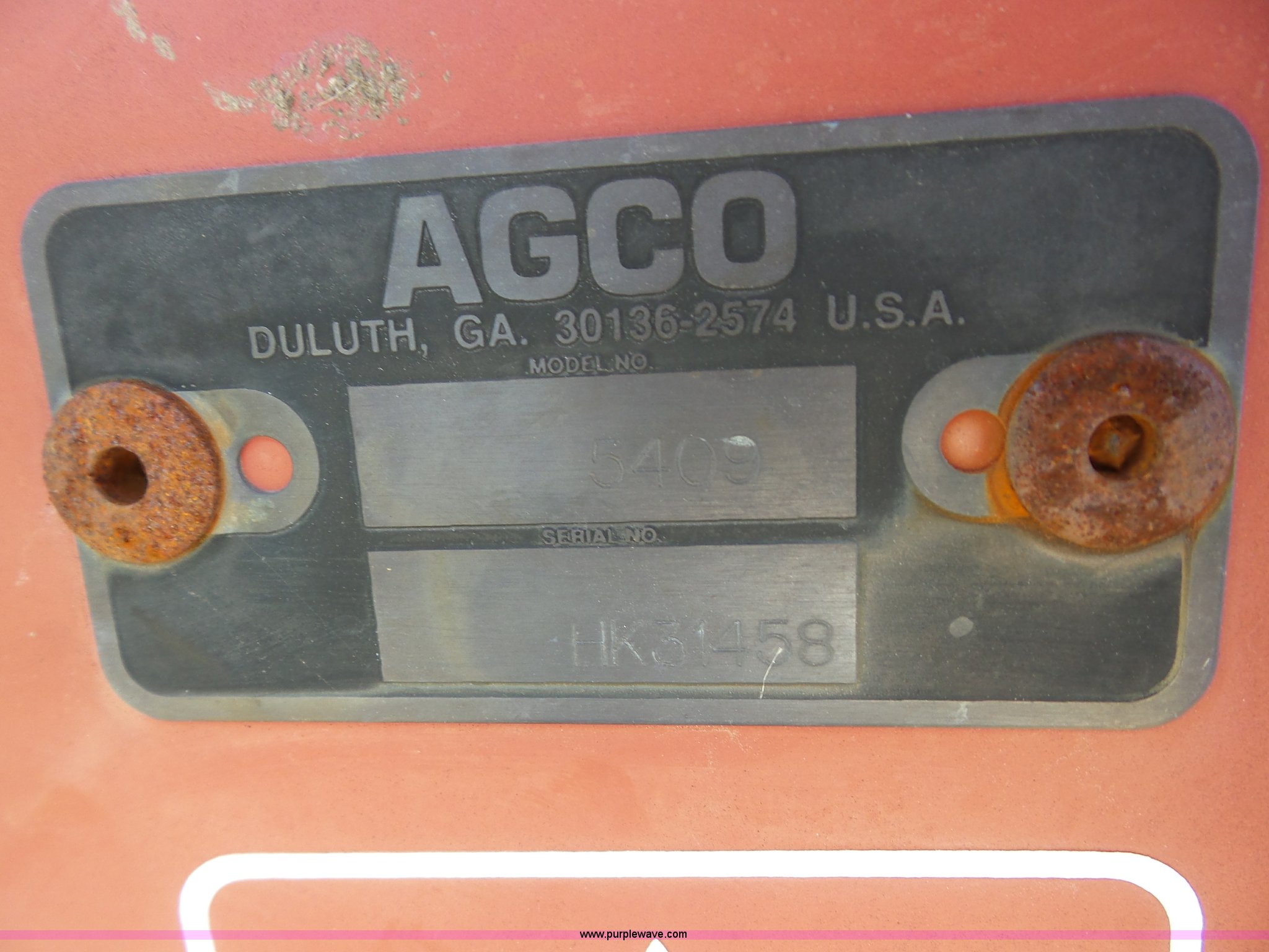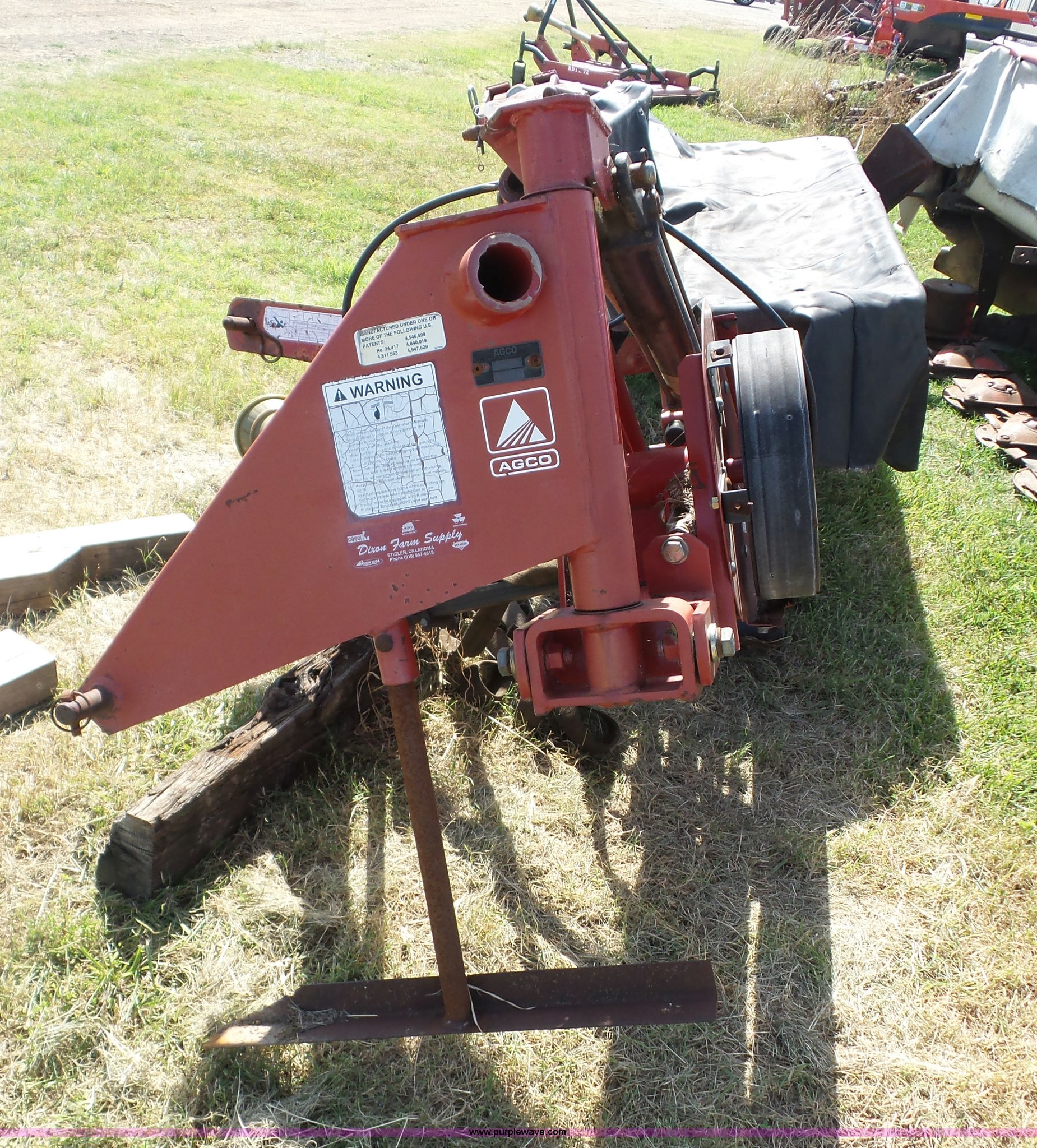 Purple Wave is selling a used Disc or Sickle Mower in Oklahoma. This item is a AGCO 5409 disc mower with the following: 9'2"W, Hydraulic fold, 540 PTO, Three point, Serial HK31458