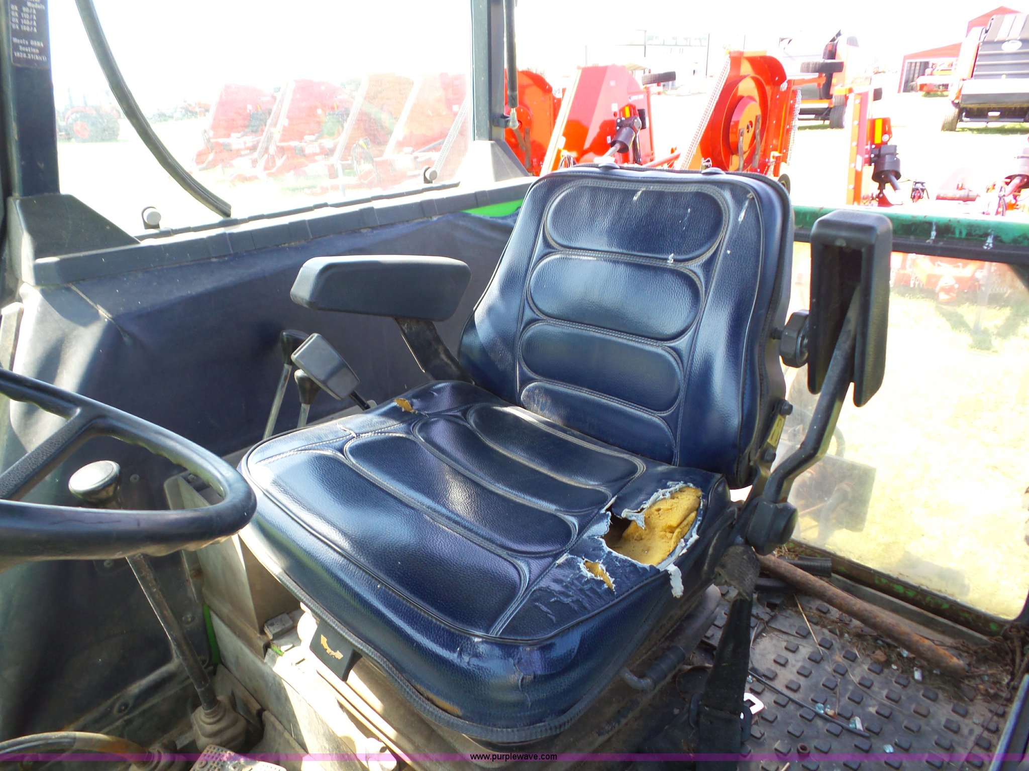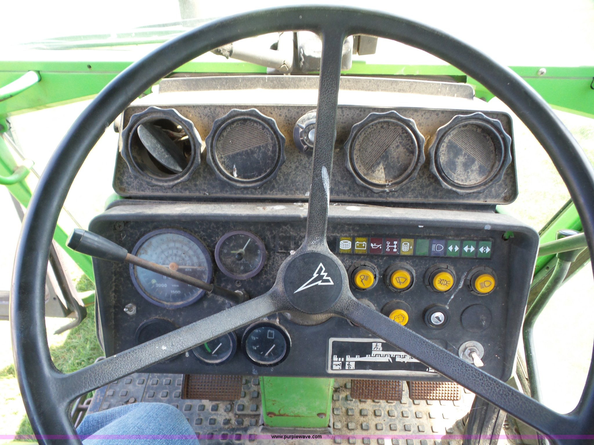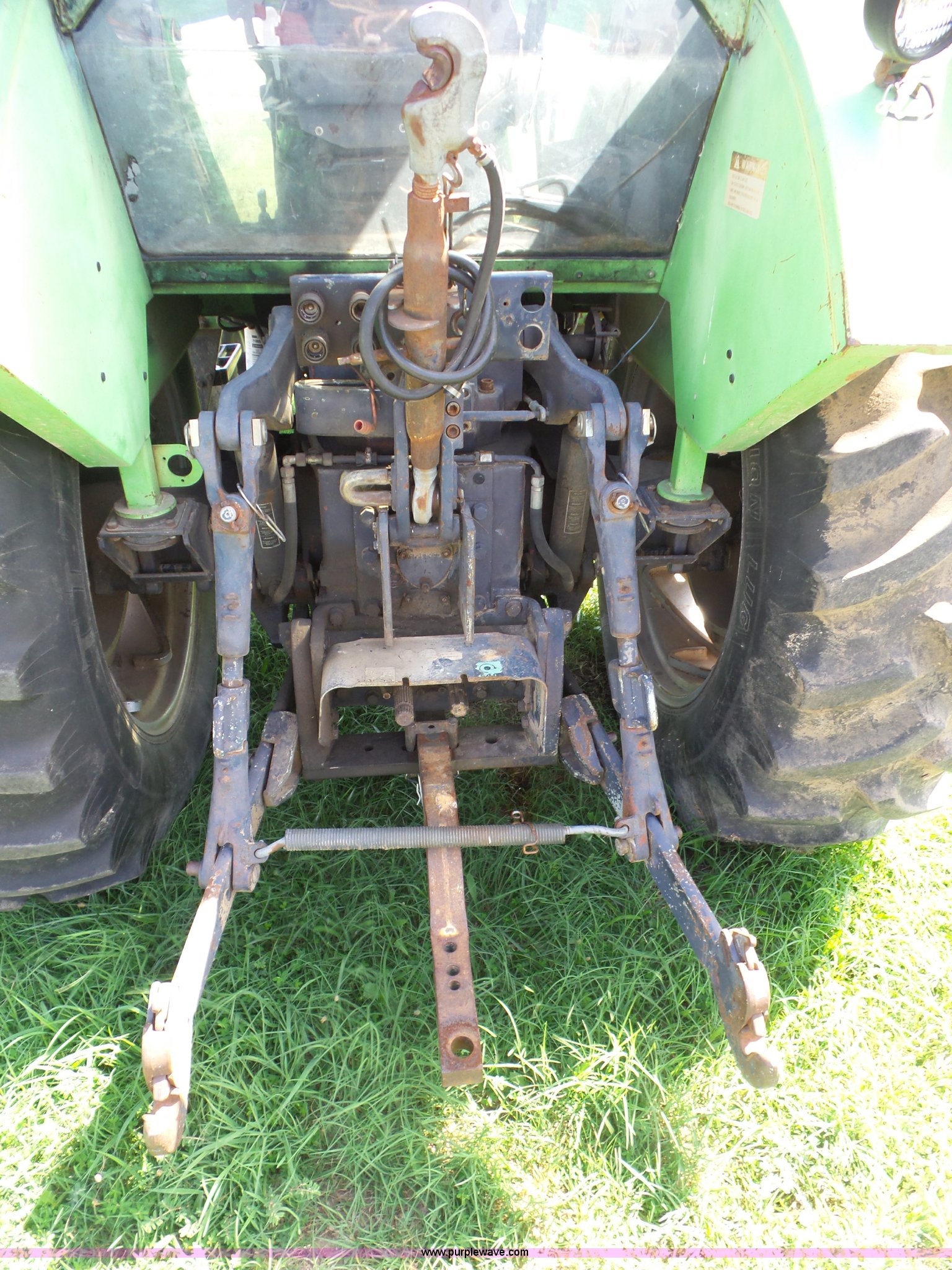 Purple Wave is selling a used Tractor in Oklahoma. This item is a 1979 Deutz Fahr DX90 tractor with the following: 8,037 hours on meter, Deutz 4.7L five cylinder diesel engine, Manual transmission, 15F-5R gears, Differential lock, AC and heat, Non-operational AC, AM/FM, Suspension seat, Three point, Top link, Quick attach, 540/1000 PTO, (2) rear hydraulic remote sets, 10.00-16 front tires, 16.9-34 rear tires, Serial 76181192