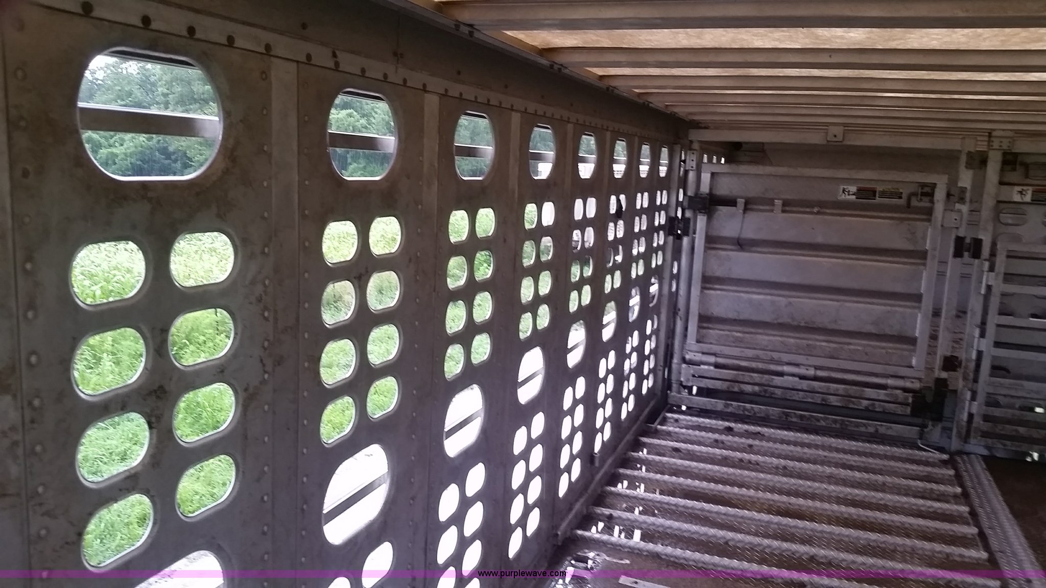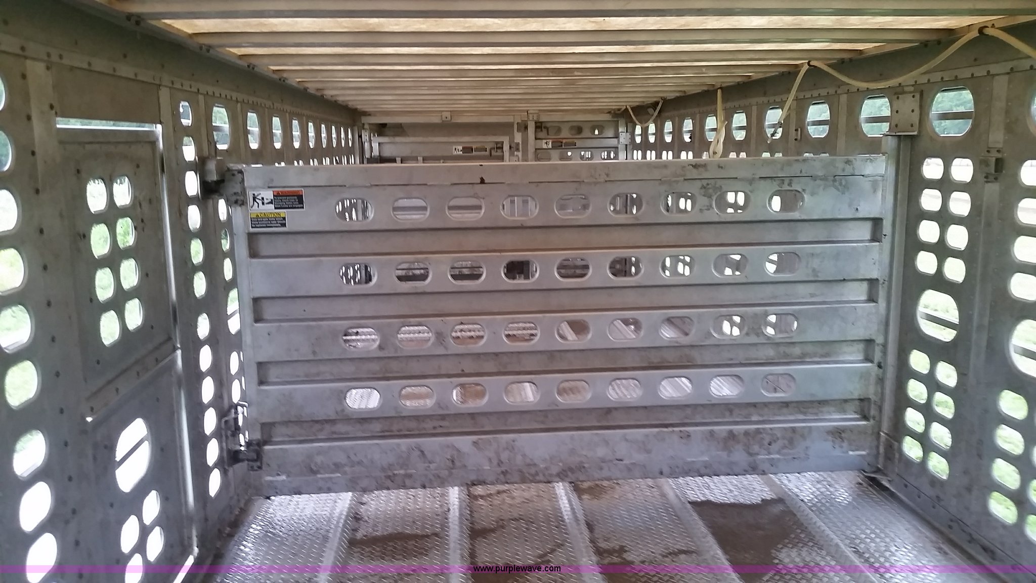 Purple Wave is selling a used Livestock Trailer in Missouri. This item is a 2008 Wilson PSDCL-408P livestock trailer with the following: 53'L, Three deck, Optional third hog deck rail, Center divider gate, Side door, Spray system, Aluminum construction, Fifth wheel plate, Air suspension, Air brakes, Tandem axle, 285/75R24.5 tires, GVWR 65,000 lbs, GAWR 19,040 lbs