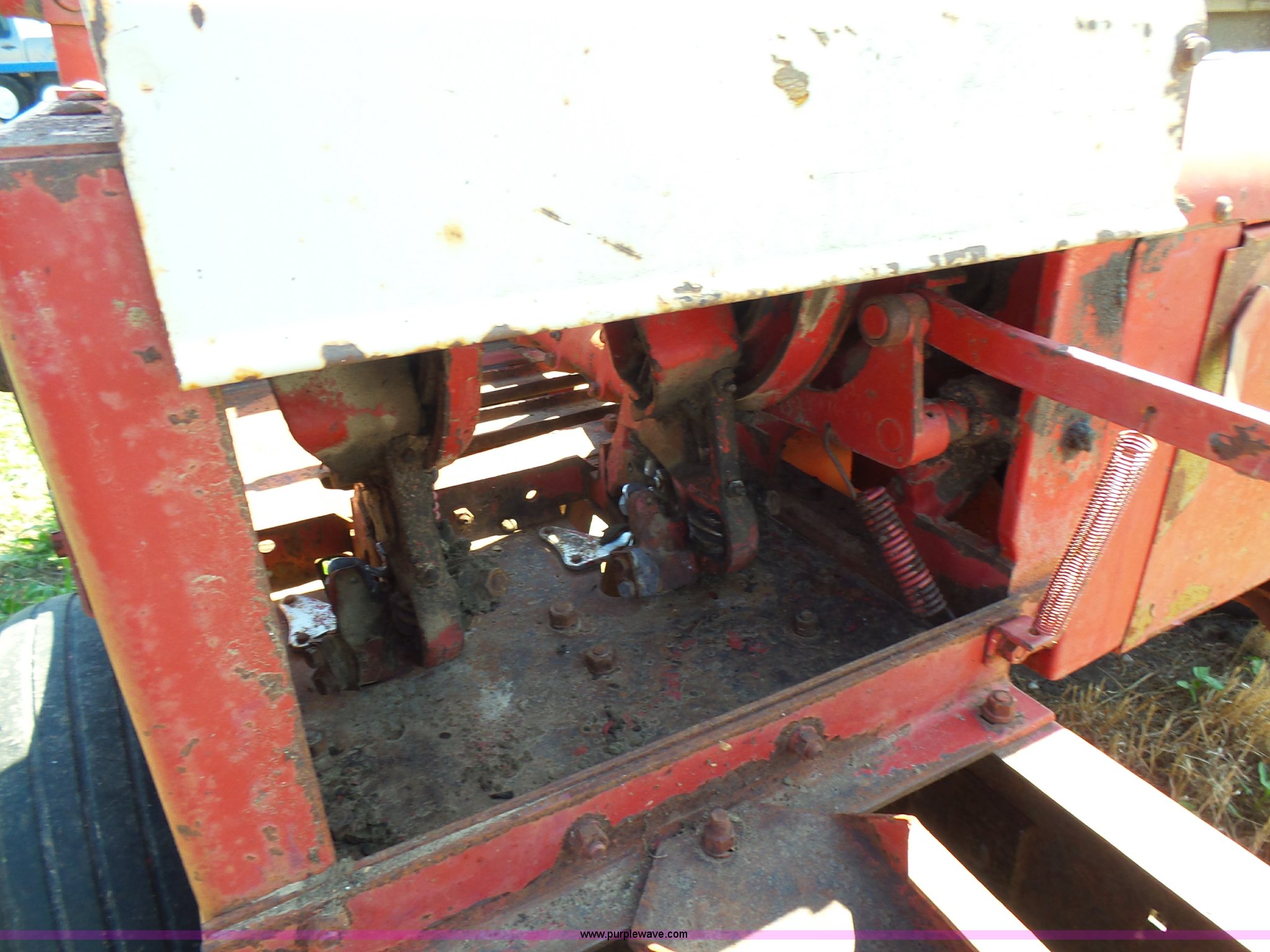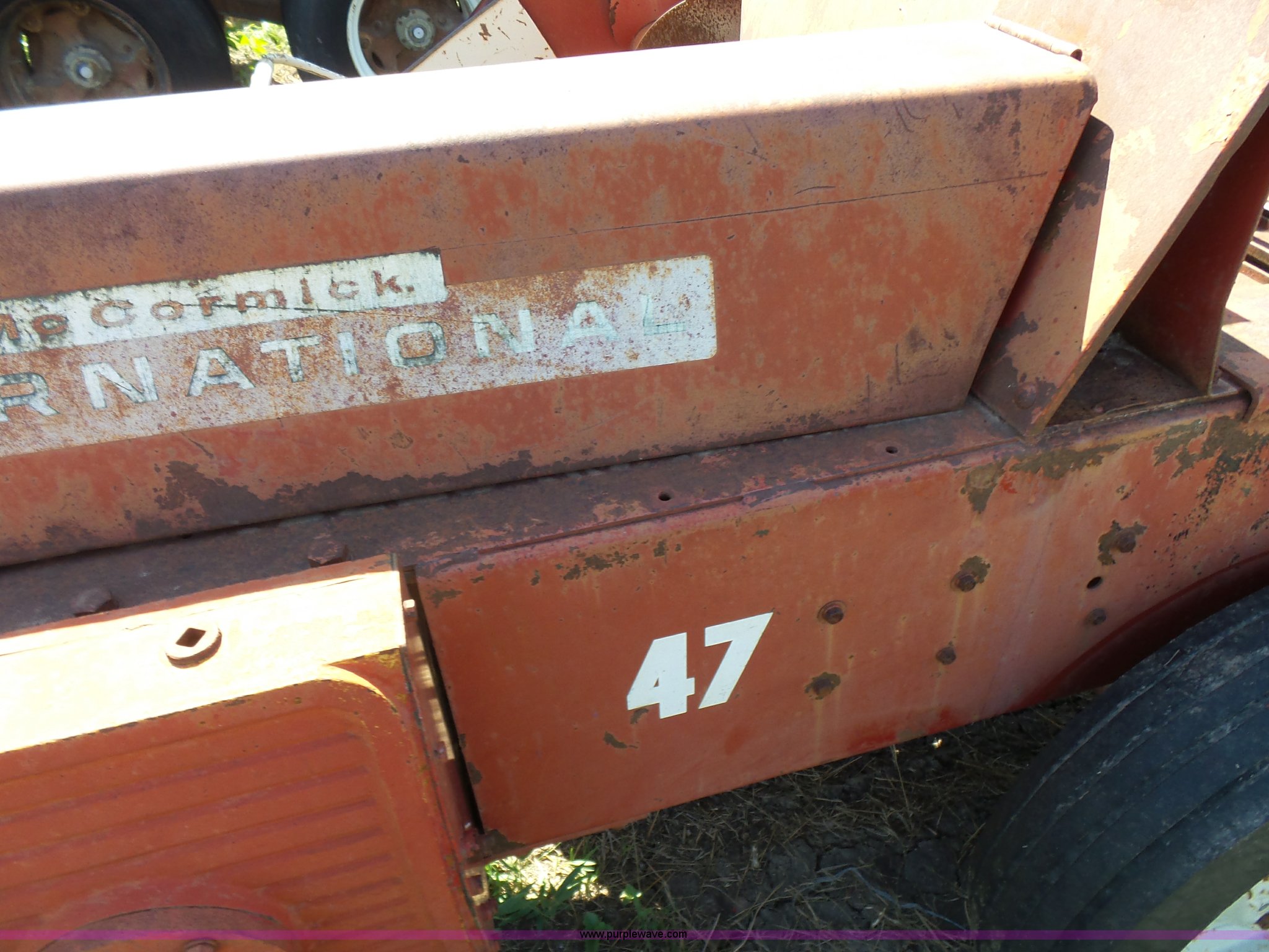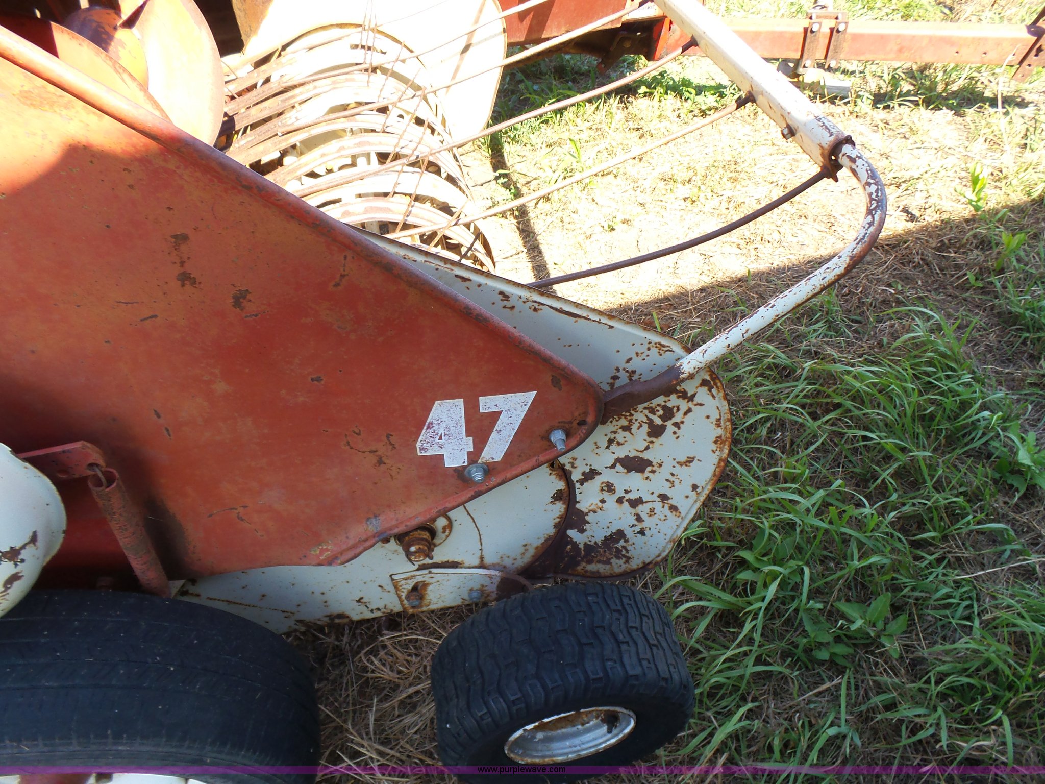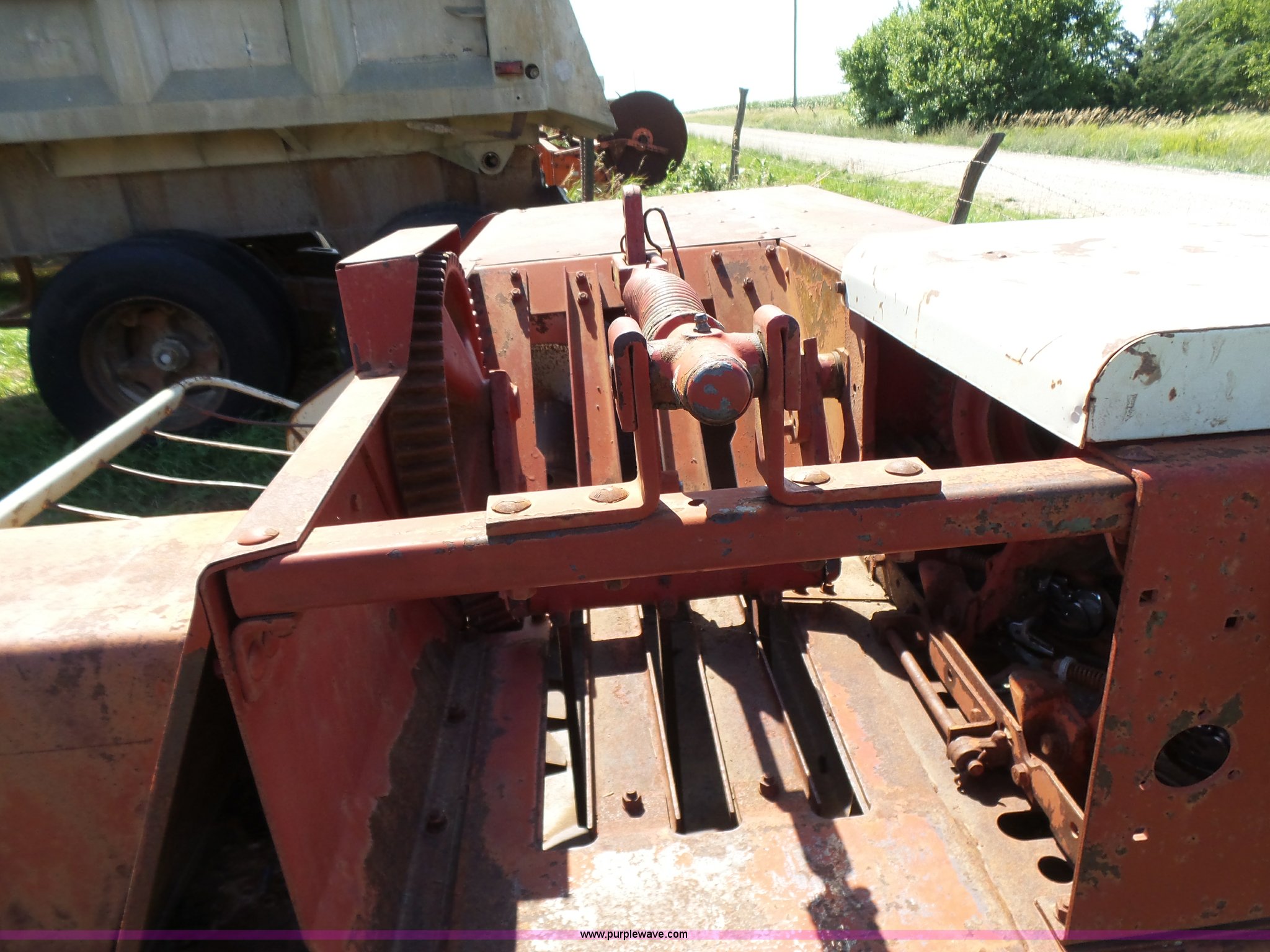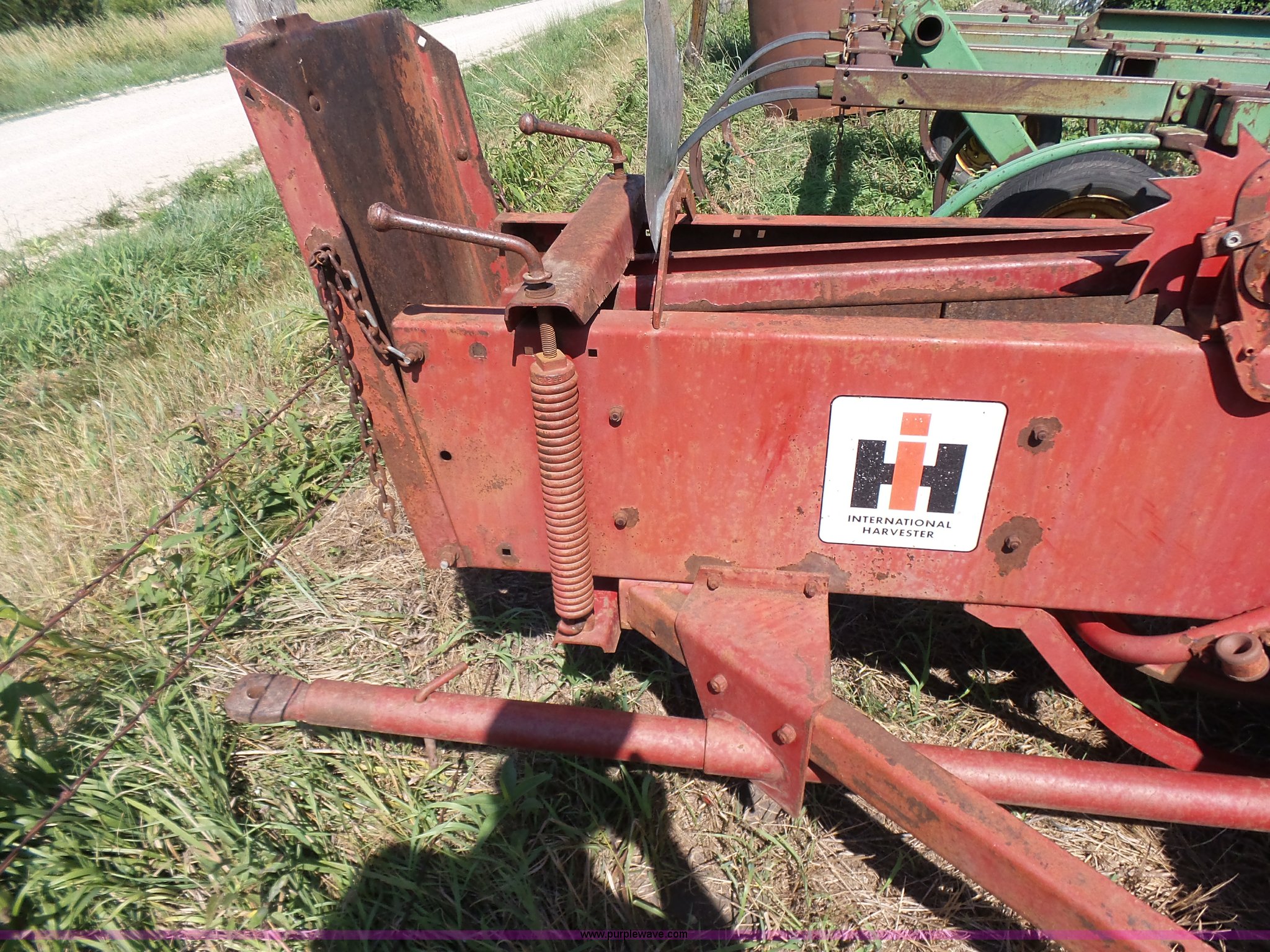 Purple Wave is selling a used Square Baler in Kansas. This item is a International 47 small square baler with the following: 50"W pickup, Twine tie, 540 PTO, Pin hitch, Rear pin hitch, 15" tires, Serial 12234