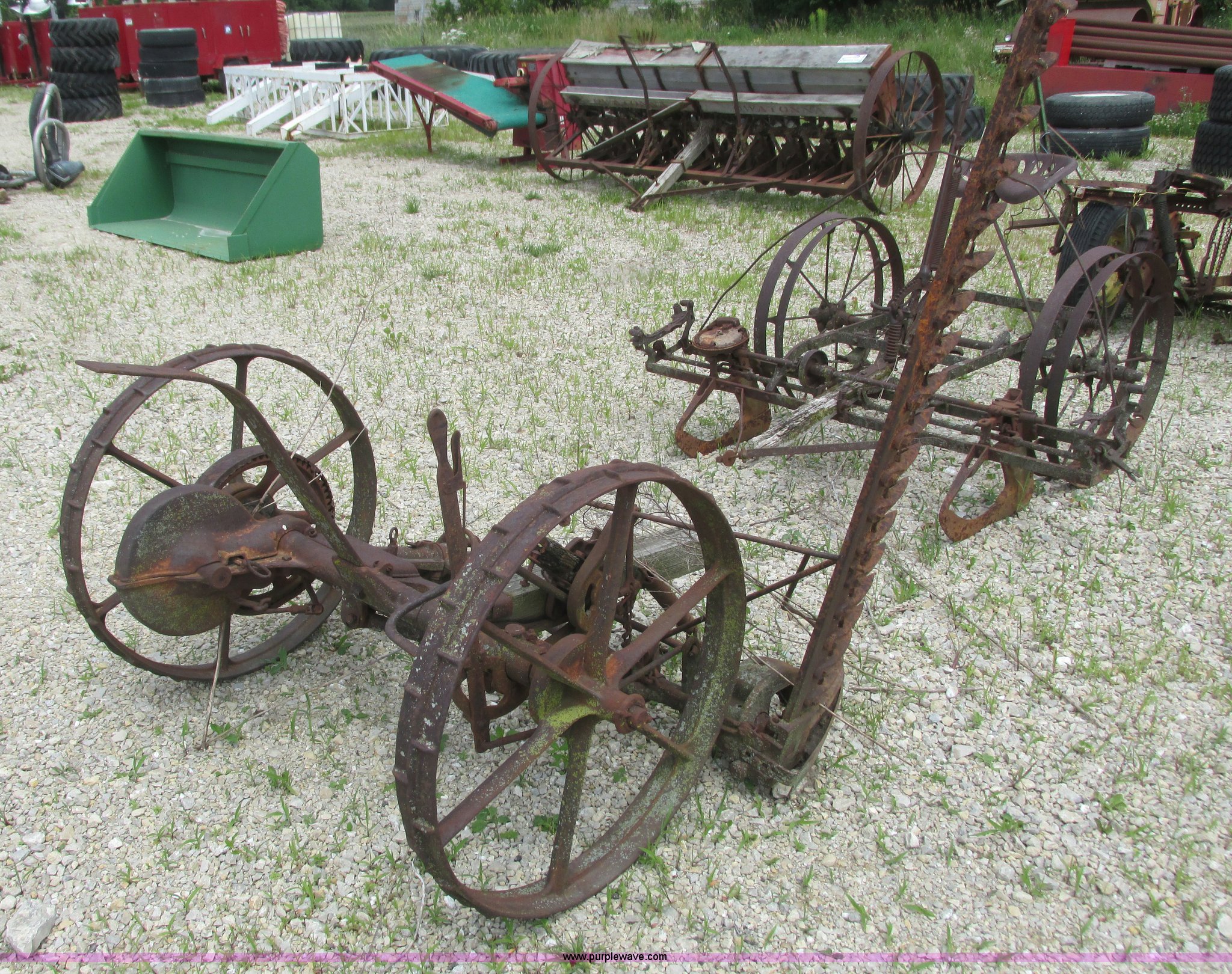 Farm equipment. (2) seeder, Sickle mower. Ray's Machinery & Auto. 54599 Hwy 42. Plainview, MN 55964