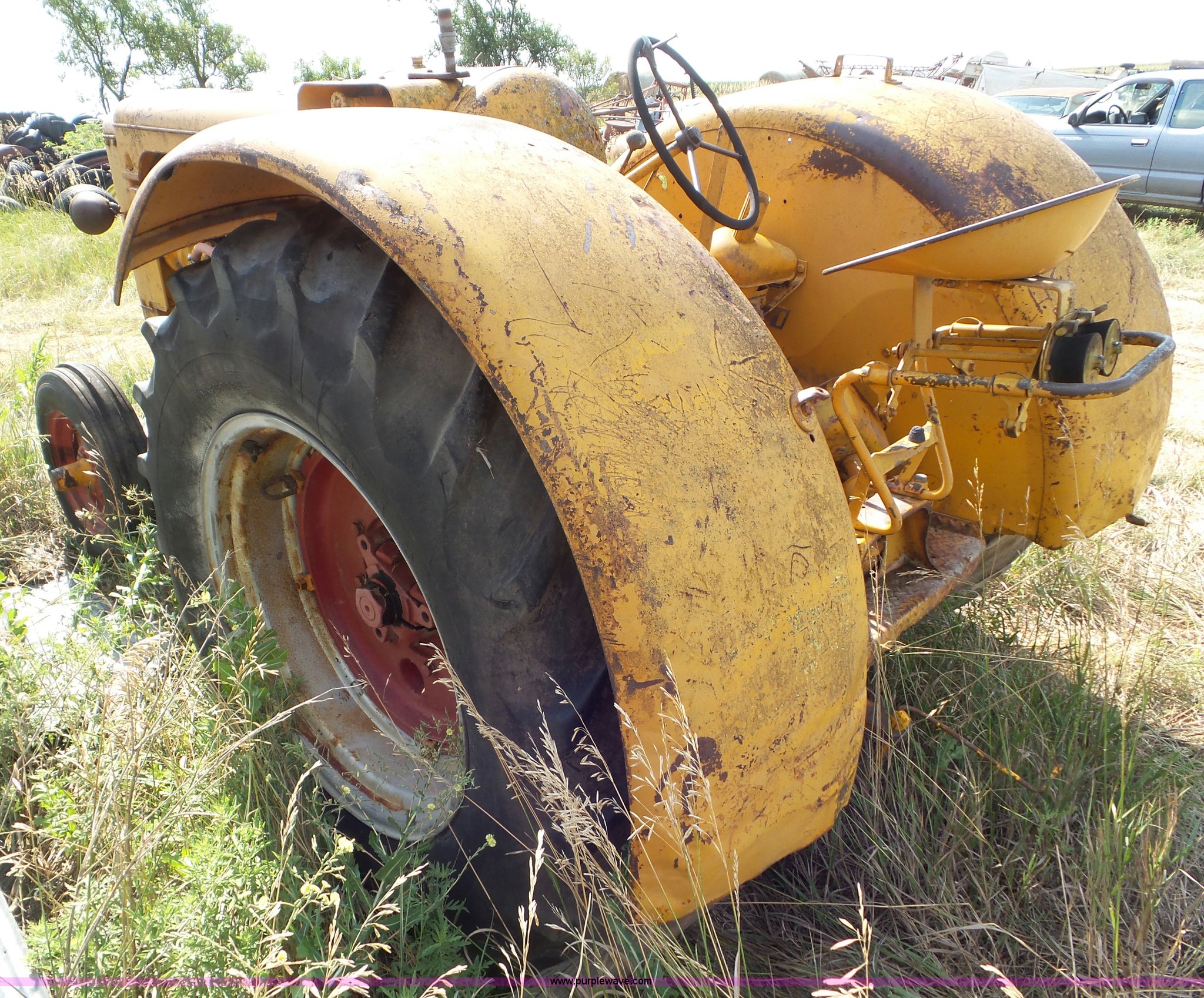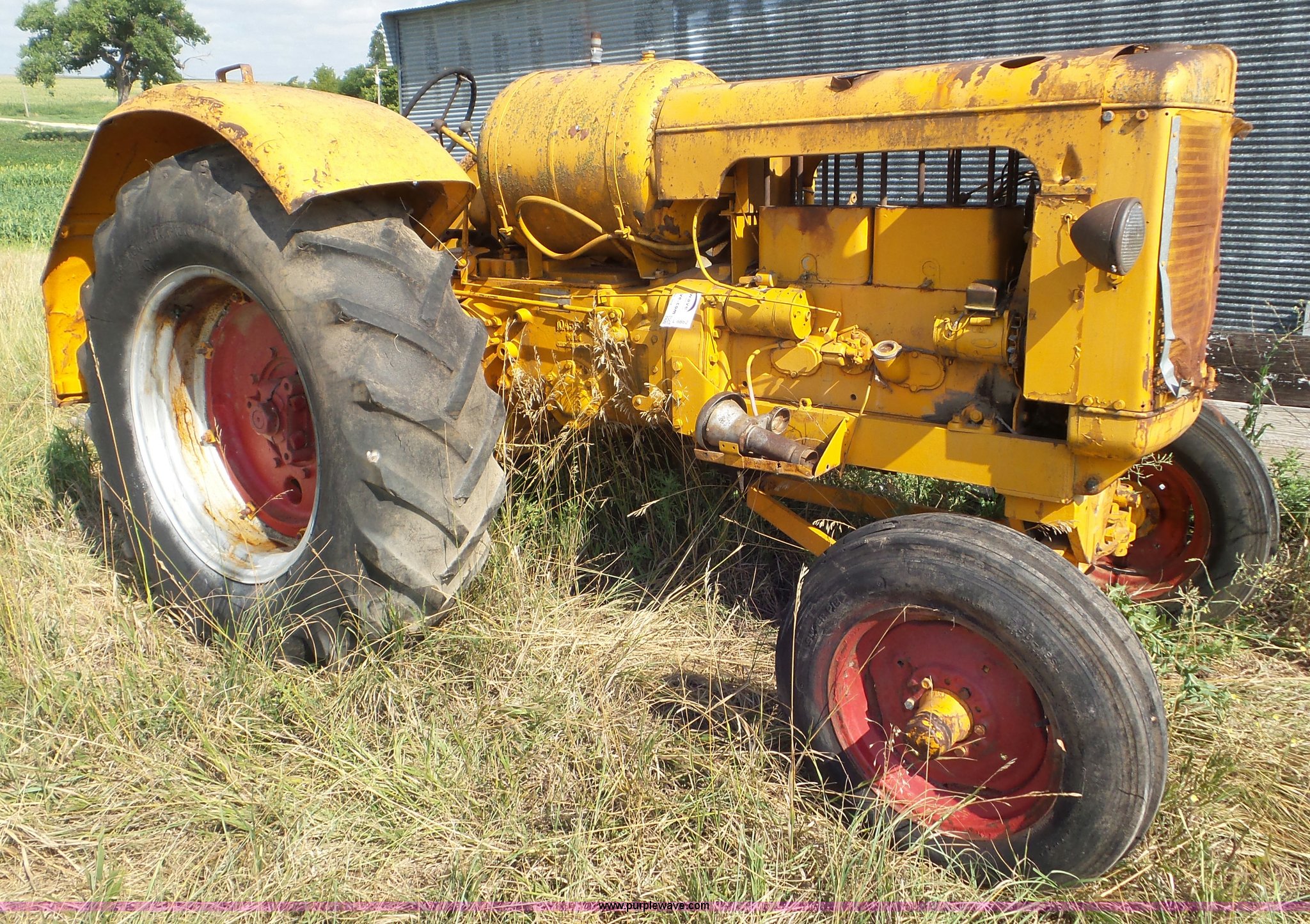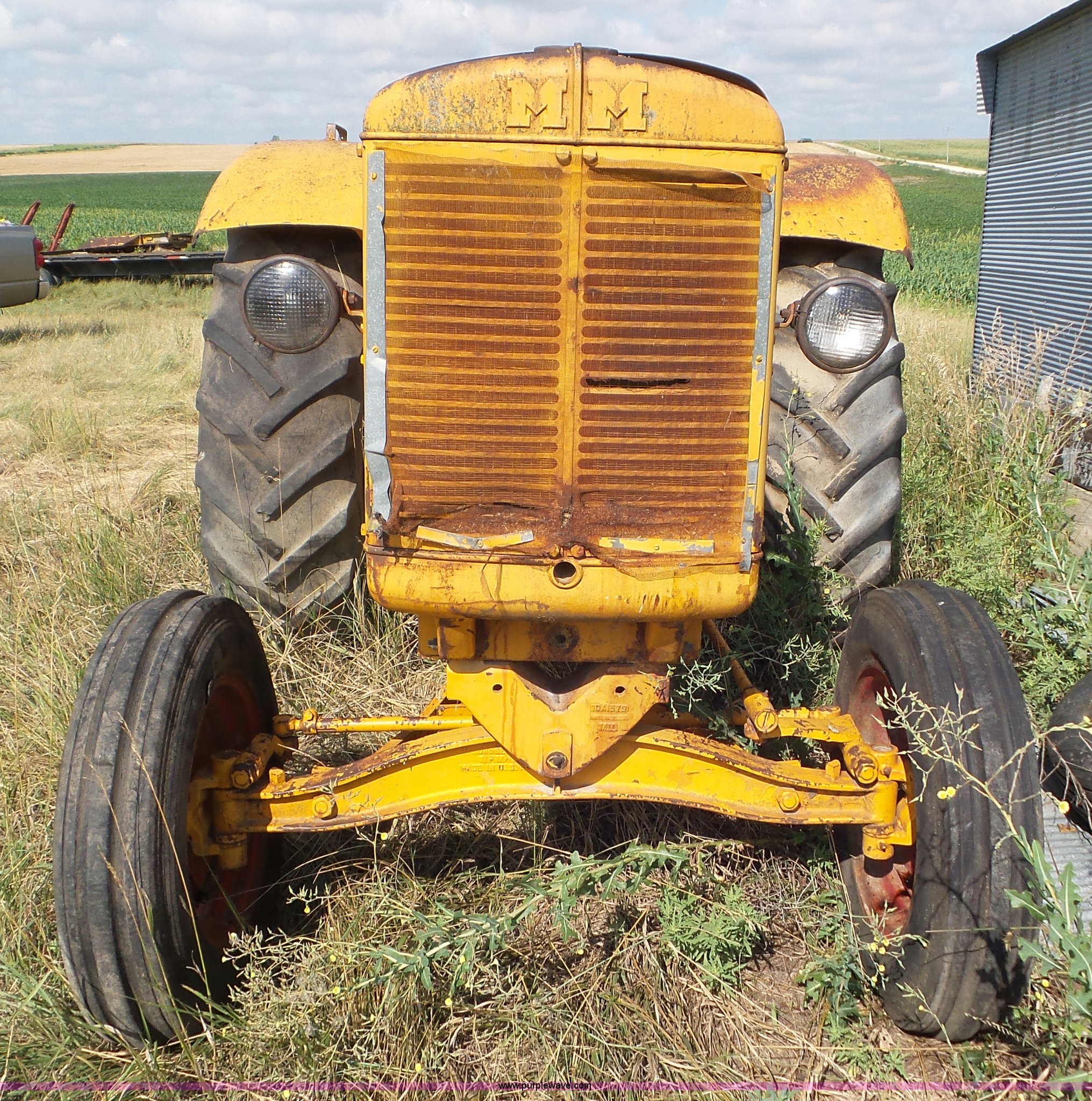 Purple Wave is selling a used Tractor in Kansas. This item is a 1956 Minneapolis Moline GB tractor with the following: Minneapolis Moline 6.6L four cylinder propane engine, Manual transmission, 5F-1R gears, Hand clutch, Suspension seat, 540 PTO, 7.50-18 front tires, 18.4-34 rear tires, Non-operational unit, Serial 08900977