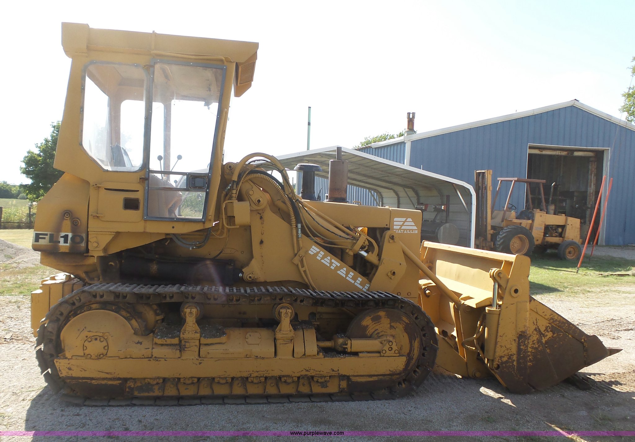 Purple Wave is selling a used Crawler Loader in Kansas. This item is a Fiat-Allis FL10 track loader with the following: 1,064 hours on meter, Six cylinder diesel engine, Powershift transmission, 3F-3R gears, Enclosed cab, Joystick bucket controls, 81"W multi-purpose bucket, Weld-on cutting edge, (8) teeth, (4) counterweights, 15"W single grouser track pads, Exhaust leak, Left track tensioner broken, Serial 830565560