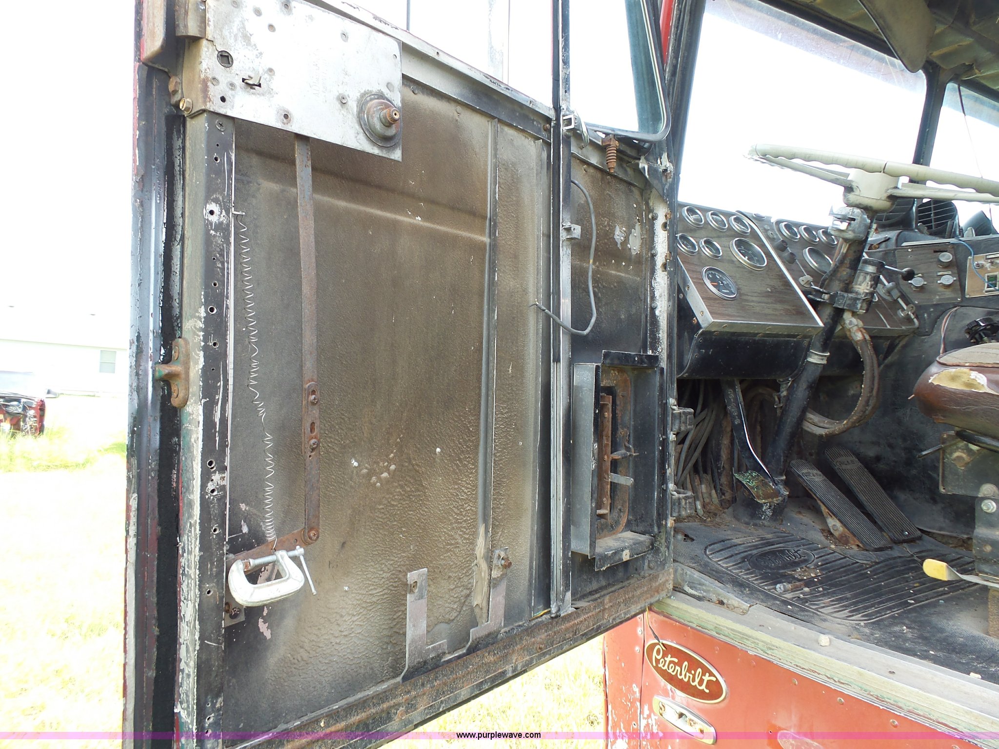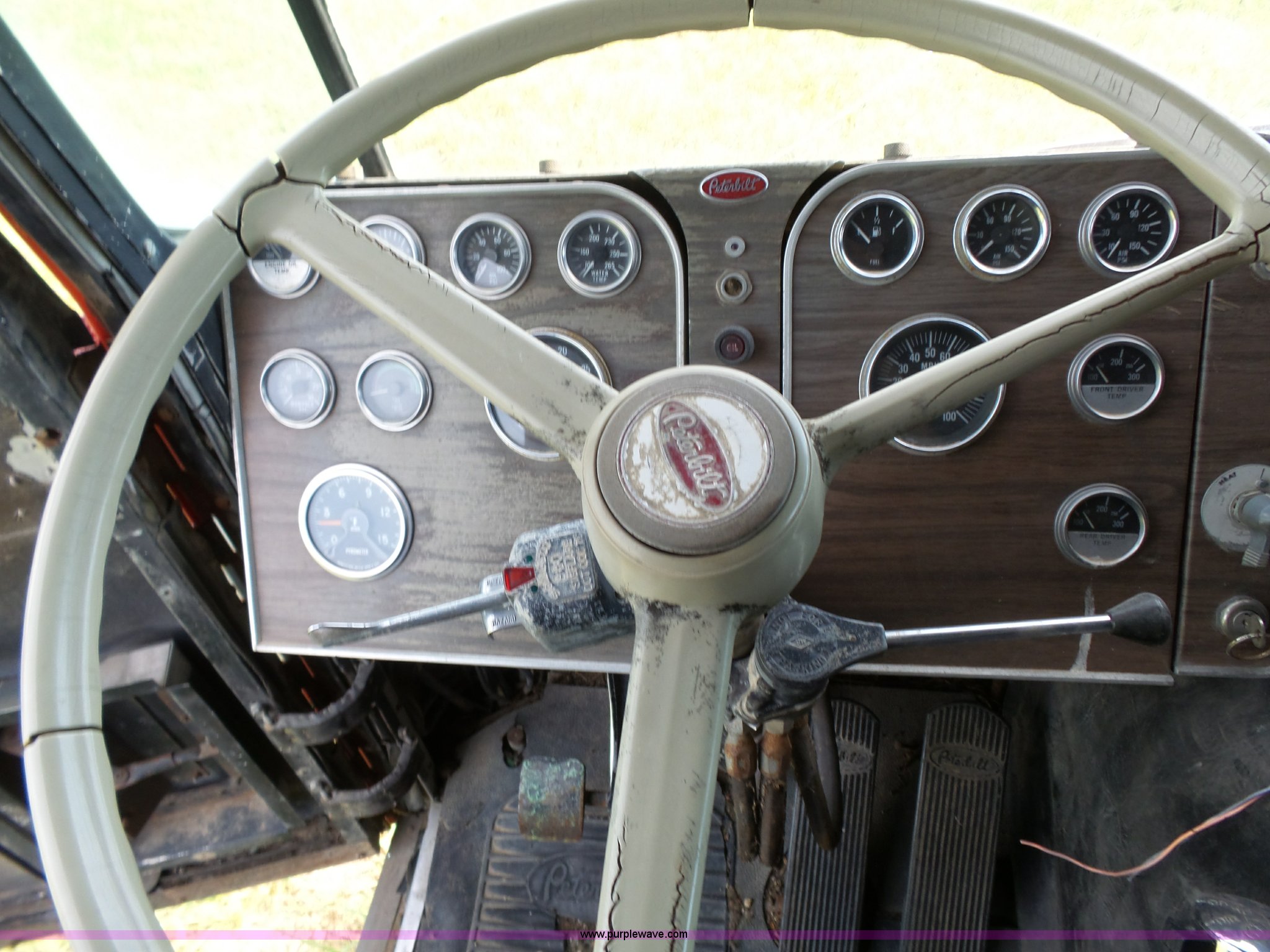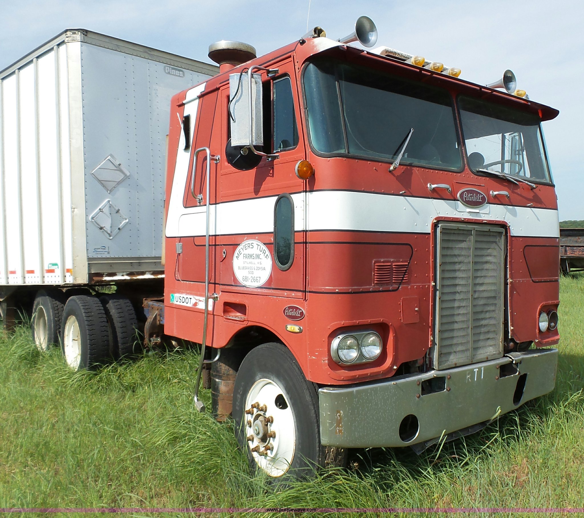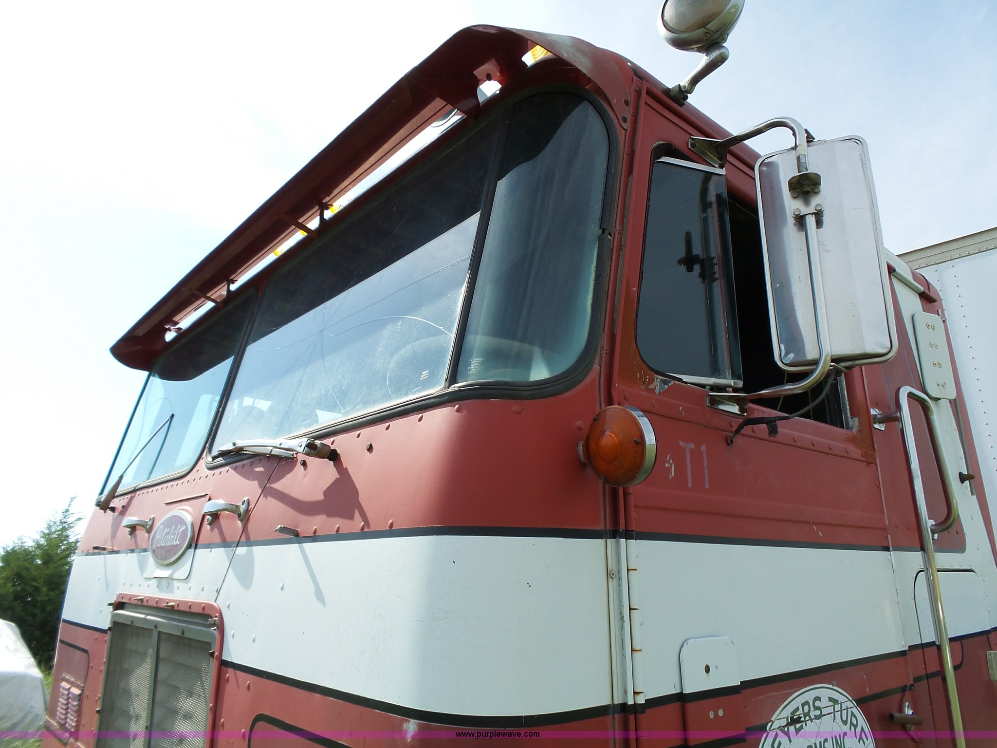 Purple Wave is selling a used Truck Tractor in Kansas. This item is a 1978 Peterbilt 352M semi truck with the following: 780,255 miles on odometer, Caterpillar 3406 diesel engine, 350 HP, Eaton Fuller Range Rover 13 speed manual transmission, Tandem axle, Full screw, AC and heat, Air suspension seat, Single exhaust stack, 184" wheelbase, Air suspension, Air brakes, 11R22.5 tires, Interior/exterior cosmetic damage, Non-operational AC