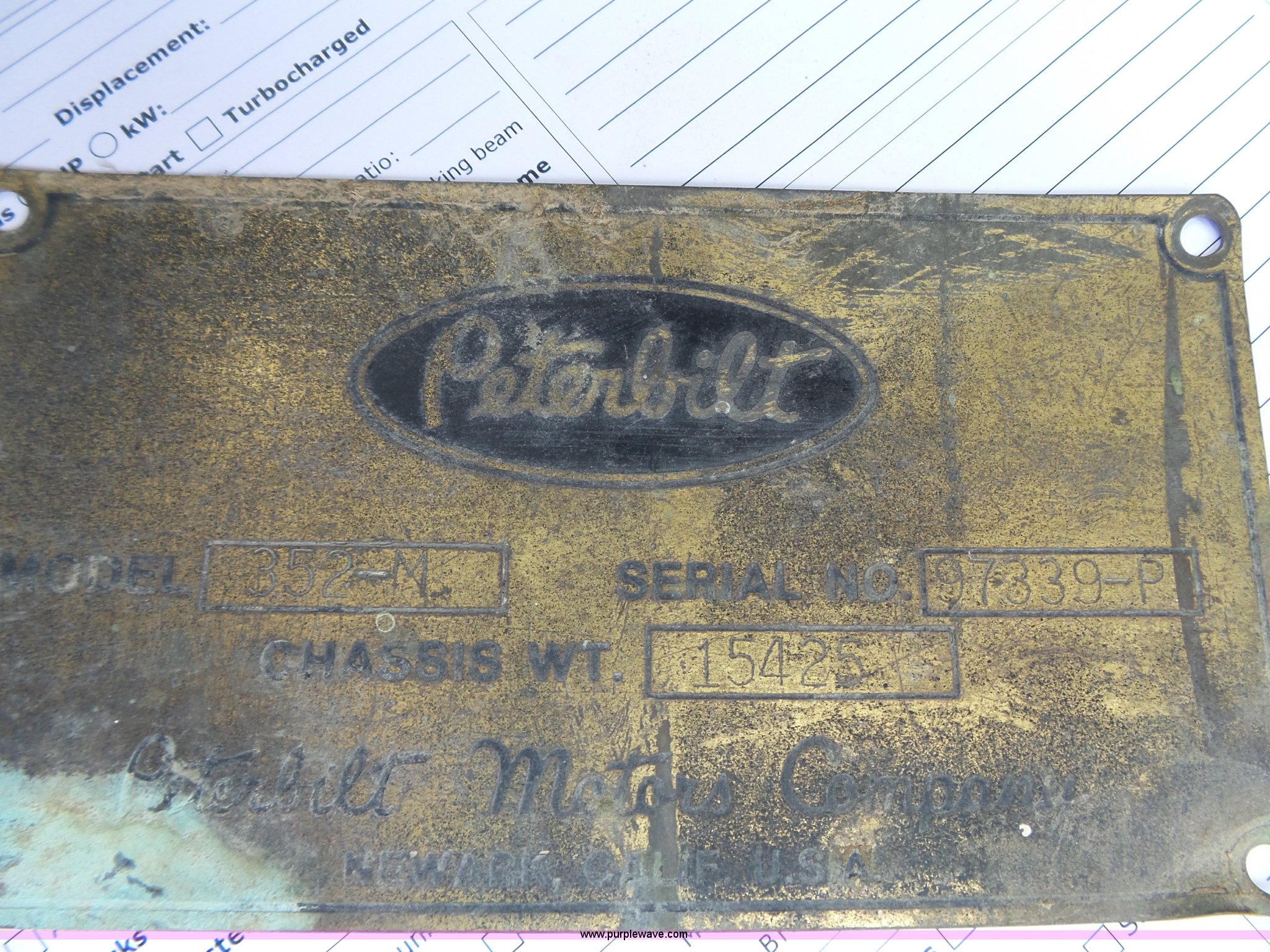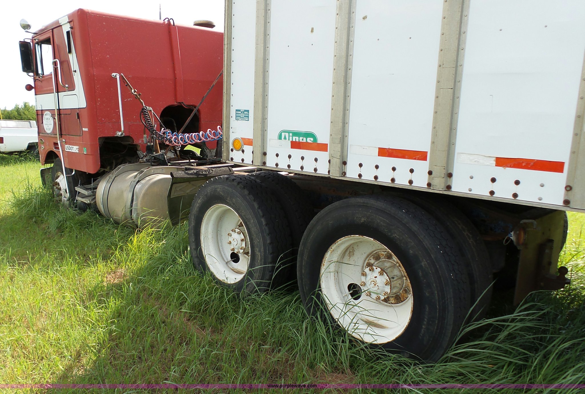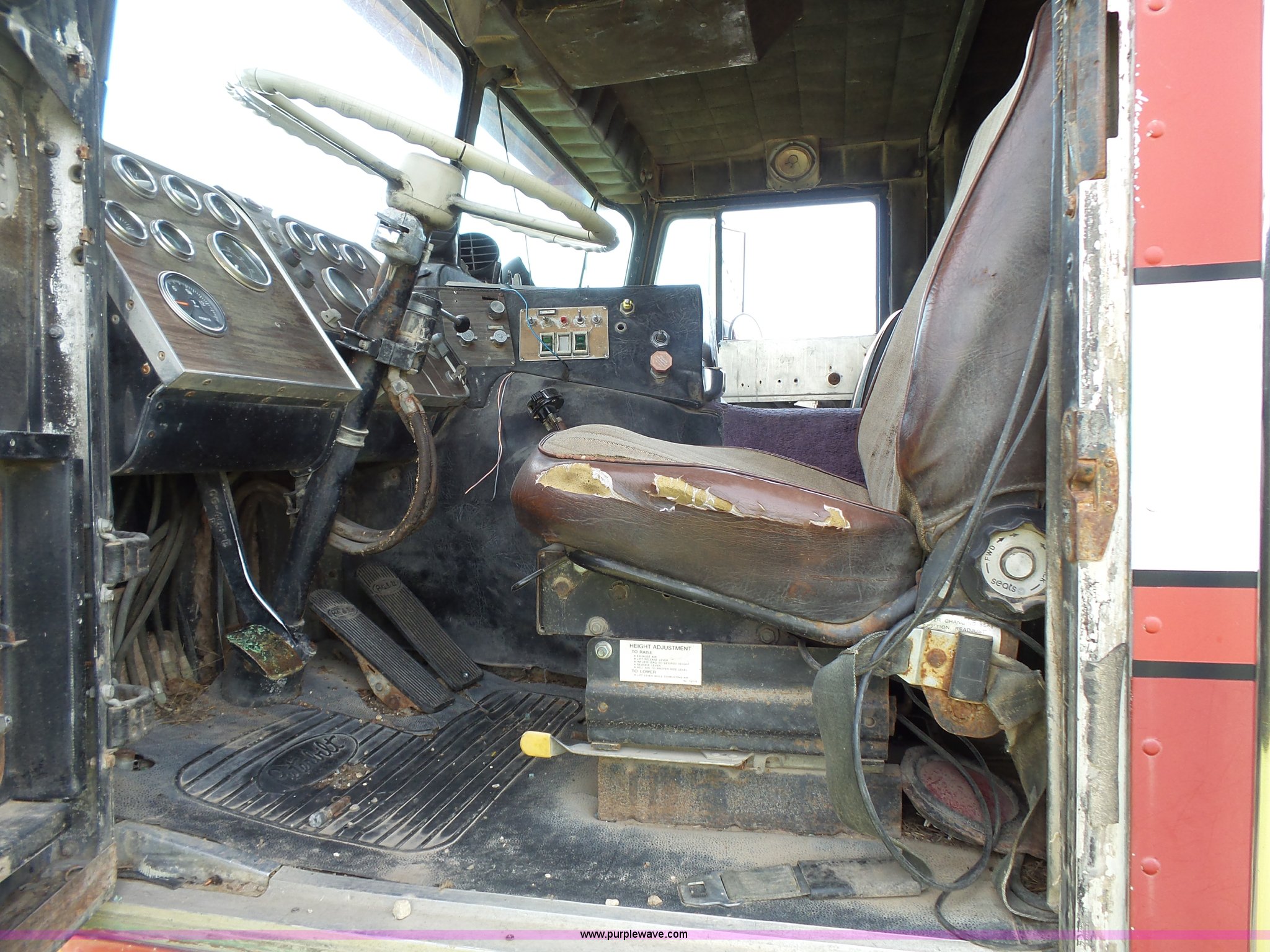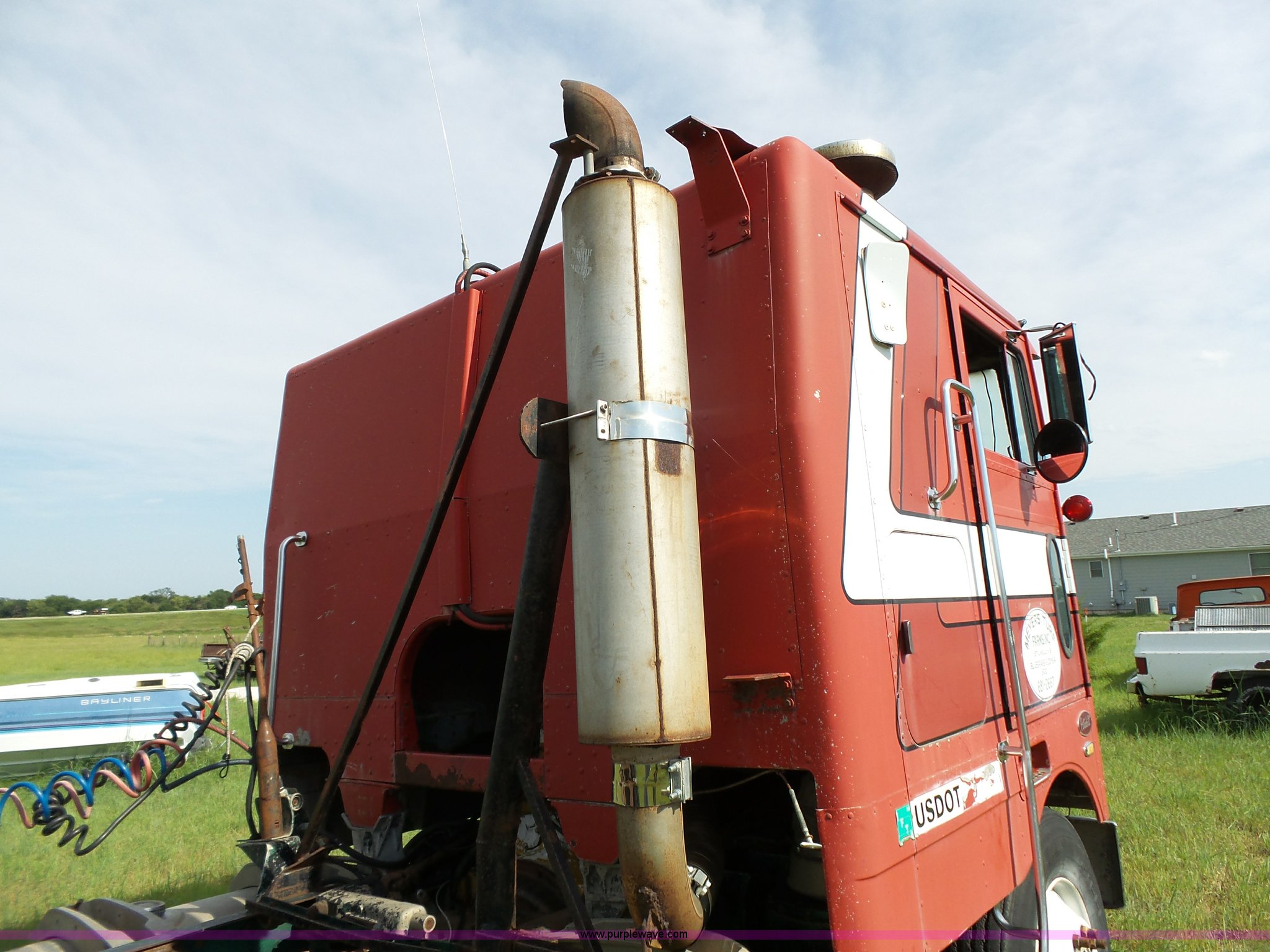 Purple Wave is selling a used Truck Tractor in Kansas. This item is a 1978 Peterbilt 352M semi truck with the following: 780,255 miles on odometer, Caterpillar 3406 diesel engine, 350 HP, Eaton Fuller Range Rover 13 speed manual transmission, Tandem axle, Full screw, AC and heat, Air suspension seat, Single exhaust stack, 184" wheelbase, Air suspension, Air brakes, 11R22.5 tires, Interior/exterior cosmetic damage, Non-operational AC