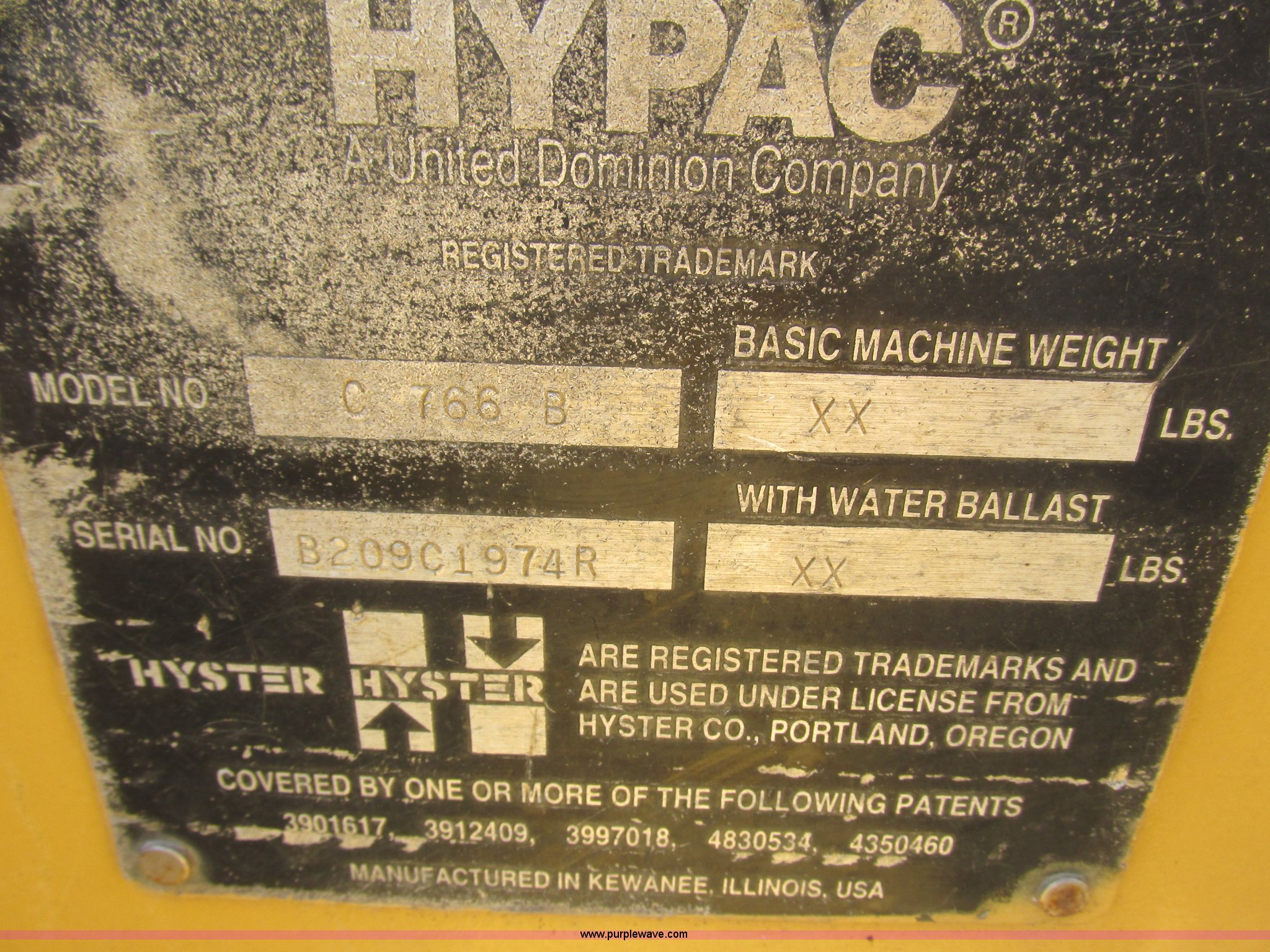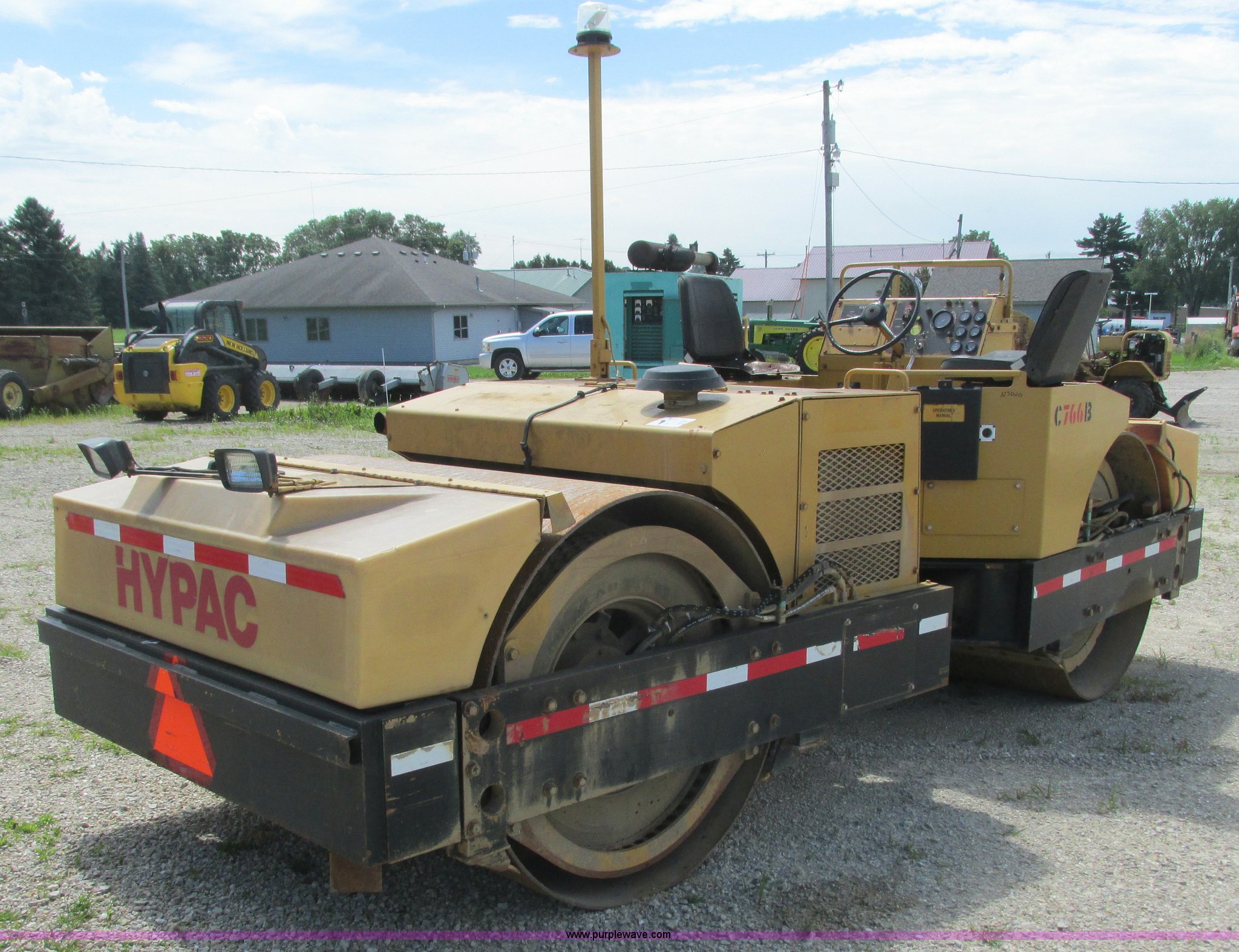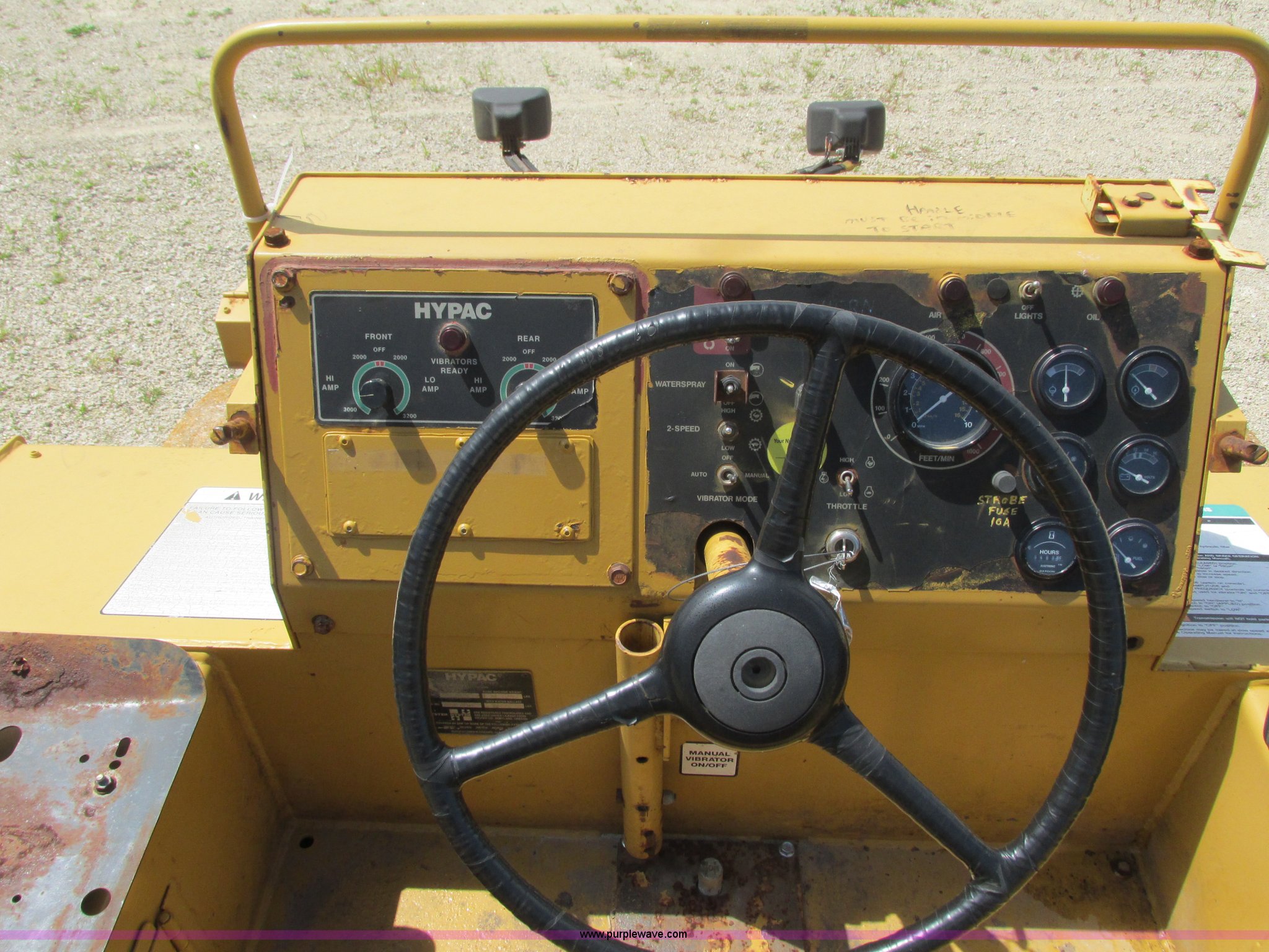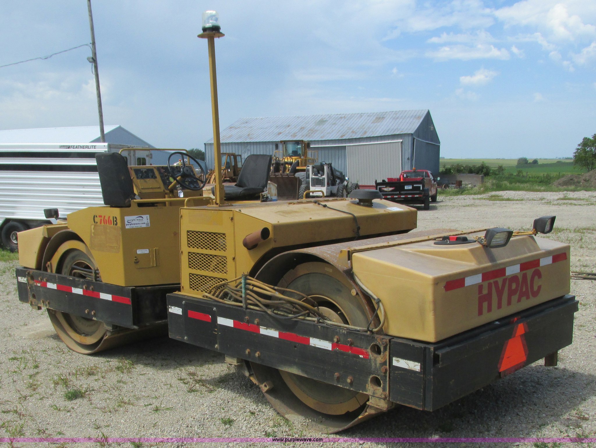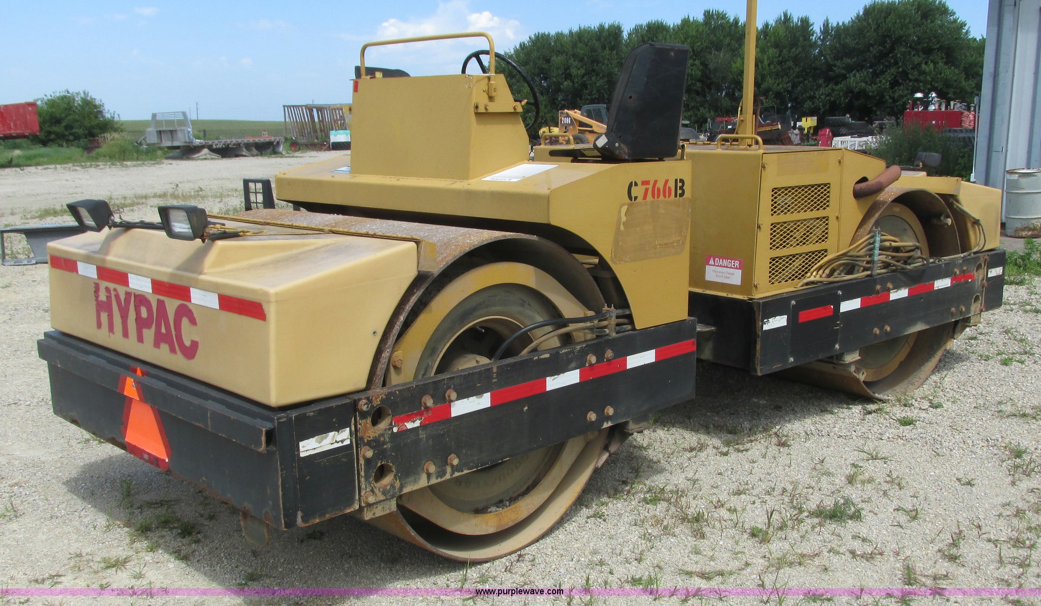 Hypac C766B double drum vibratory roller. 5,467 hours on meter, Cummins four cylinder turbo diesel engine, Two speed hydrostatic transmission, Dual operators stations, 66"W x 48" diameter smooth drums, Double vibratory system, Front and rear drum scrapers, Front and rear water application, Dual propel system, 20,950 lbs. base operating weight, Serial B209C1974R. Ray's Machinery & Auto. 54599 Highway 42. Plainview, MN 55964