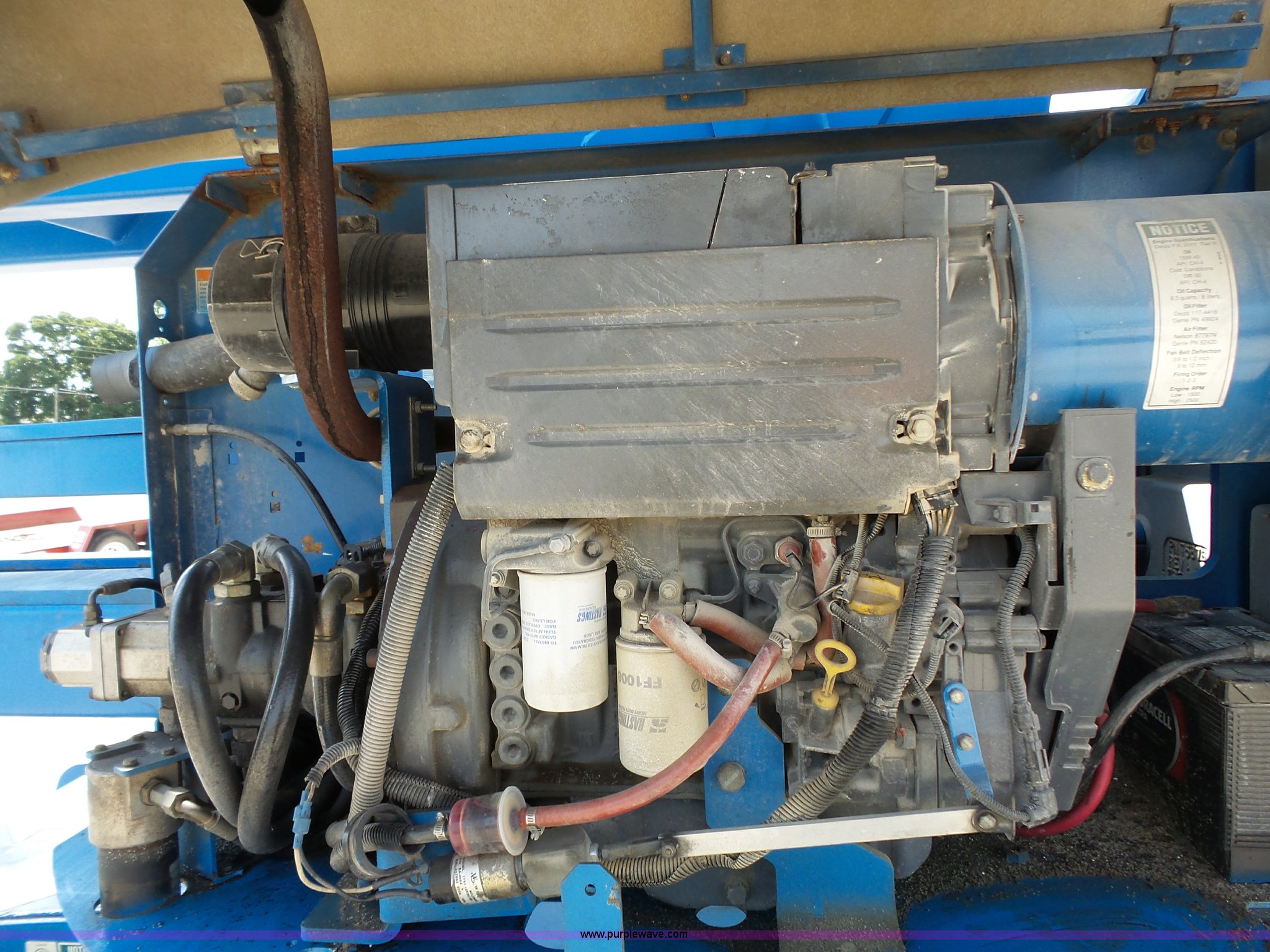 Purple Wave is selling a used Boom Lift in Kansas. This item is a 2004 Genie Z60/34 boom lift with the following: 3,227 hours on meter, Deutz F3L2011 diesel engine, Four wheel drive, 500 lbs maximum lift capacity, 34' maximum reach, 60' maximum lift height, Articulating boom, 5'9" x 27" platform, Platform and ground controls, Platform rotation, 385/65D19.5 tires, Serial 26004-4639