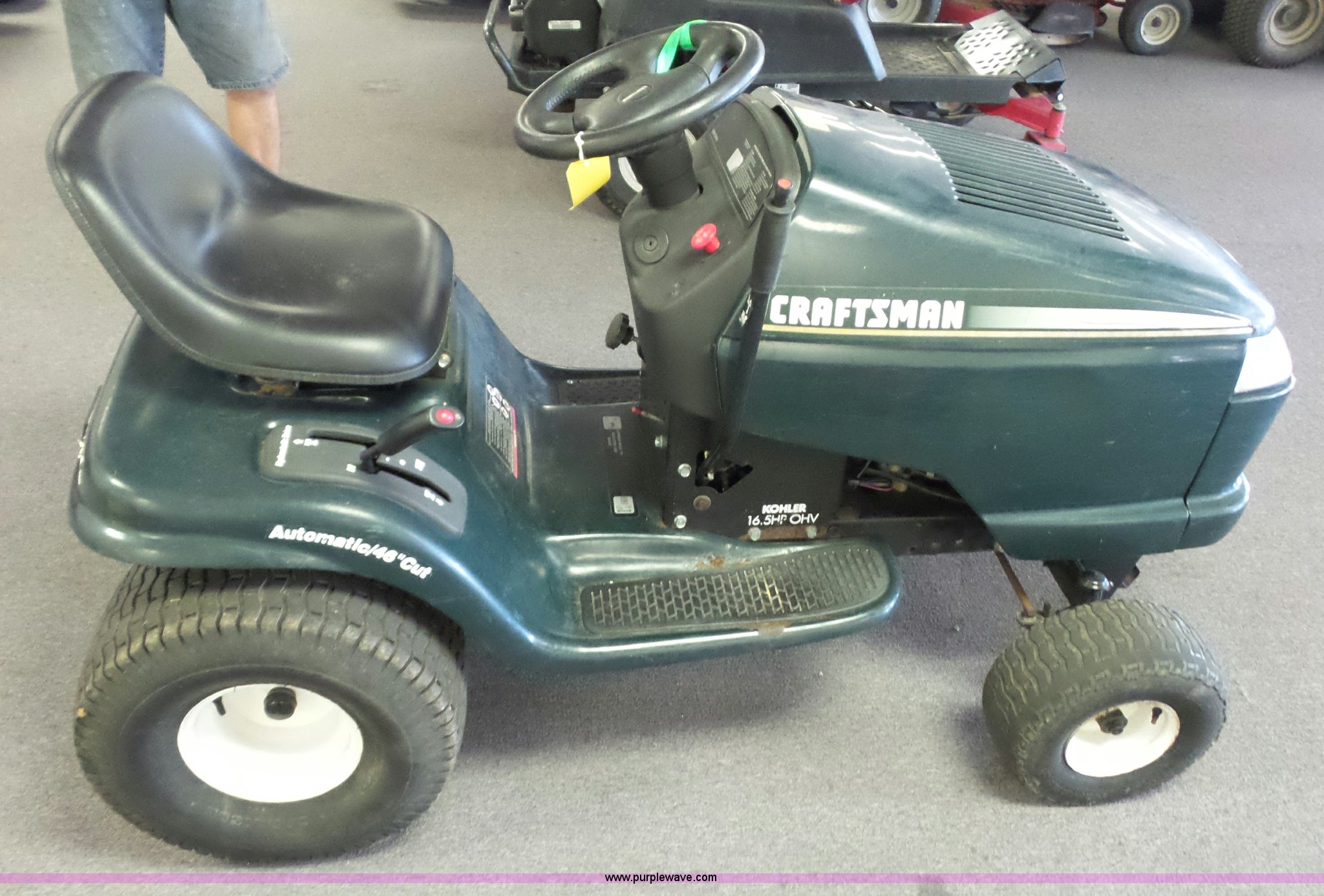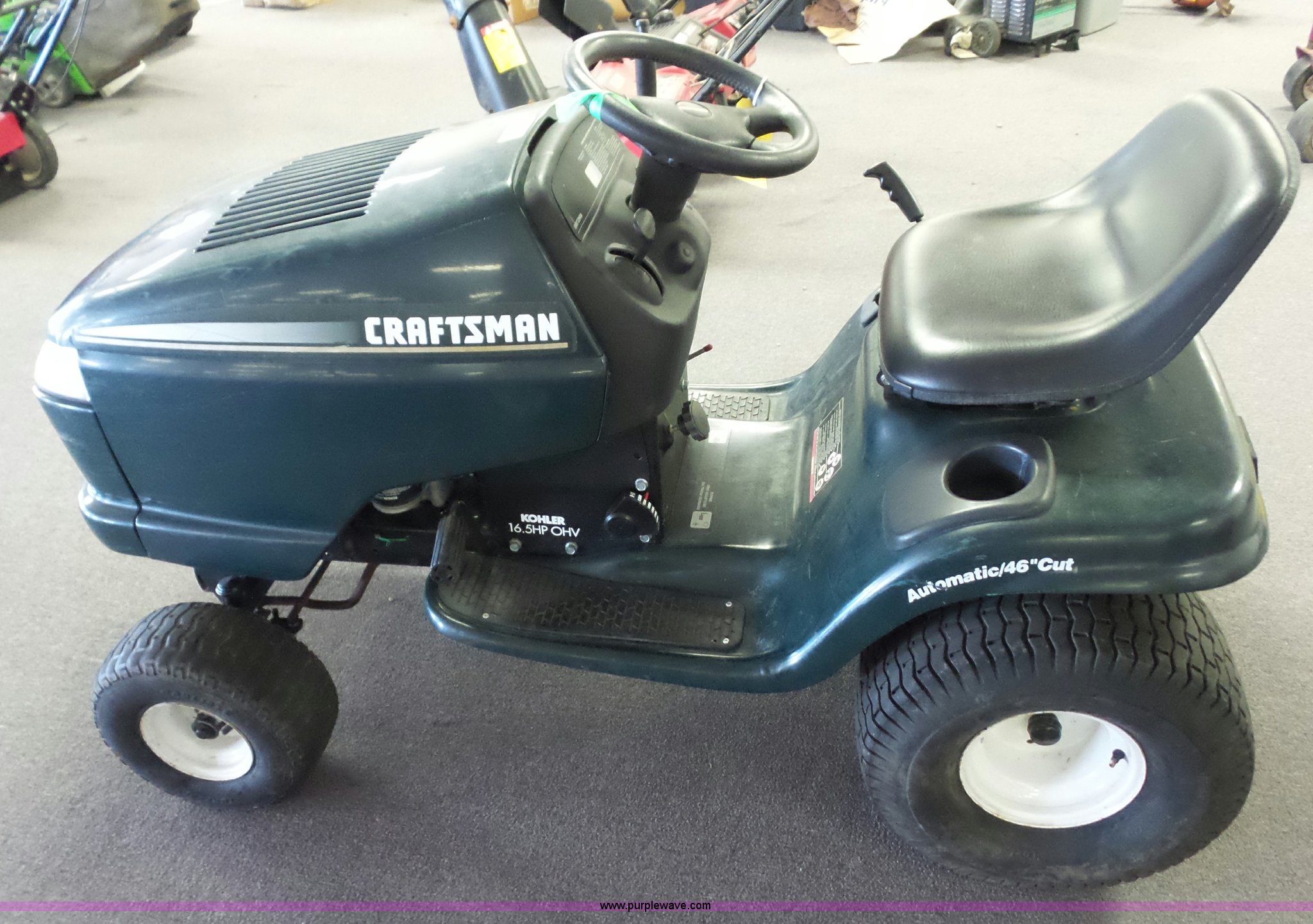 Purple Wave is selling a used Lawn Mower in Missouri. This item is a Craftsman riding lawn mower with the following: No deck, Kohler gas engine, 16.5 HP, Automatic transmission