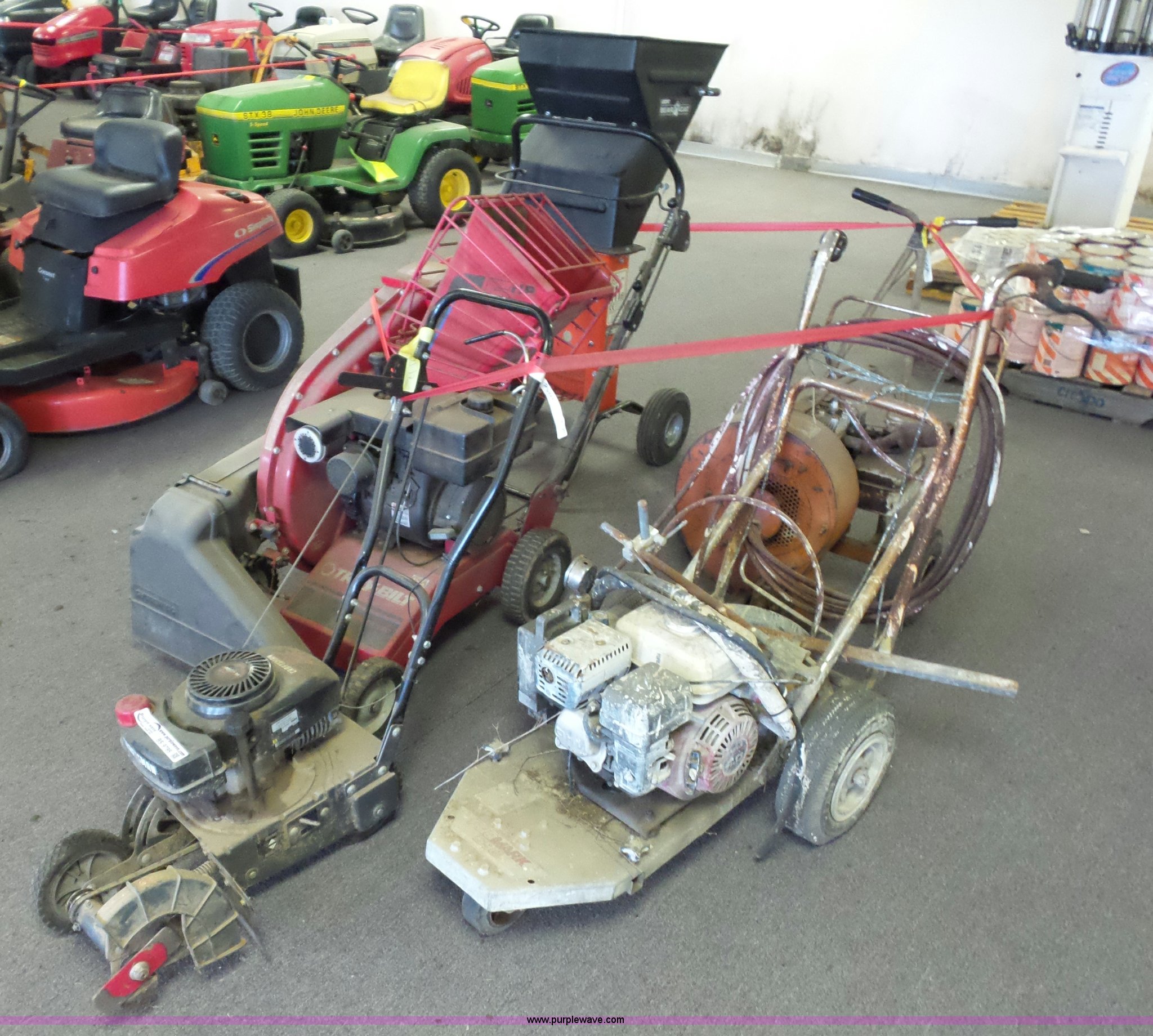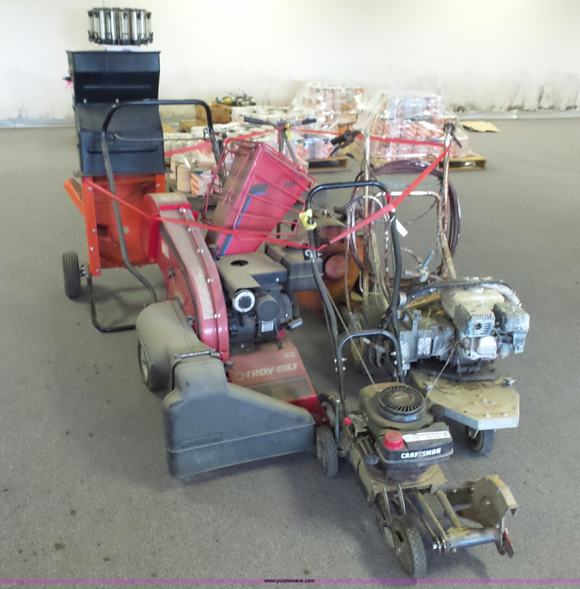Purple Wave is selling a used Tools in Missouri. This item is a Power equipment with the following: Gas powered paint sprayer, Edge trimmer, Troy Built vacuum, Bear cot chute, Blower, Unknown operating condition