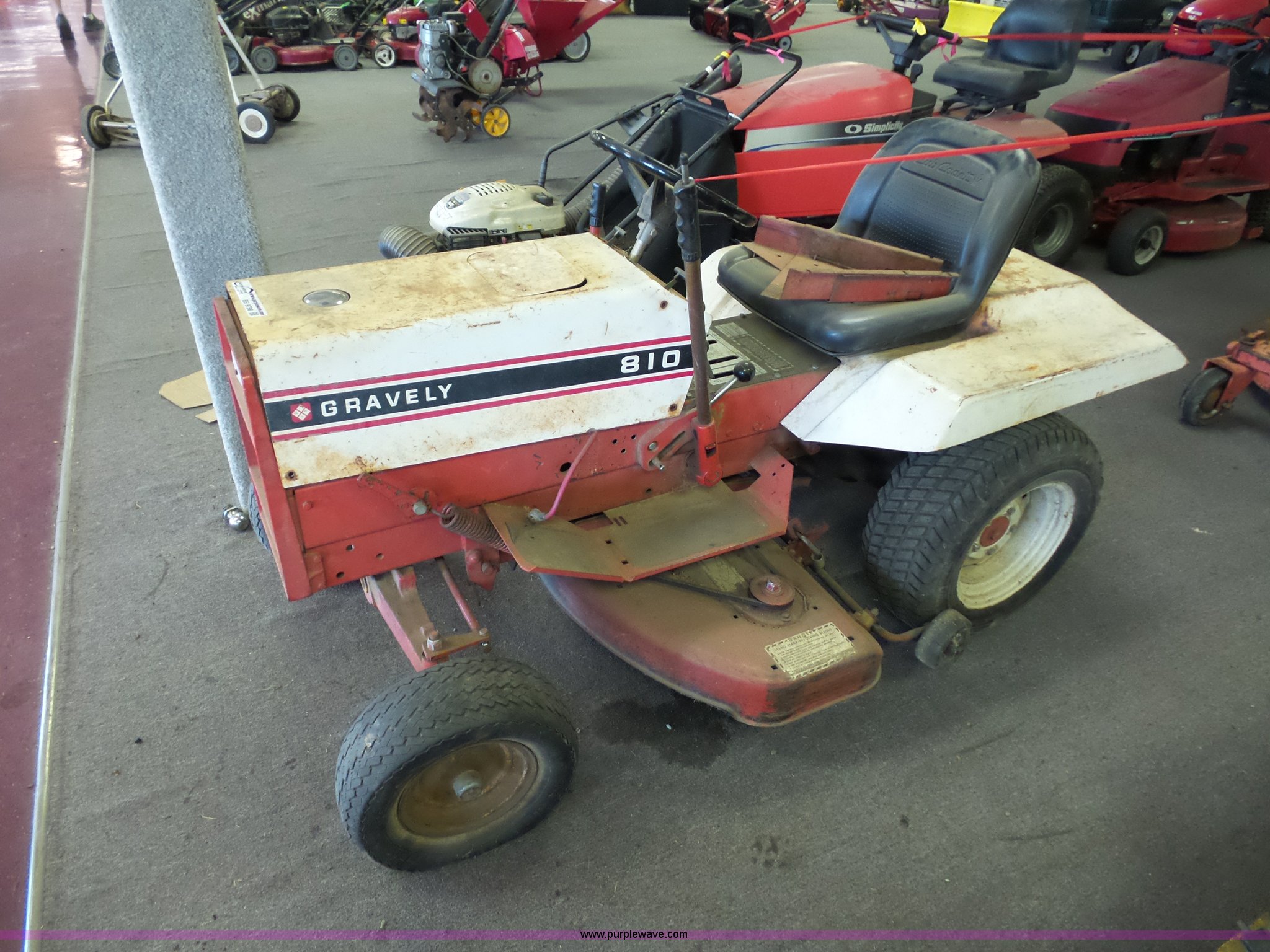 (3) riding lawn mowers. Gravely 810, Gravely Zero turn, Scag walk behind zero turn, Unknown operating condition. Lawn Care Equipment Co.. 12470 Hwy 21. Desoto, MO 63020