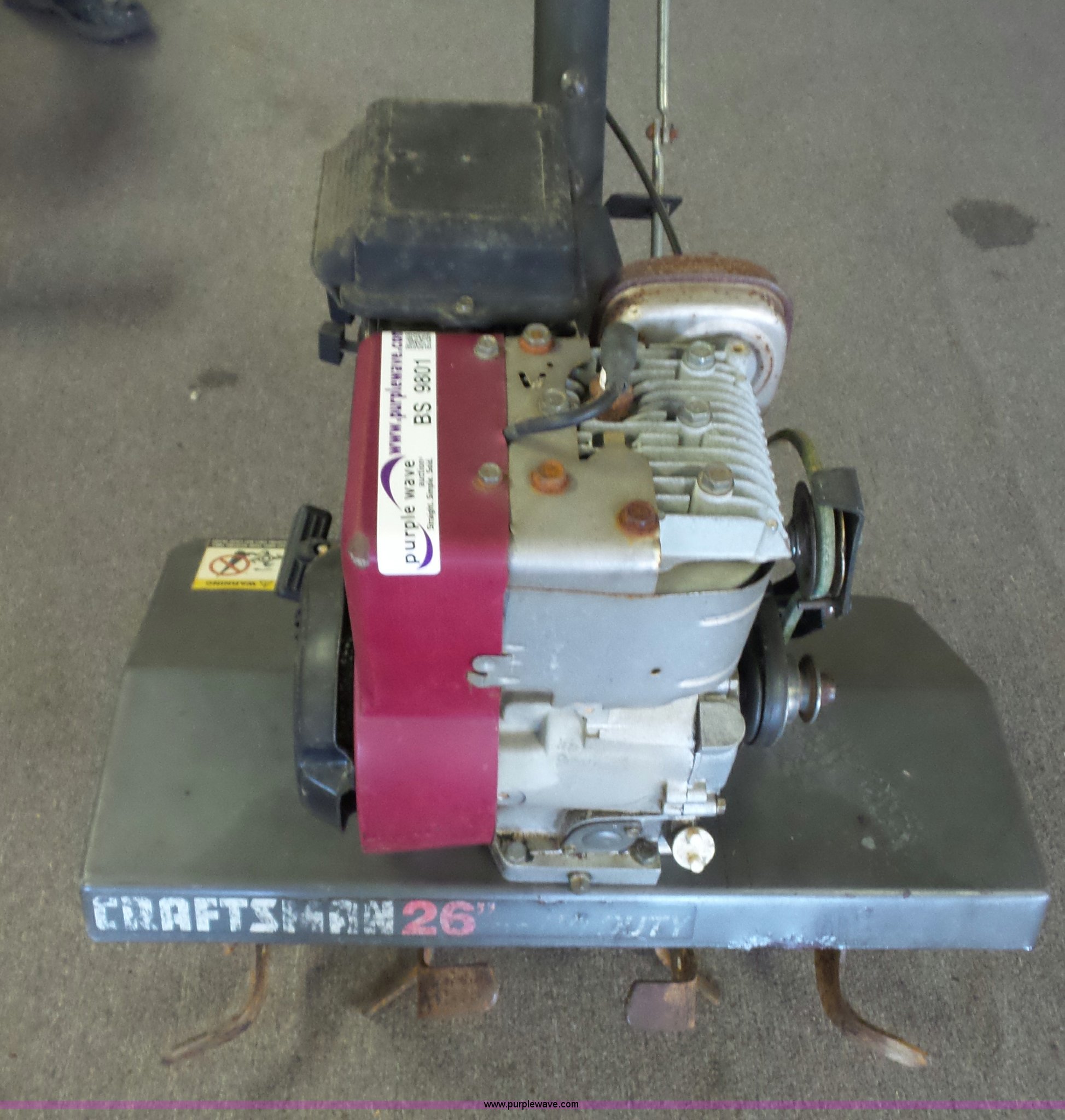 Purple Wave is selling a used Lawn and Garden in Missouri. This item is a Craftsman tiller with the following: Gas engine, 26"