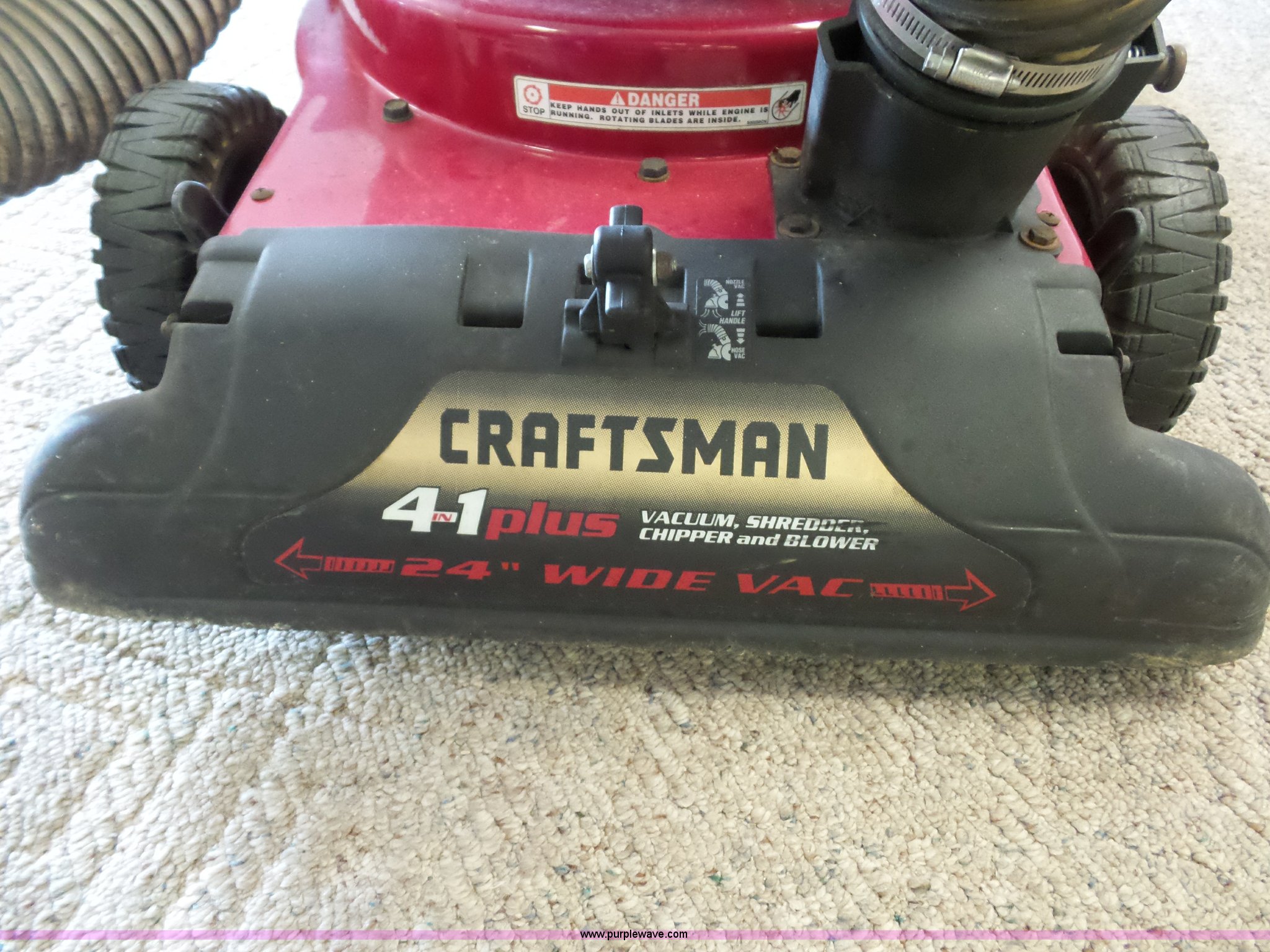 Craftsman 4-in-1 plus. Vaccum, shredder, blower, shredder, 24"W, Craftsman 6 HP gas engine. Lawn Care Equipment Co.. 12470 Hwy 21. Desoto, MO 63020