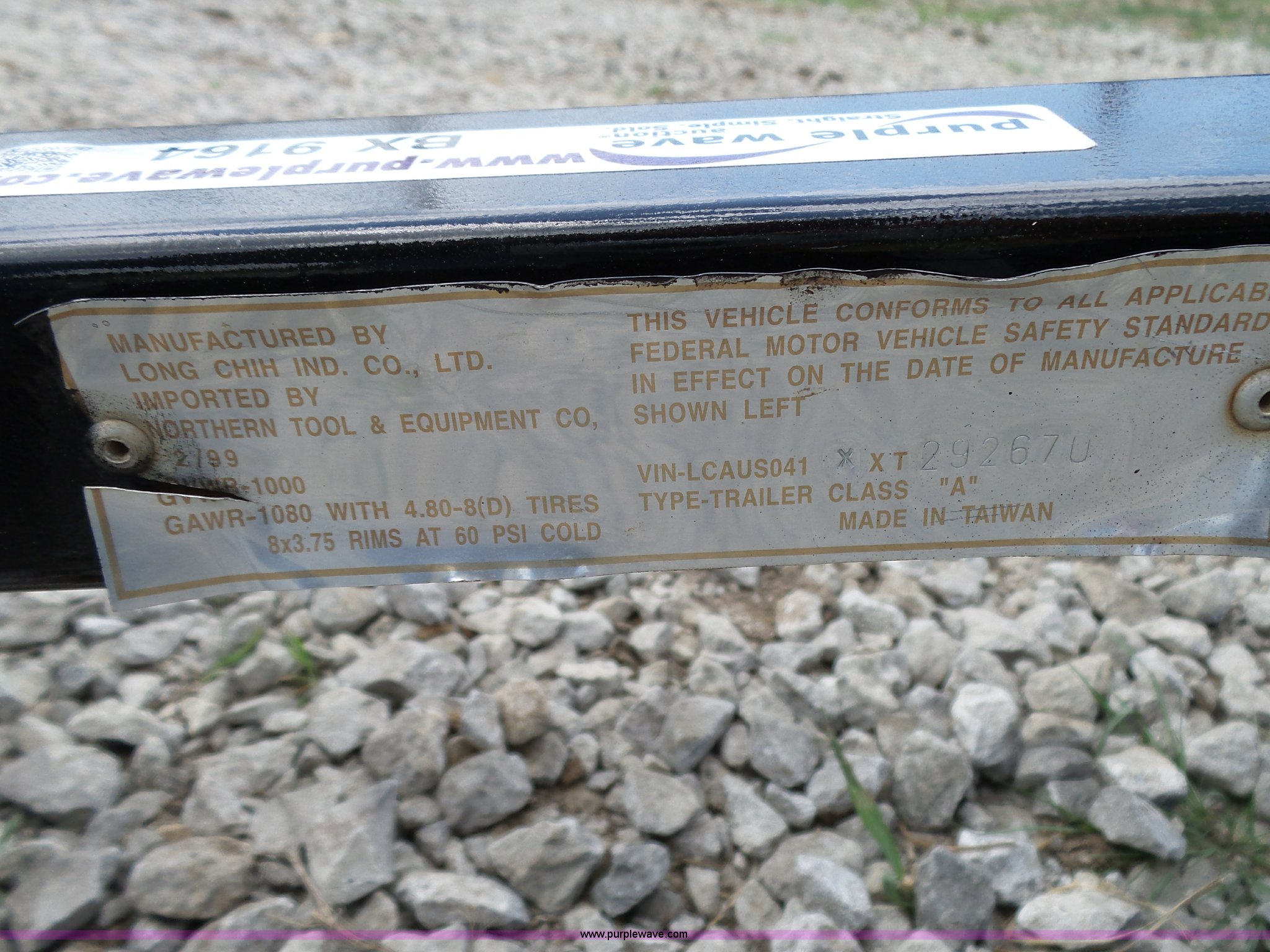 Purple Wave is selling a used Car or Utility Trailer in Nebraska. This item is a 1999 Long Chih utility trailer with the following: 48"L x 40"W chassis frame, 1 7/8" ball hitch, Spring suspension, 4.80/4.00-8 tires, GVWR 1,000 lbs