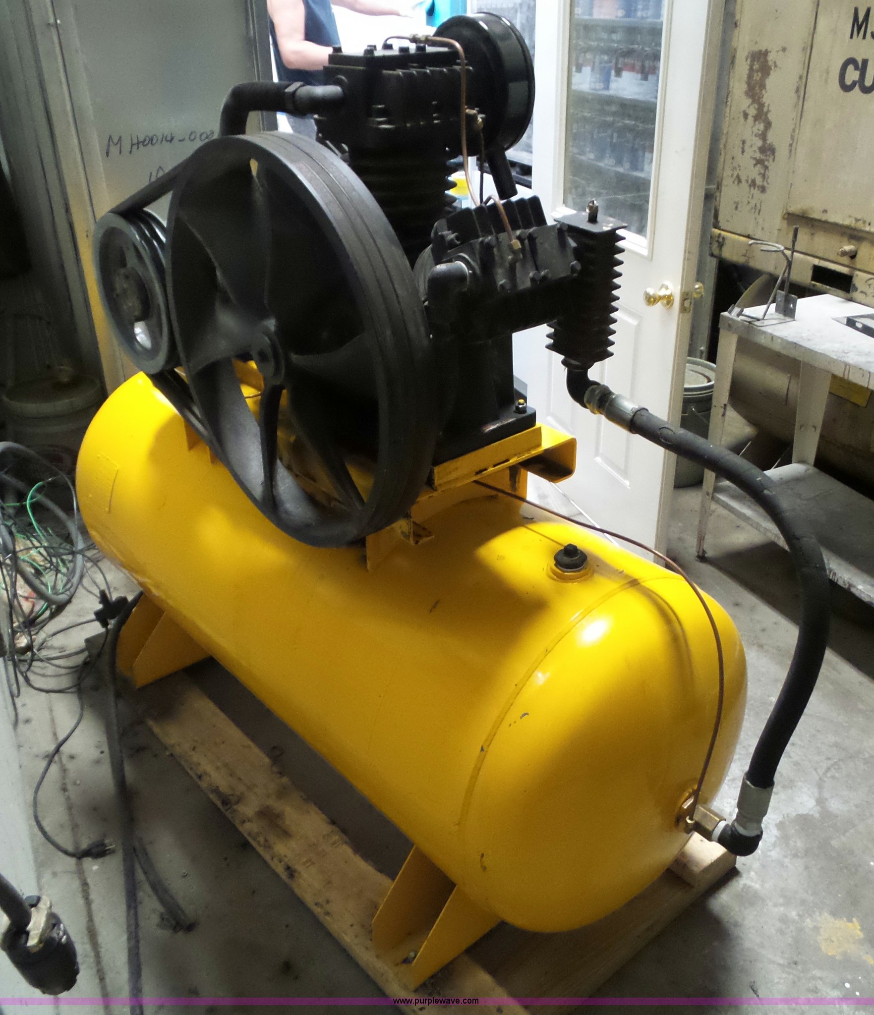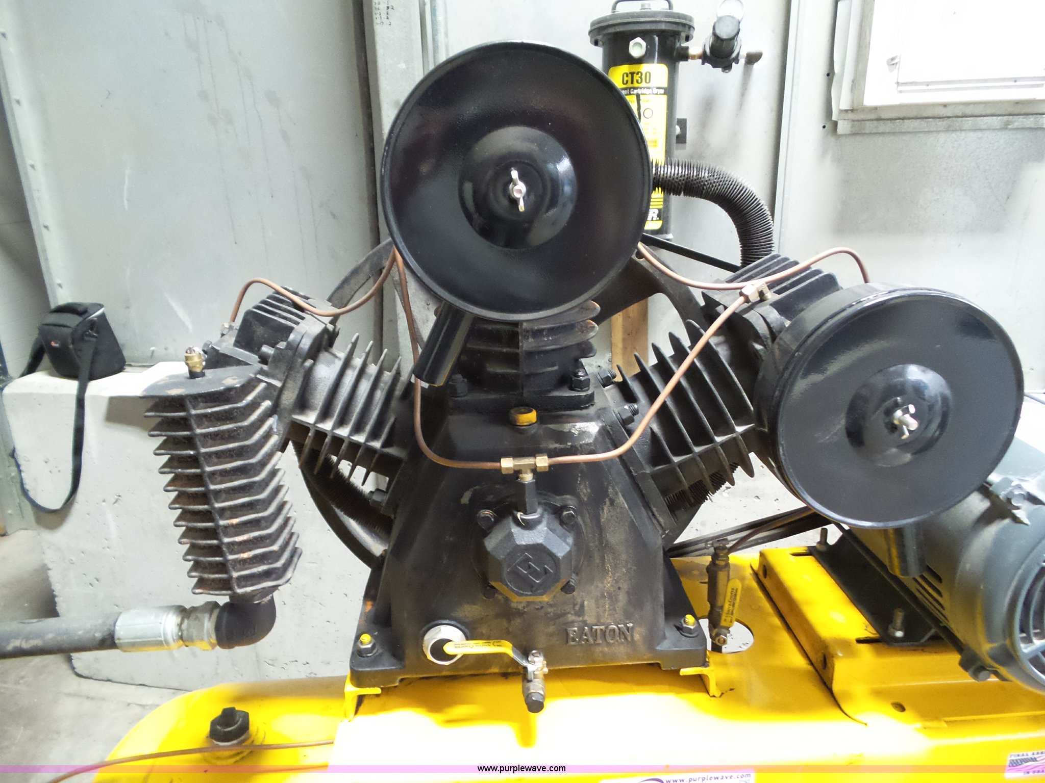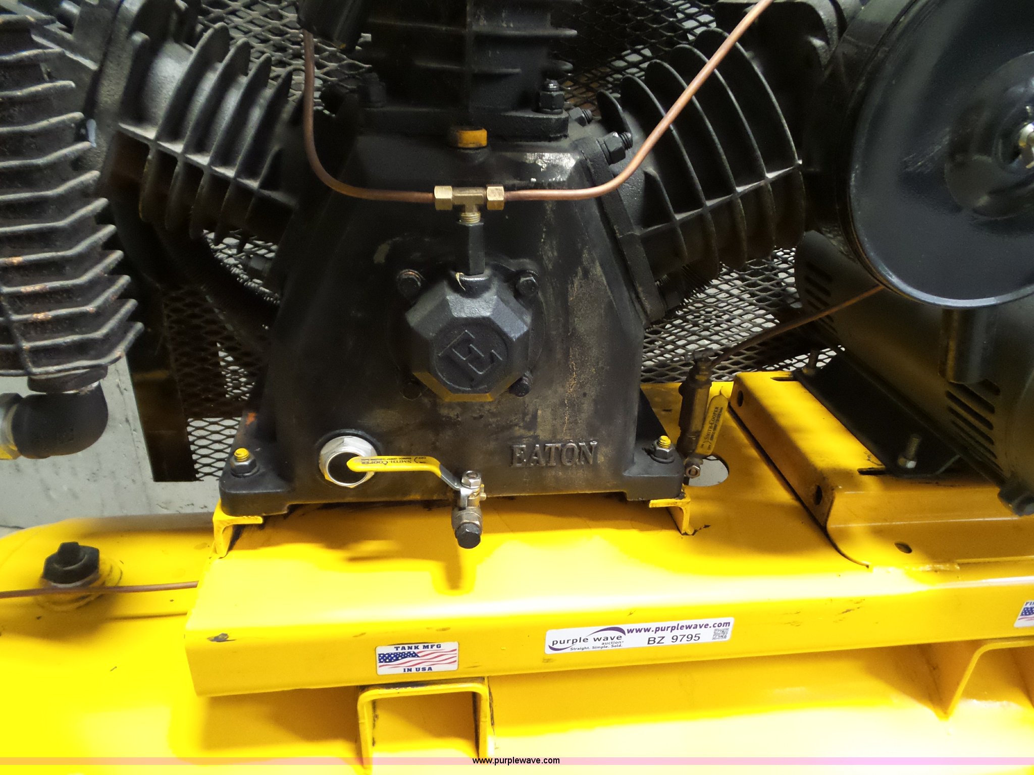 Purple Wave is selling a used Air Compressor in Iowa. This item is a 2013 Emax air compressor with the following: Lincoln SS04510T1B6008 electric motor, 10 HP, 208/230V, Single phase, Eaton APP3Y1544T air compressor, 175 psi, 120 gallon horizontal tank, 32" x 78" x 50", Two stage, Auto tank drain, Skid mounted, 1,083 lbs, Plug and cable hook up not included, Serial EP10H120Y1