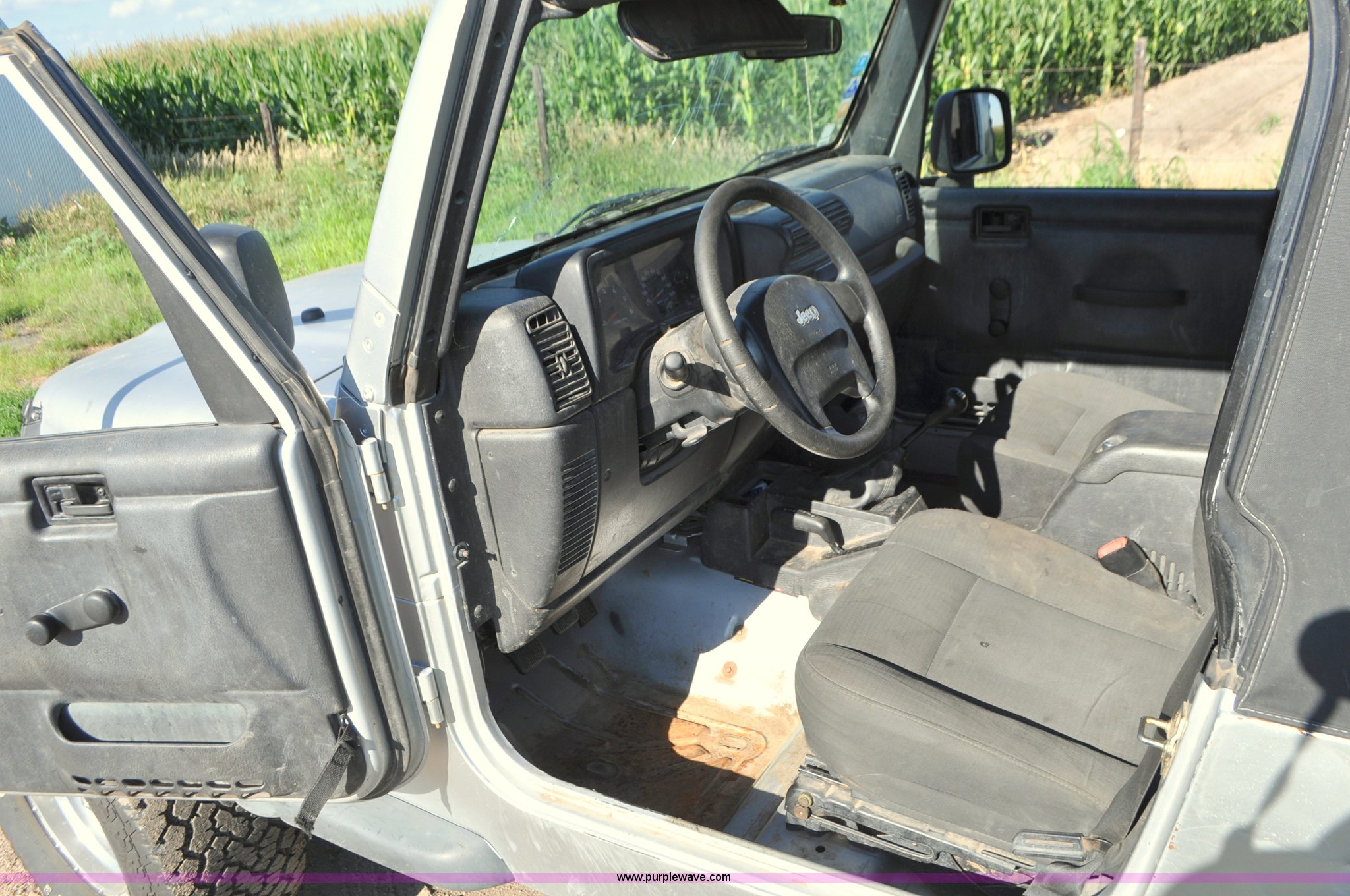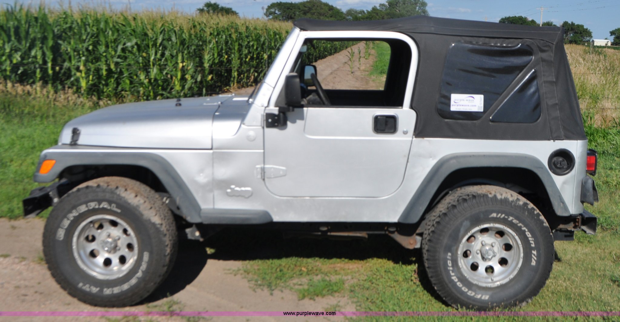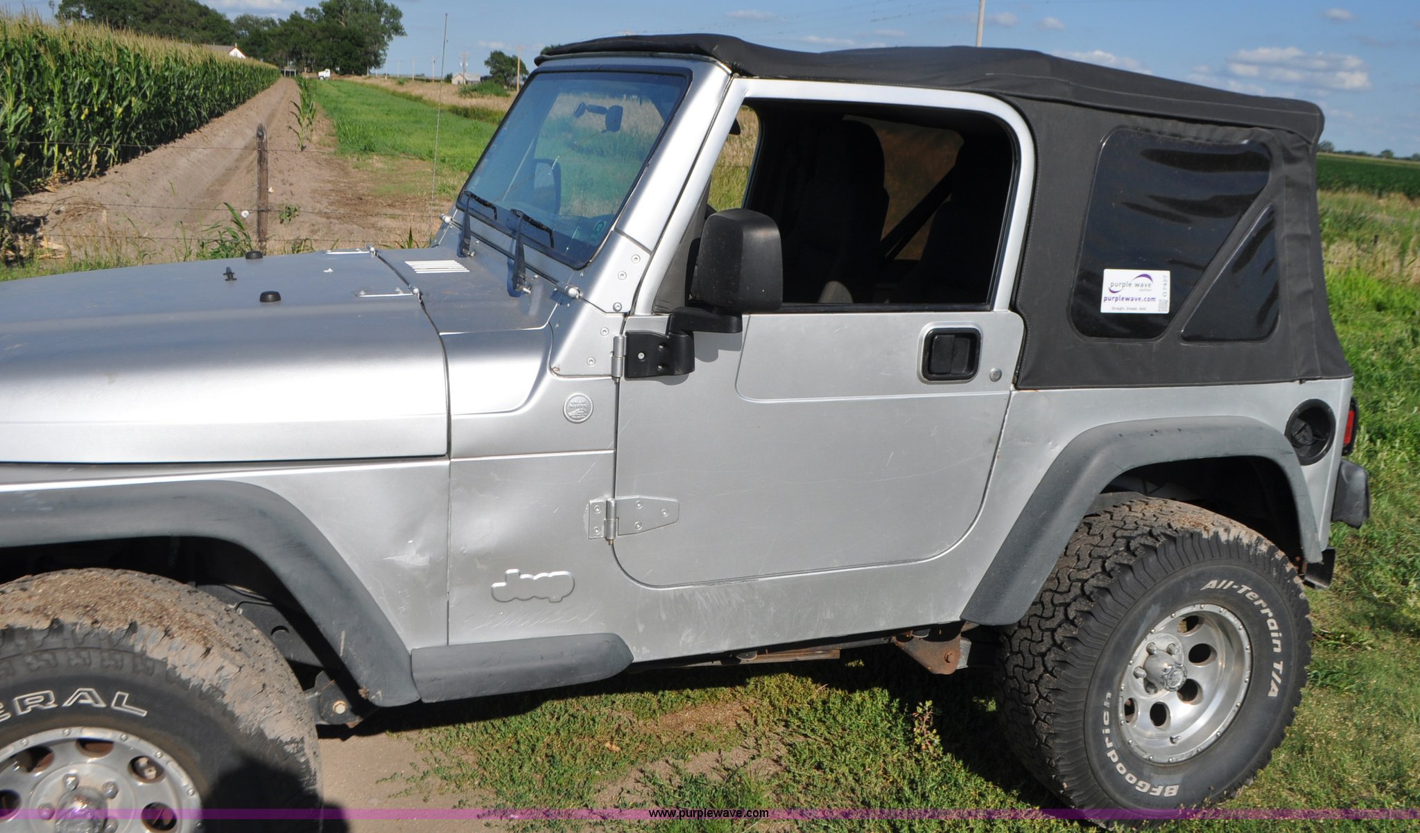 Purple Wave is selling a used Passenger Vehicle in Nebraska. This item is a 2006 Jeep Wrangler Sport SUV with the following: 63,424 miles on odometer, 4.0L L6 OHV 12V gas engine, Six speed manual transmission, AC and heat, Tilt, AM/FM/CD, Manual windows and locks, Receiver hitch, Soft top, 33x12.50R15LT tires, 2" lift kit, Glass cracked