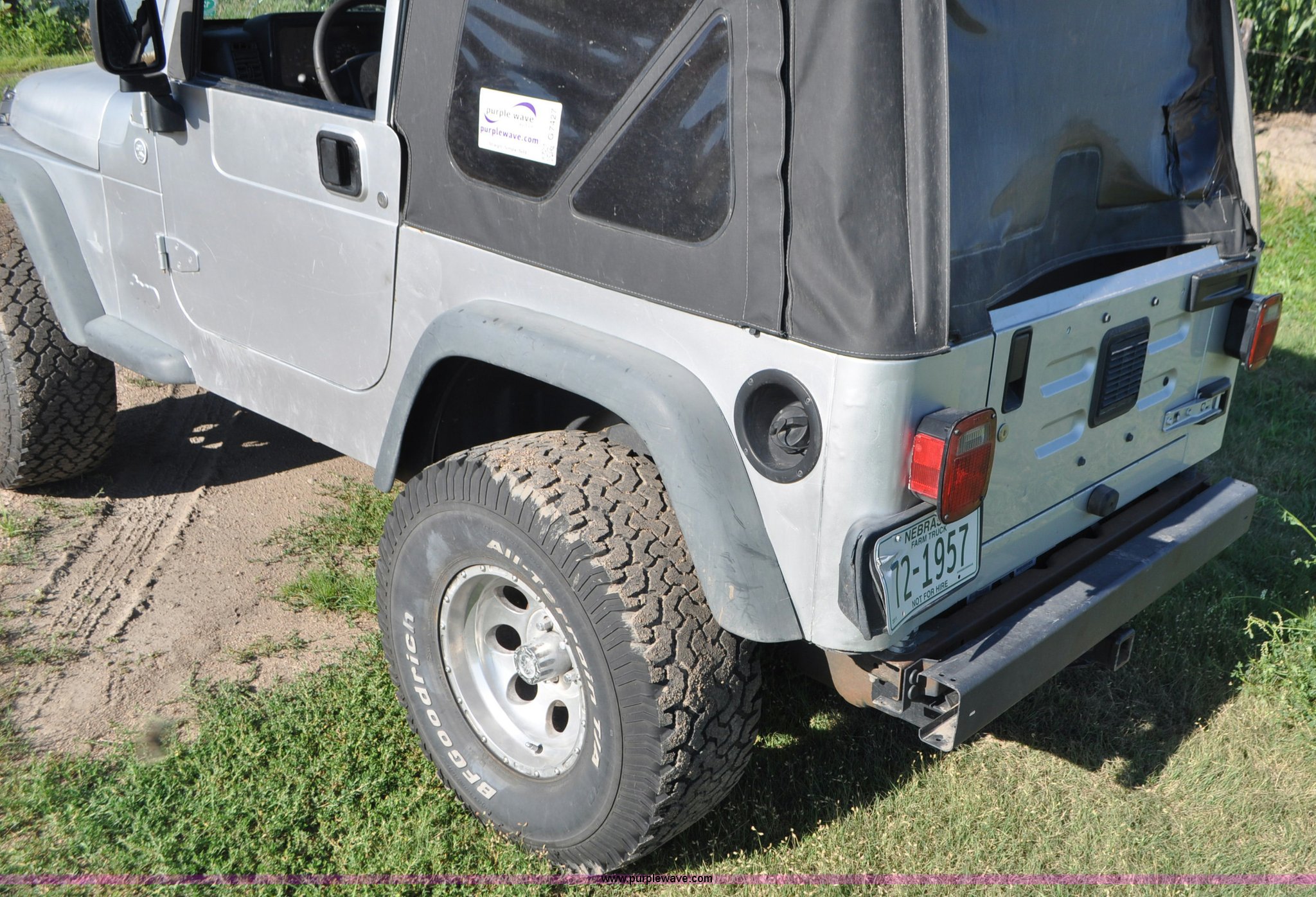 2006 Jeep Wrangler Sport SUV. 63,424 miles on odometer, 4.0L L6 OHV 12V gas engine, Six speed manual transmission, AC and heat, Tilt, AM/FM/CD, Manual windows and locks, Receiver hitch, Soft top, 33x12.50R15LT tires, 2" lift kit, Glass cracked. Nebraska title. 1J4FA49S66P748586. 7849 Buckboard Rd. North Platte , NE 69101