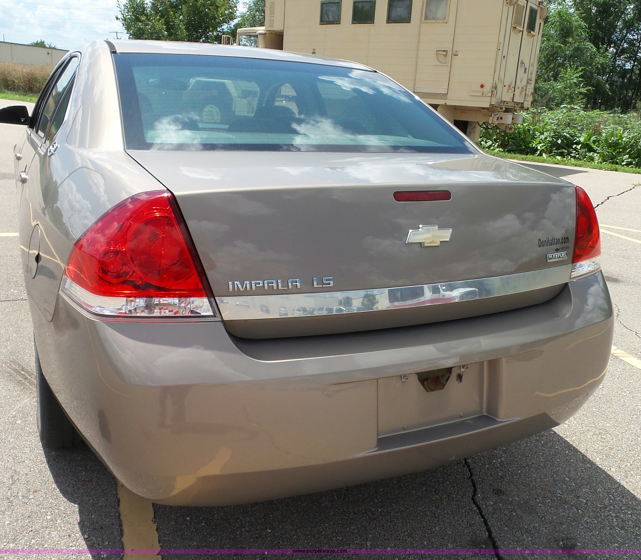 Purple Wave is selling a used Passenger Vehicle in Kansas. This item is a 2007 Chevrolet Impala LS with the following: 140,550 miles on odometer, 3.5L V6 OHV 16V FFV gas engine, Automatic transmission, AC and heat, Tilt, Cruise, AM/FM/CD, Power windows, locks, mirrors, and seats, Cloth interior, 225/60R16 tires, Hail damage