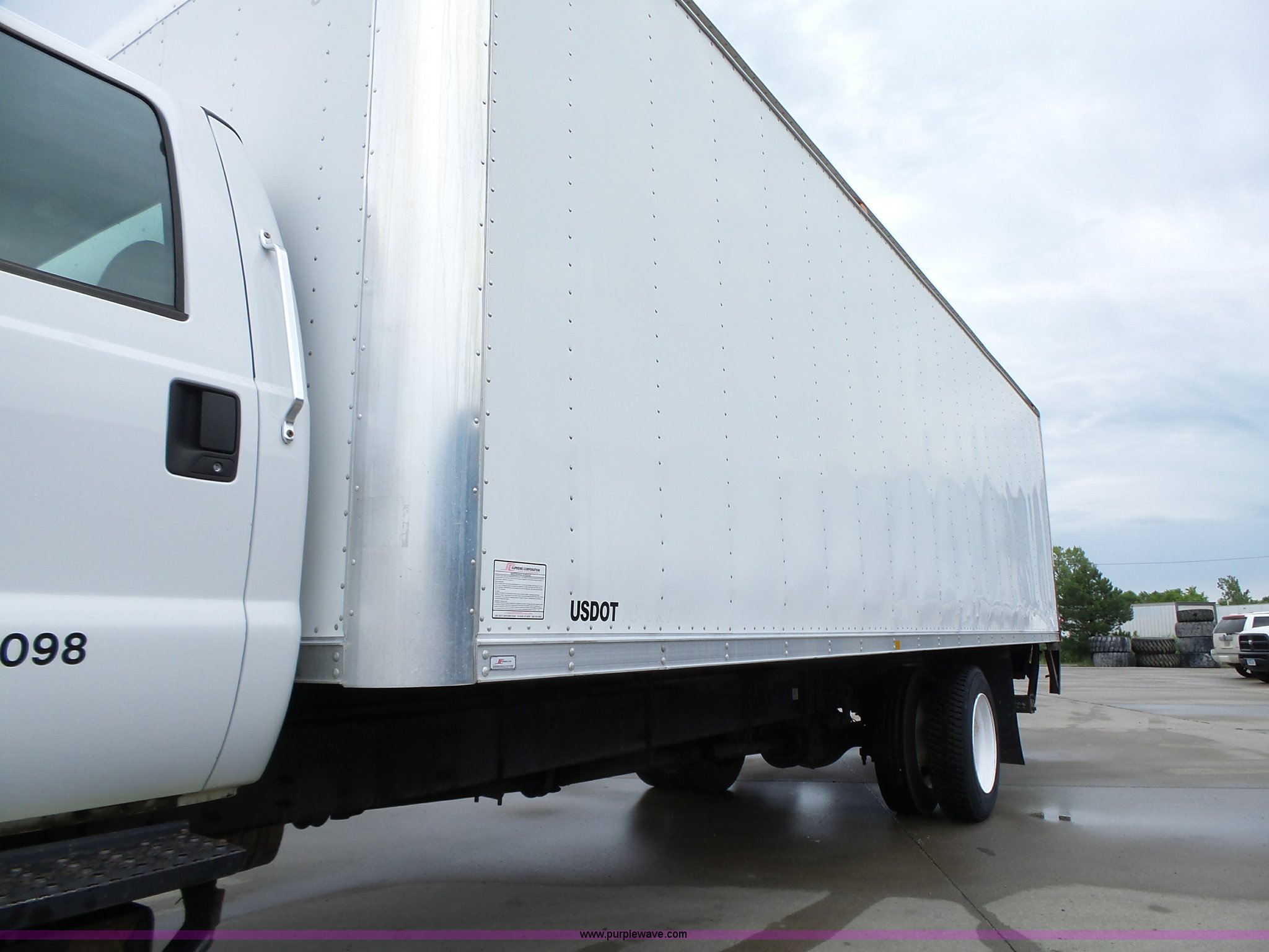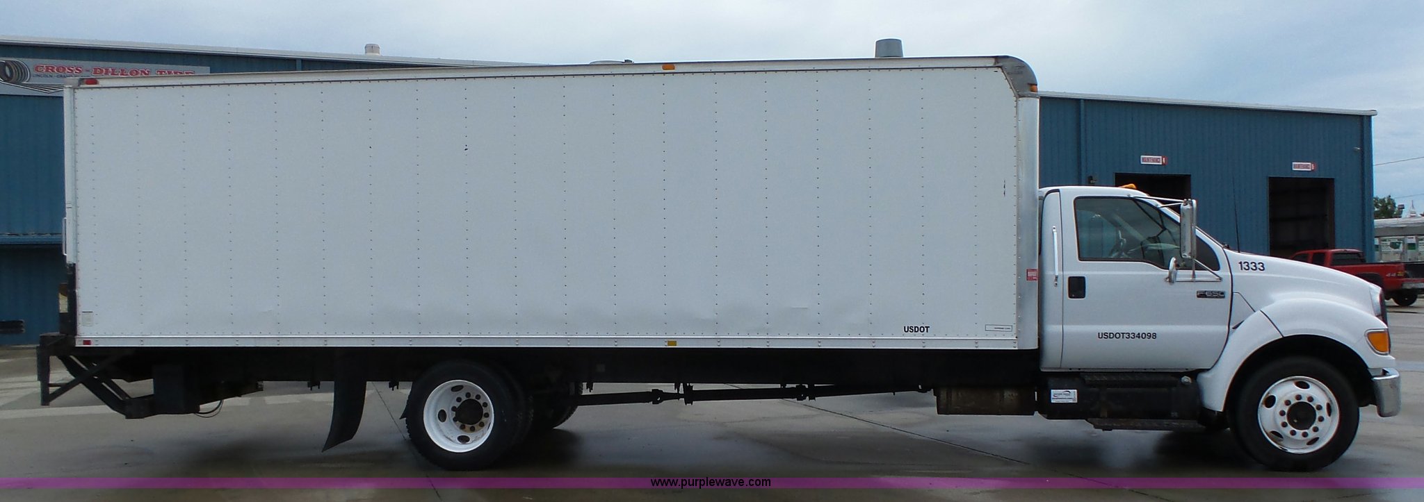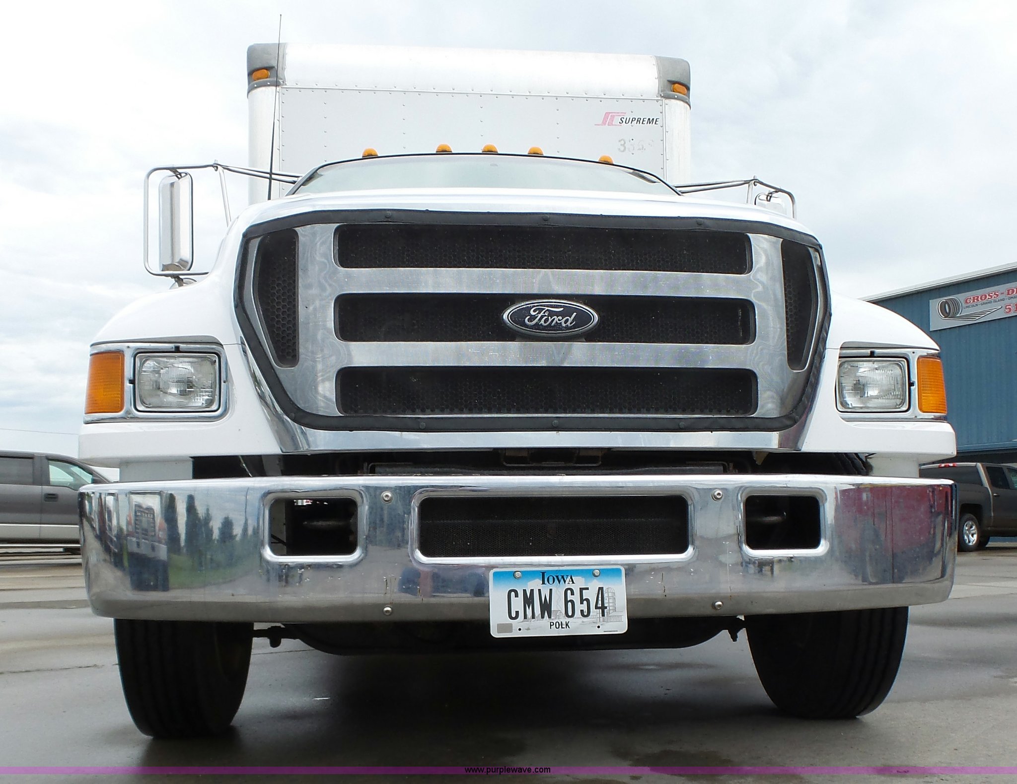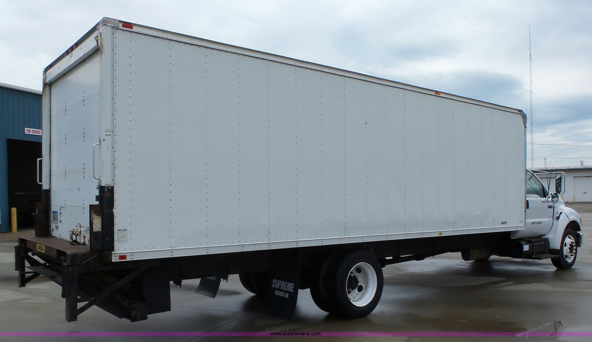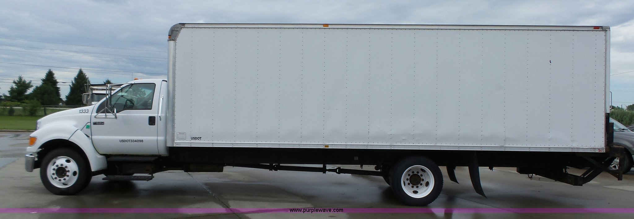 Purple Wave is selling a used Box Truck in Iowa. This item is a 2005 Ford F650 Super Duty XL box truck with the following: 220,325 miles on odometer, International VT365 6.0L V8 turbo diesel engine, 215 HP, Automatic transmission, Single axle, AC and heat, AM/FM/CD, Block heater, Front tow hooks, Supreme box bed, 26'L x 8'W, Wood deck, Rear roll up door, Dock bumper, Maxon tailgate lift, Translucent roof, Serial VA26084096, Single fuel tank, Spring suspension, Hydraulic brakes, 260" wheelbase, 255/70R22.5 tires, GVWR 26,000 lbs, FAWR 8,500 lbs, RAWR 17,500 lbs, Contents not included, Unit# 1333