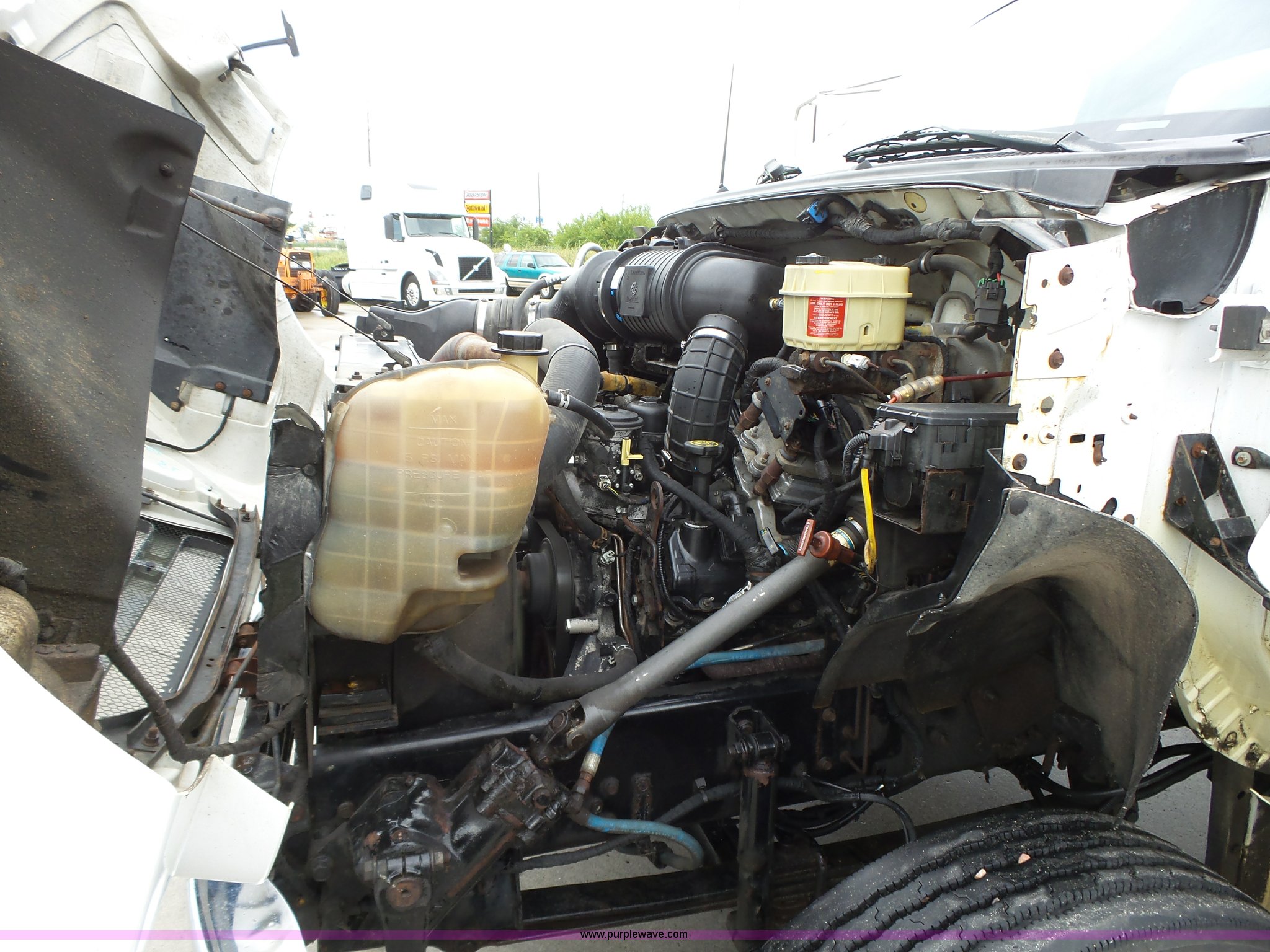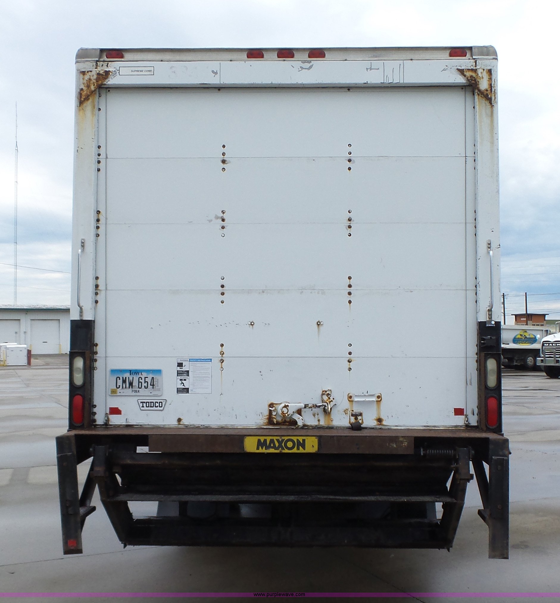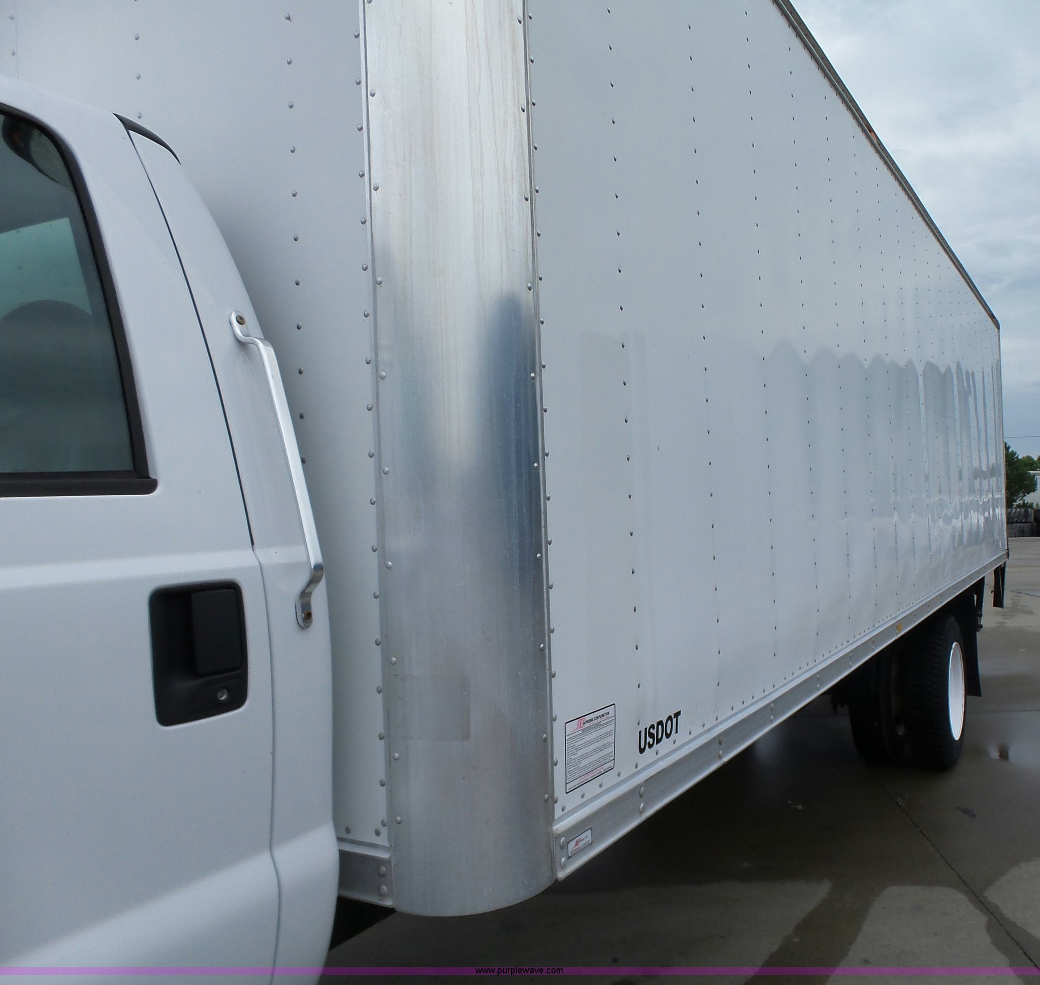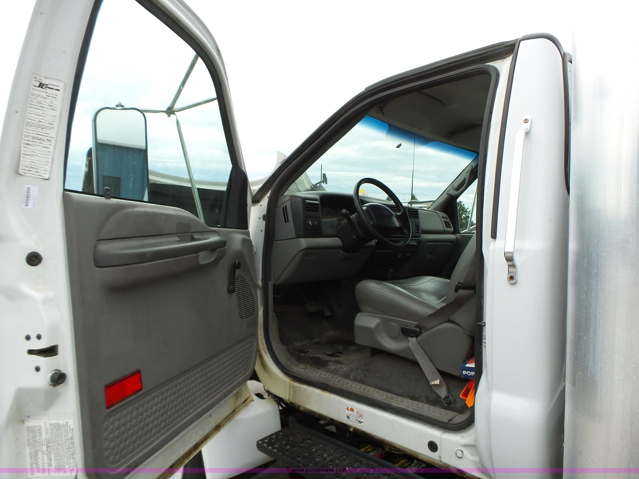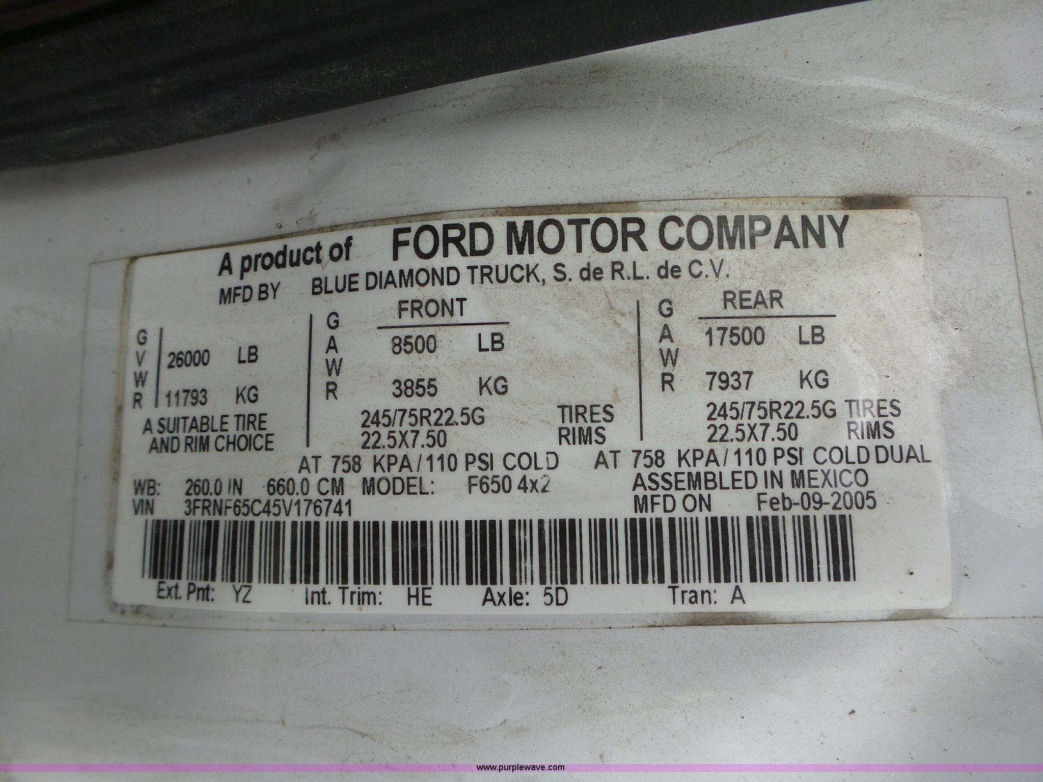 Purple Wave is selling a used Box Truck in Iowa. This item is a 2005 Ford F650 Super Duty XL box truck with the following: 220,325 miles on odometer, International VT365 6.0L V8 turbo diesel engine, 215 HP, Automatic transmission, Single axle, AC and heat, AM/FM/CD, Block heater, Front tow hooks, Supreme box bed, 26'L x 8'W, Wood deck, Rear roll up door, Dock bumper, Maxon tailgate lift, Translucent roof, Serial VA26084096, Single fuel tank, Spring suspension, Hydraulic brakes, 260" wheelbase, 255/70R22.5 tires, GVWR 26,000 lbs, FAWR 8,500 lbs, RAWR 17,500 lbs, Contents not included, Unit# 1333