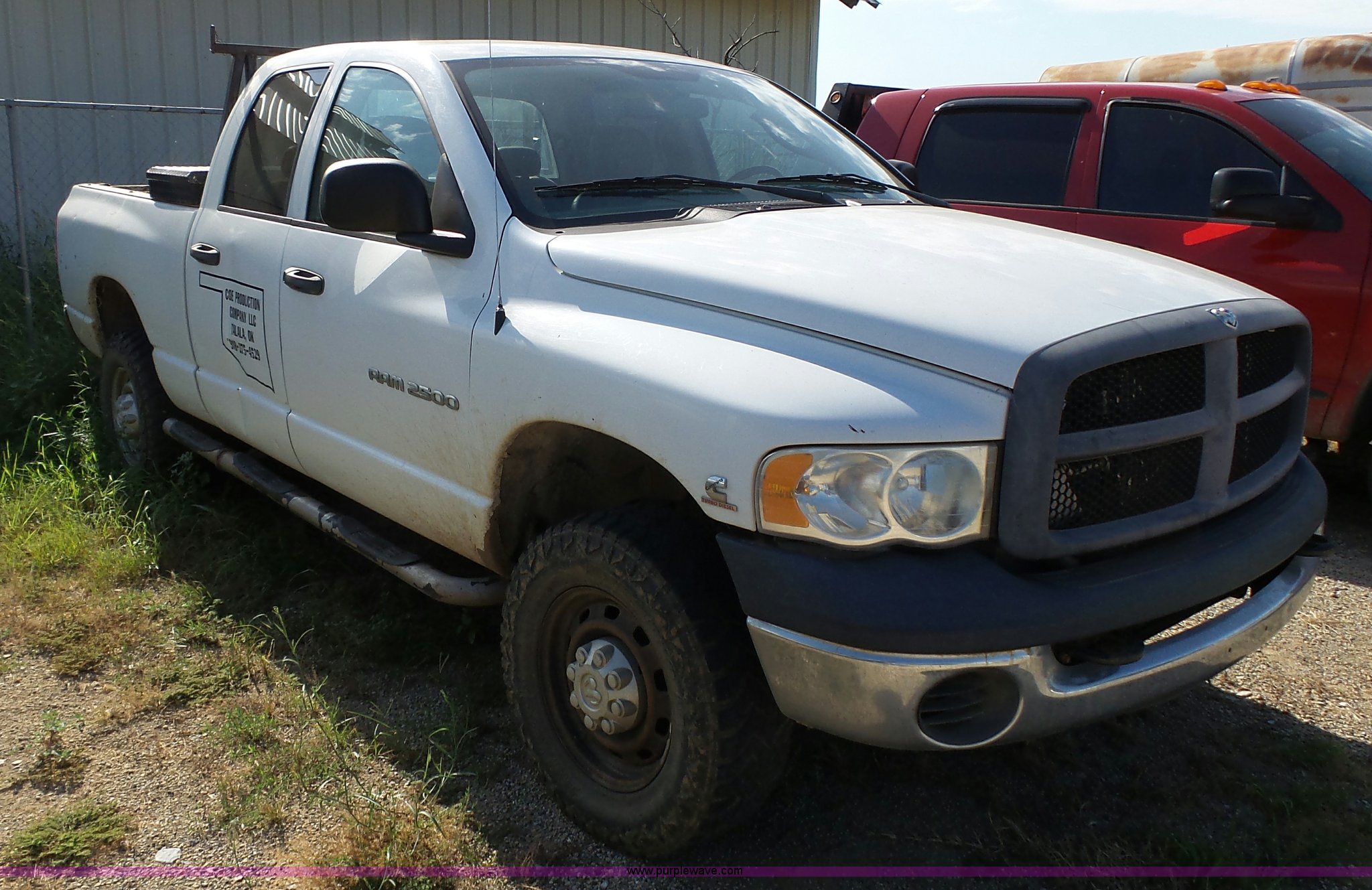 Purple Wave is selling a used 3/4 or 1 Ton Pickup or Van in Oklahoma. This item is a 2004 Dodge Ram 2500 Quad Cab pickup truck with the following: 301,977 miles on odometer, 5.9L L6 OHV 24V turbo diesel engine, Automatic transmission, Four wheel drive, AC and heat, AM/FM, Manual windows and locks, Vinyl interior, 265/70R17 tires, Interior/exterior cosmetic damage