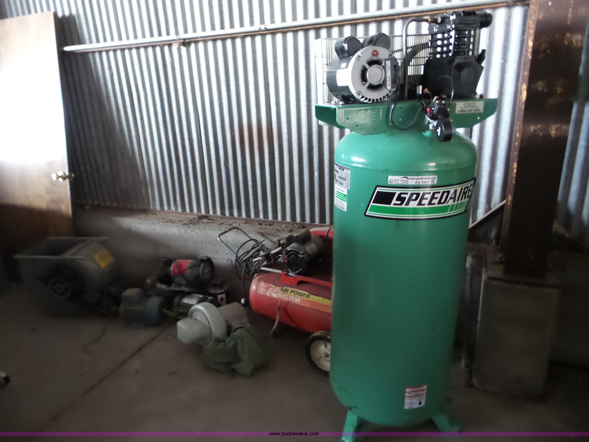 Purple Wave is selling a used Tools in Kansas. This item is a Tools with the following: (2) air compressors, Compressor pumps do not work, (6) electric motors, Unknown operating condition, Bench grinder, Fan