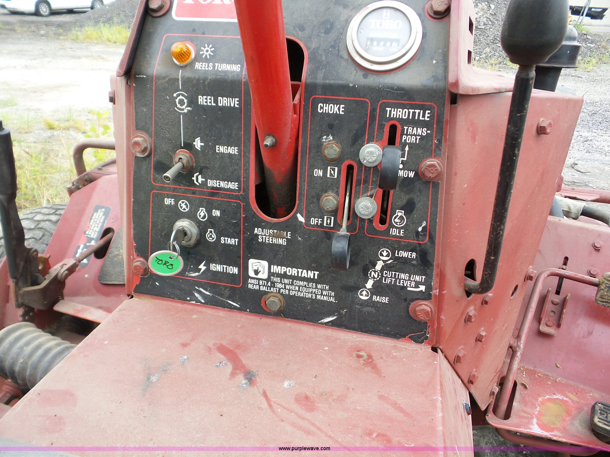 Purple Wave is selling a used Commercial Turf Mower in Kansas. This item is a Toro Reelmaster 216 lawn mower with the following: 1,578 hours on meter, 6'W cut, Hydrostatic transmission, (3) reels, Needs battery, Reels do not turn on with switch, Serial 03410-81114