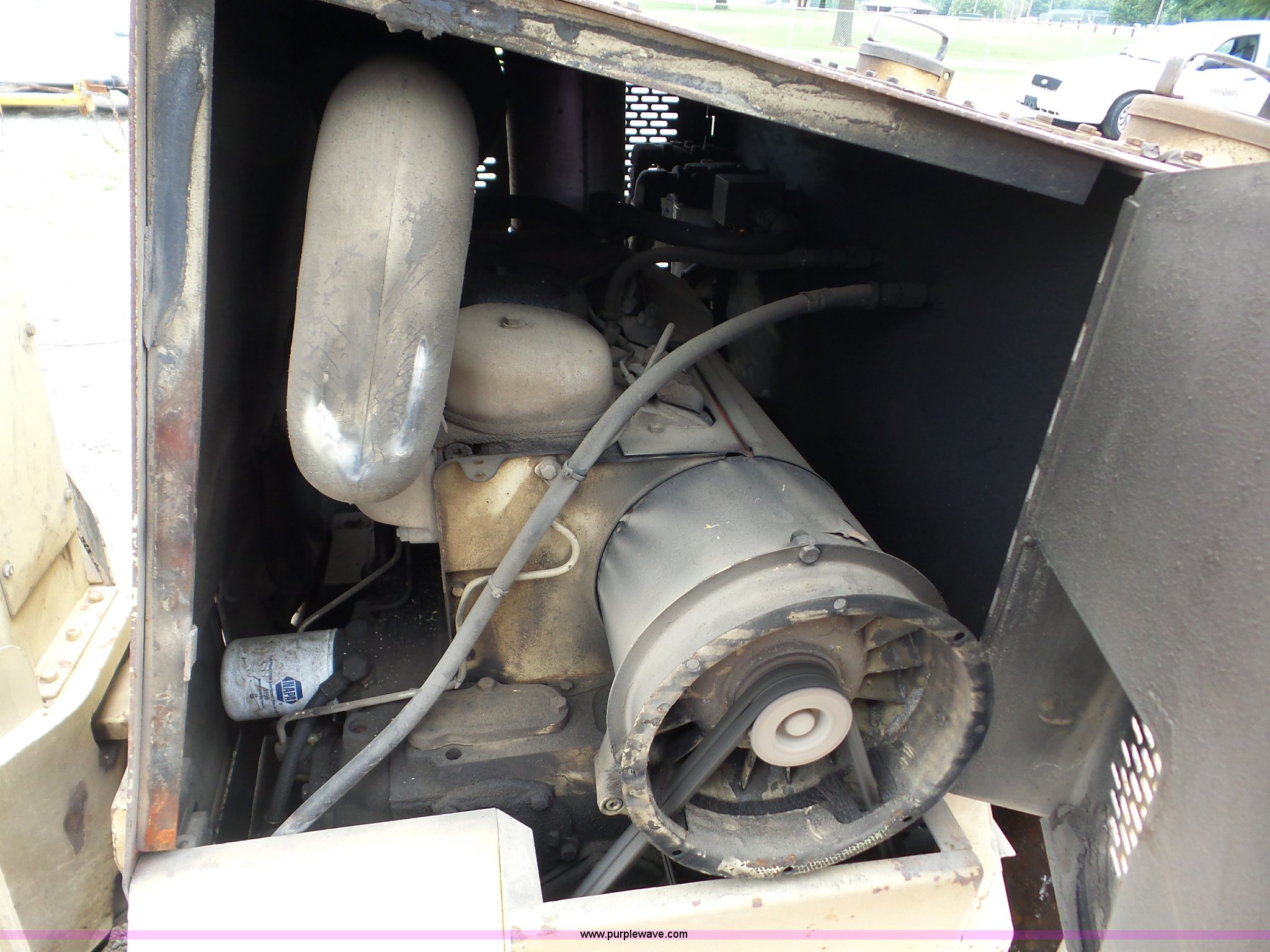 Ingersoll Rand DD-35 single drum roller. 6,933 hours on meter, Deutz two cylinder diesel engine, Hydrostatic transmission, Suspension seat, Vandal cover, 39"W x 40" diameter smooth drum, Double vibratory system, Front and rear water spray applicator, Front drum drive motor leak. City of Pittsburg. Pittsburg, KS 66762