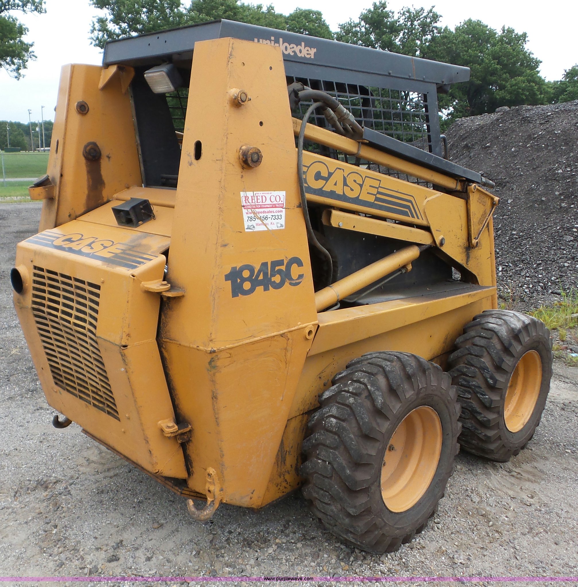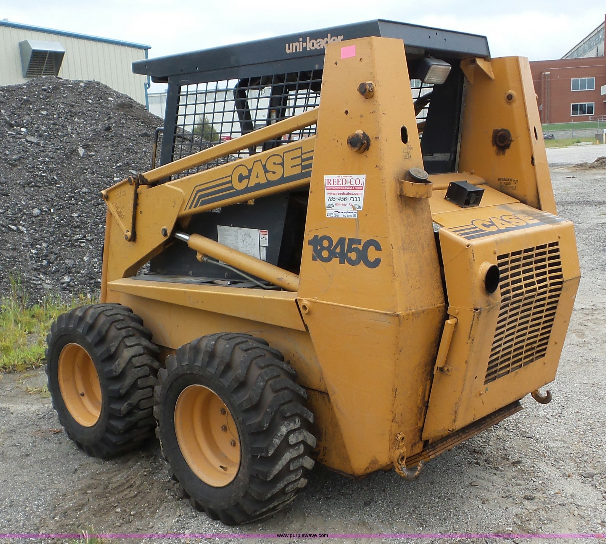 Purple Wave is selling a used Skid Steer Loader in Kansas. This item is a 1996 Case 1845C skid steer with the following: 4,798 hours on meter, Cummins 3.9L four cylinder diesel engine, Hydrostatic transmission, OROPS, Joystick controls, EMS panel, Front work lights, 12-16.5 NHS tires, 6,185 lbs. base operating weight, Serial JAF0193236