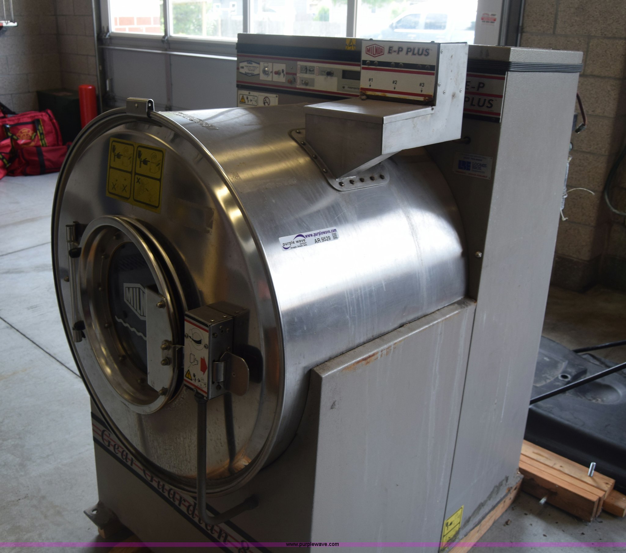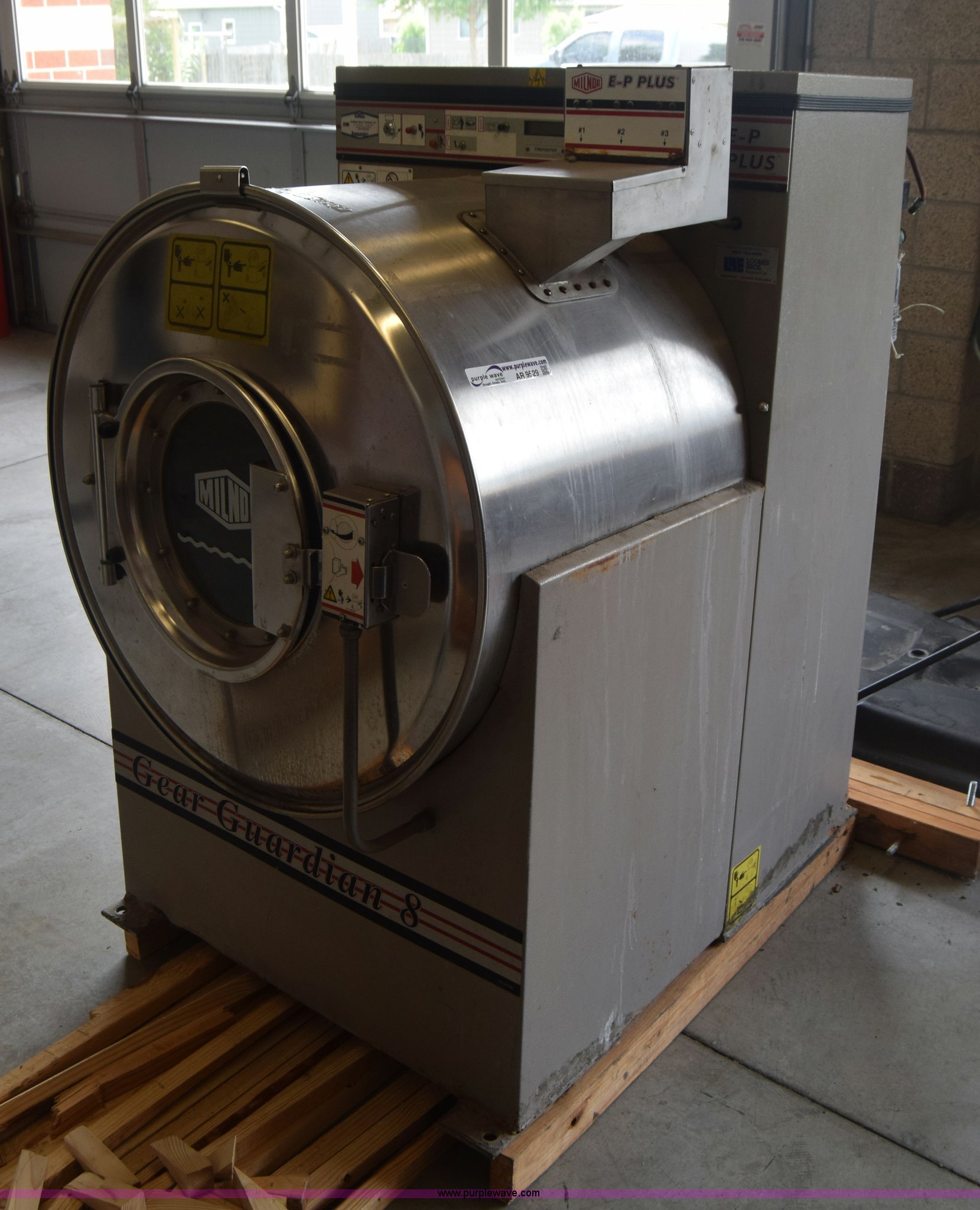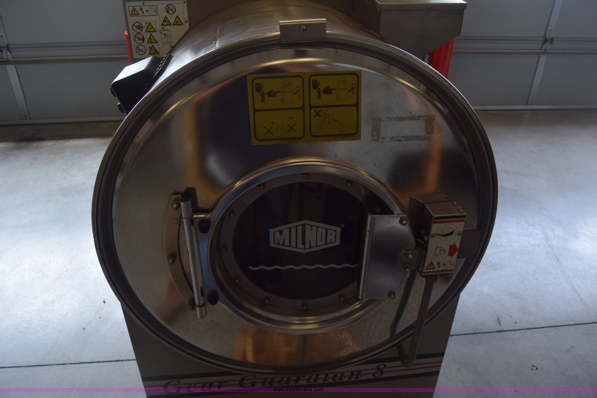 Purple Wave is selling a used Tools in Kansas. This item is a Milnor Gear Guardian 8 washer-extractor with the following: 208/240V, 55 lbs capacity, Digital display, Stainless steel construction, Serial 6760202