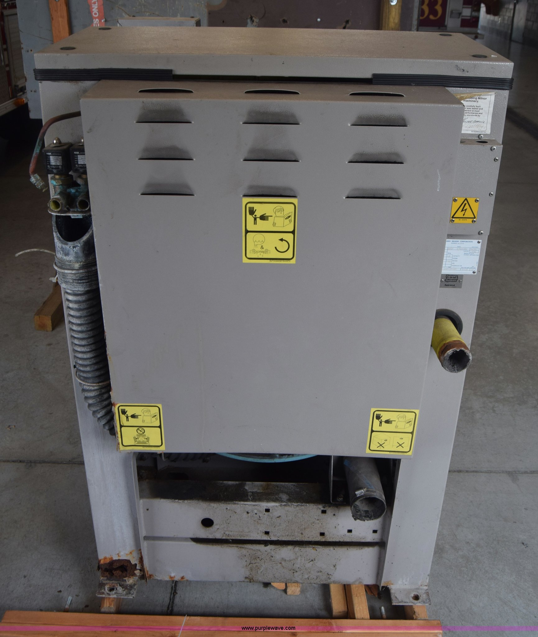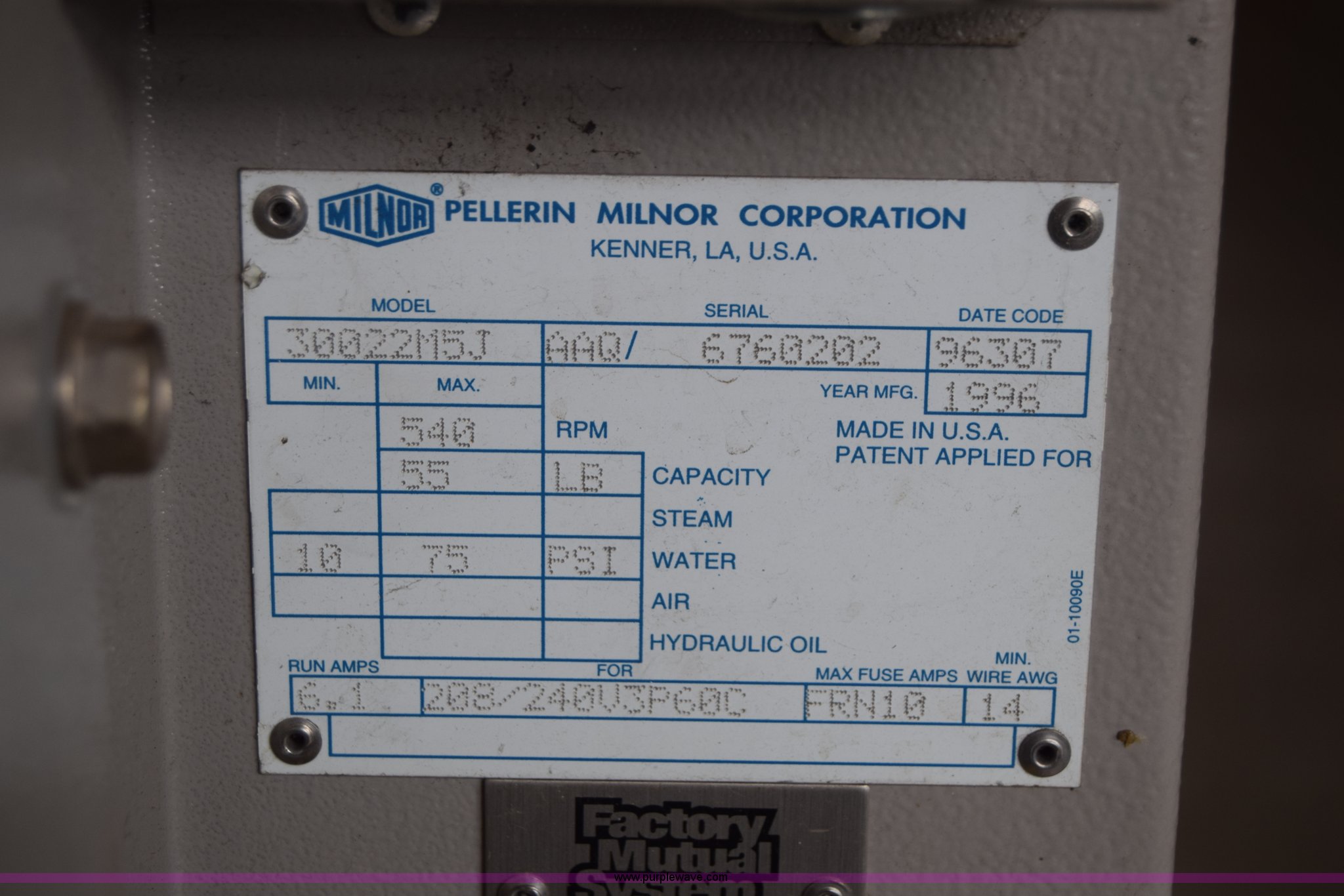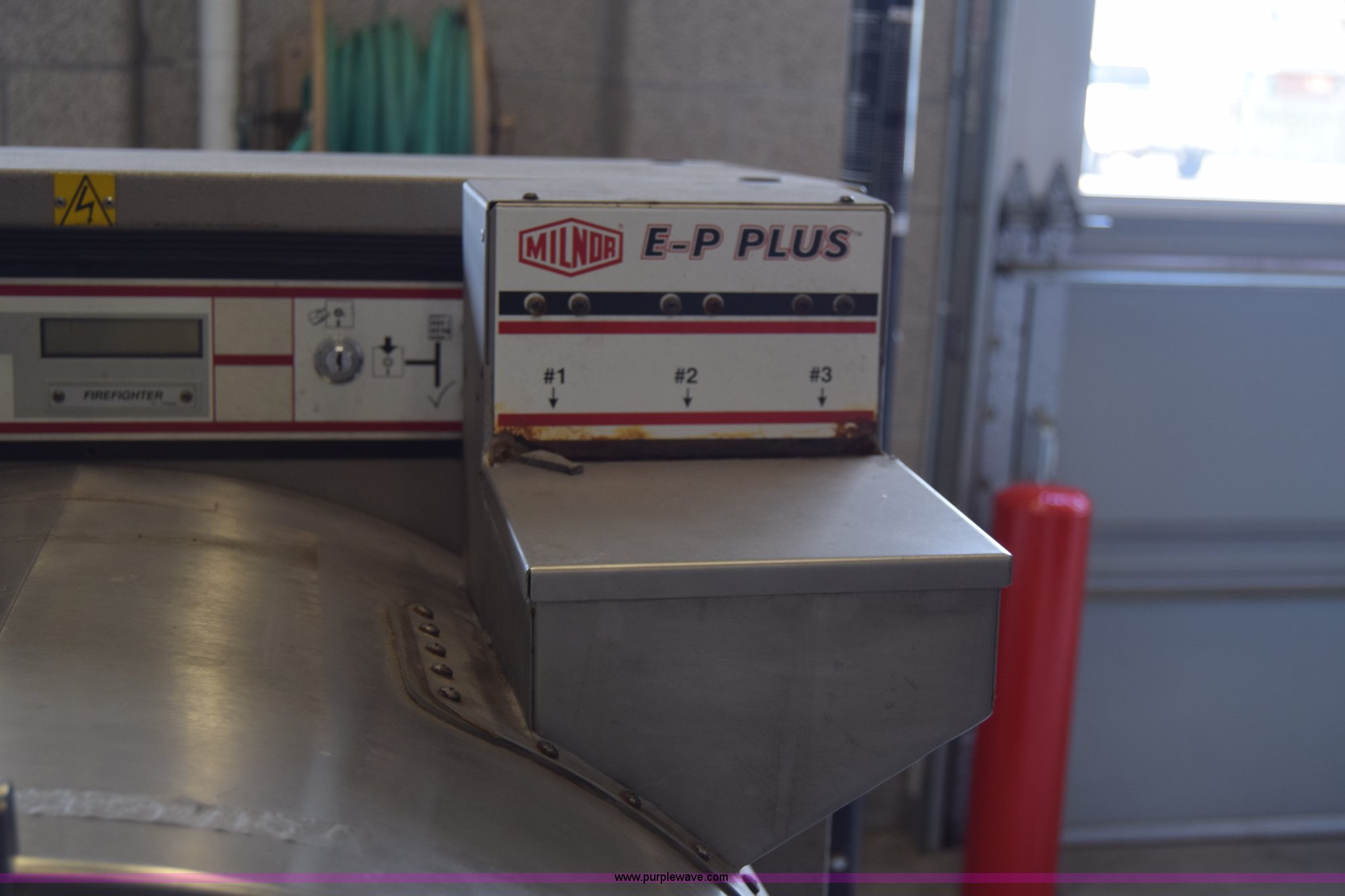 Purple Wave is selling a used Tools in Kansas. This item is a Milnor Gear Guardian 8 washer-extractor with the following: 208/240V, 55 lbs capacity, Digital display, Stainless steel construction, Serial 6760202