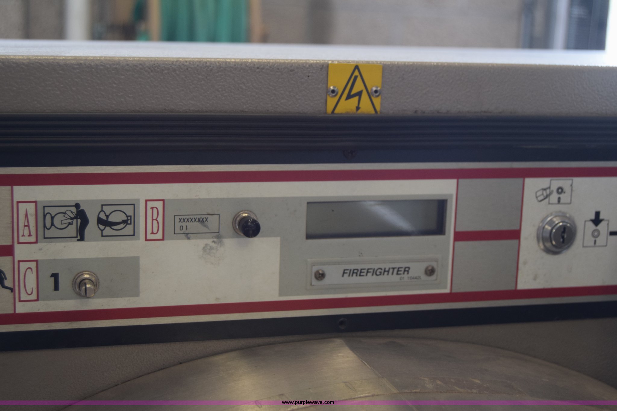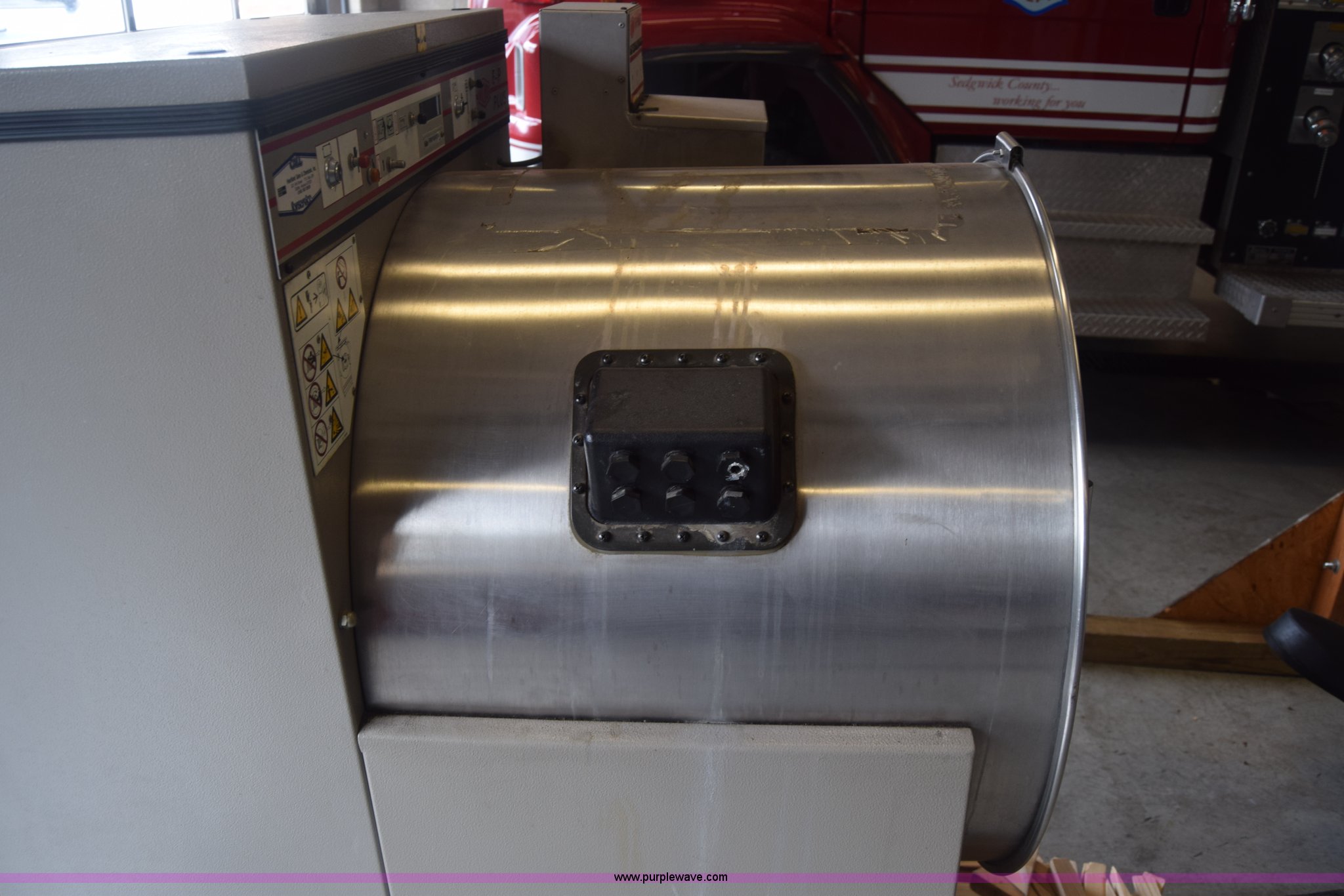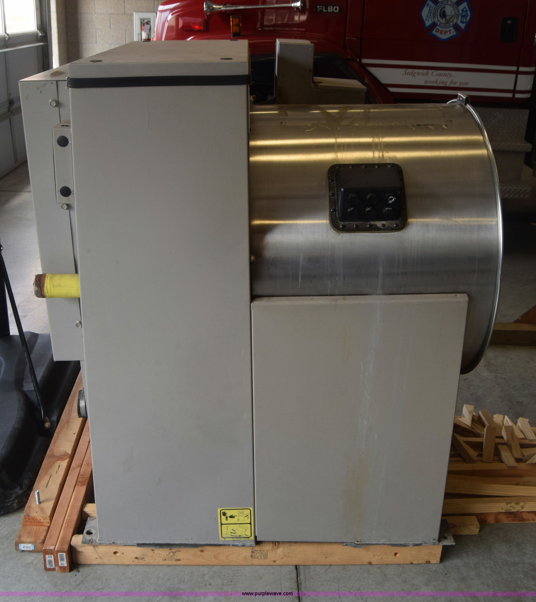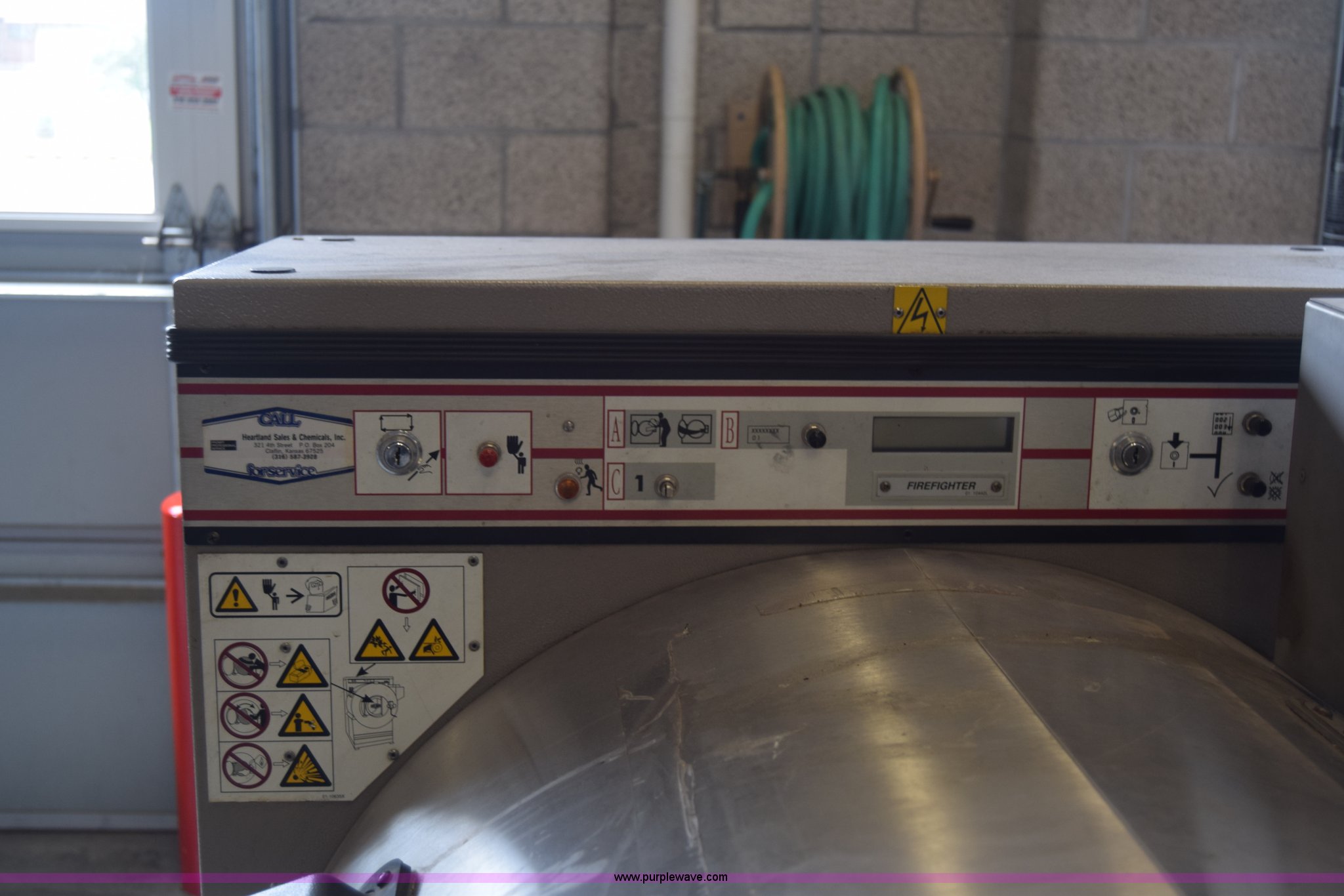 Milnor Gear Guardian 8 washer-extractor. 208/240V, 55 lbs capacity, Digital display, Stainless steel construction, Serial 6760202. Sedgwick County Fire Station No. 33. 10625 West 53rd St N. Maize, KS 67101
