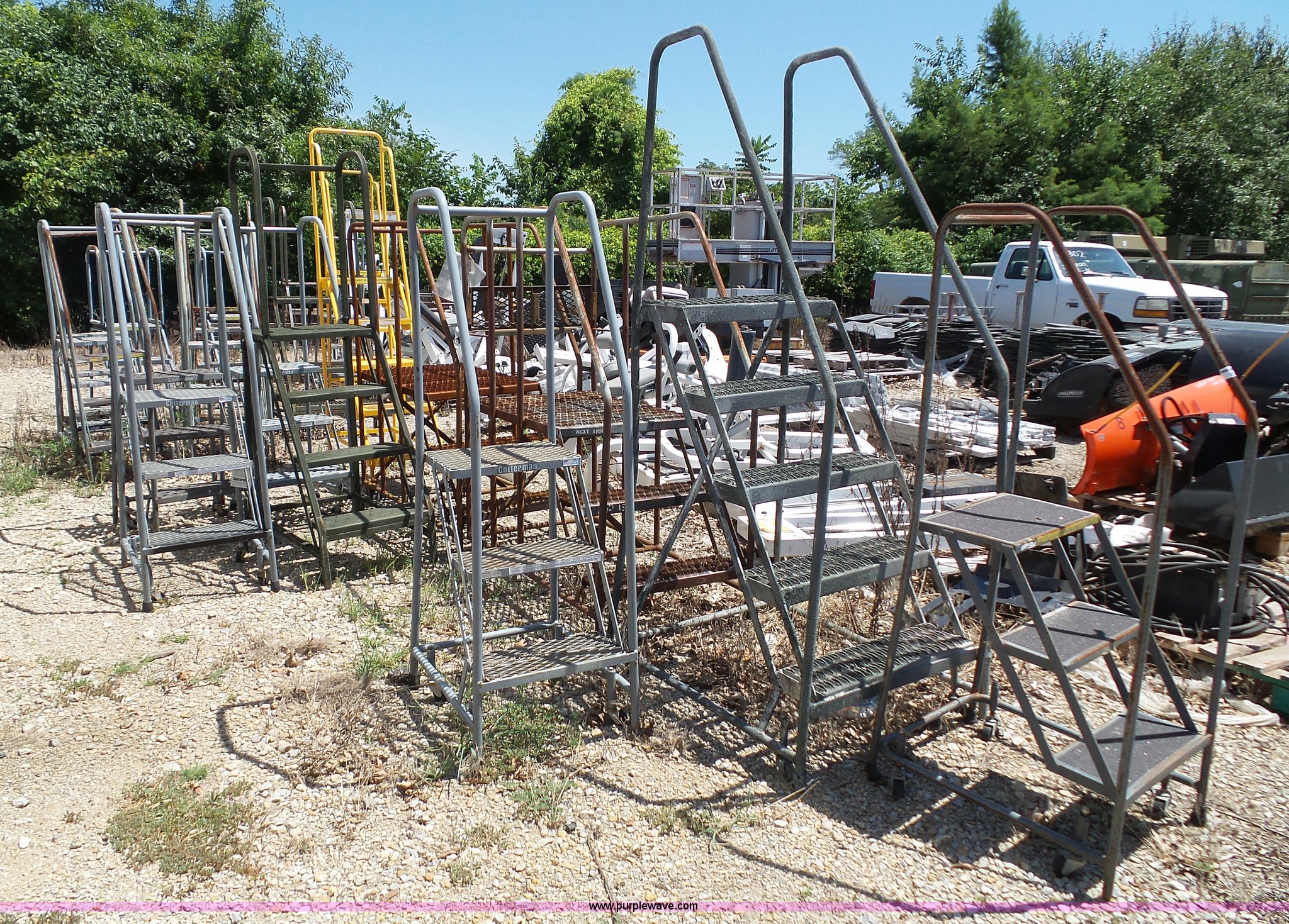 Purple Wave is selling a used Tools in Kansas. This item is a (22) safety ladders with the following: (3) five steps, Some damaged