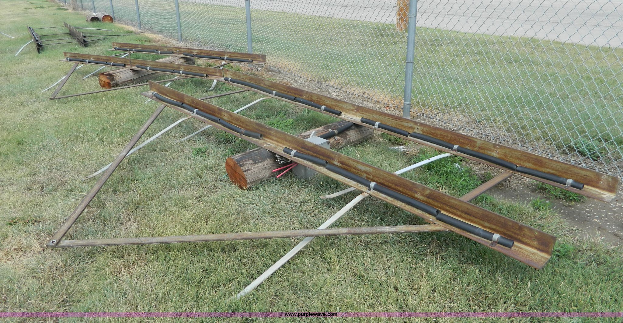 (6) angle iron light hangers. 130"L, 4" x 4" angle iron frames, Poles are not included, Electric box is not included. USD 208. 527 Russell. Wakeeney, KS 67672