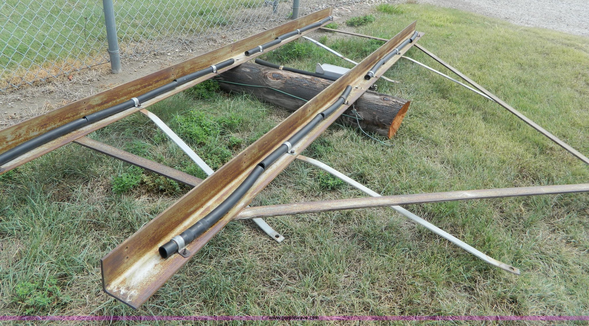 Purple Wave is selling a used Building Materials in Kansas. This item is a (6) angle iron light hangers with the following: 130"L, 4" x 4" angle iron frames, Poles are not included, Electric box is not included