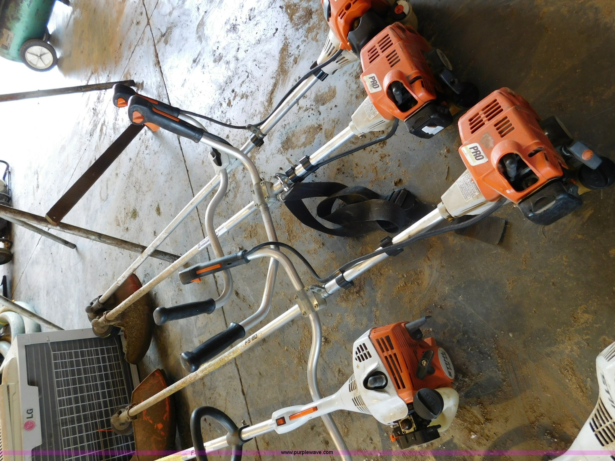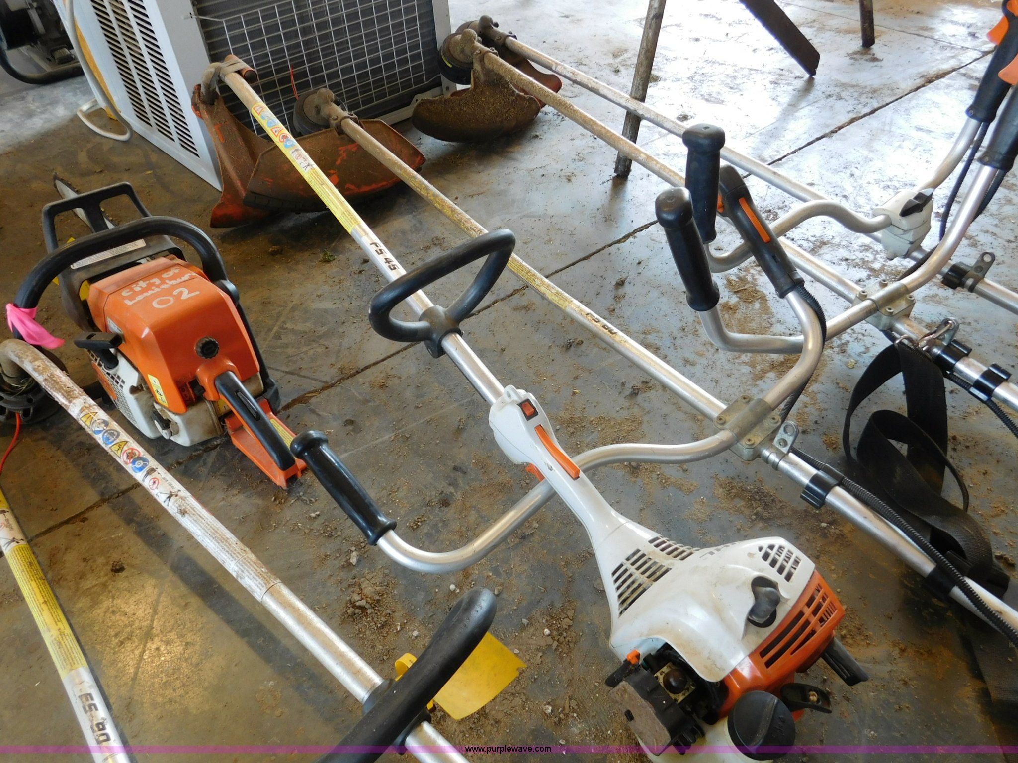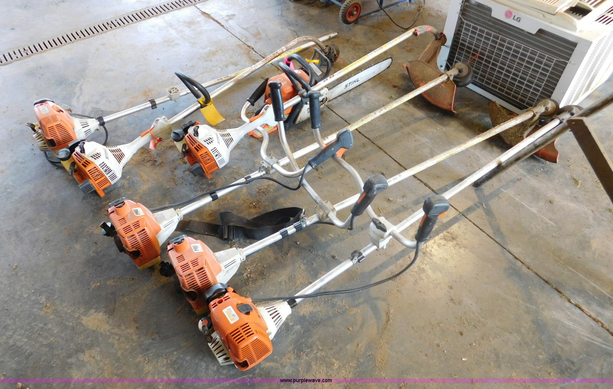 Purple Wave is selling a used Lawn and Garden in Kansas. This item is a Lawn and garden equipment with the following: Stihl ES-90 string trimmer, Non-operational unit, parts only, Stihl FS45 string trimmer, Stihl FS45 string trimmer, Head missing, Non-operational unit, (2) Stihl FS80 string trimmers, Stihl FS110 string trimmer, Head needs to be replaced, Stihl MS290 chainsaw, No power