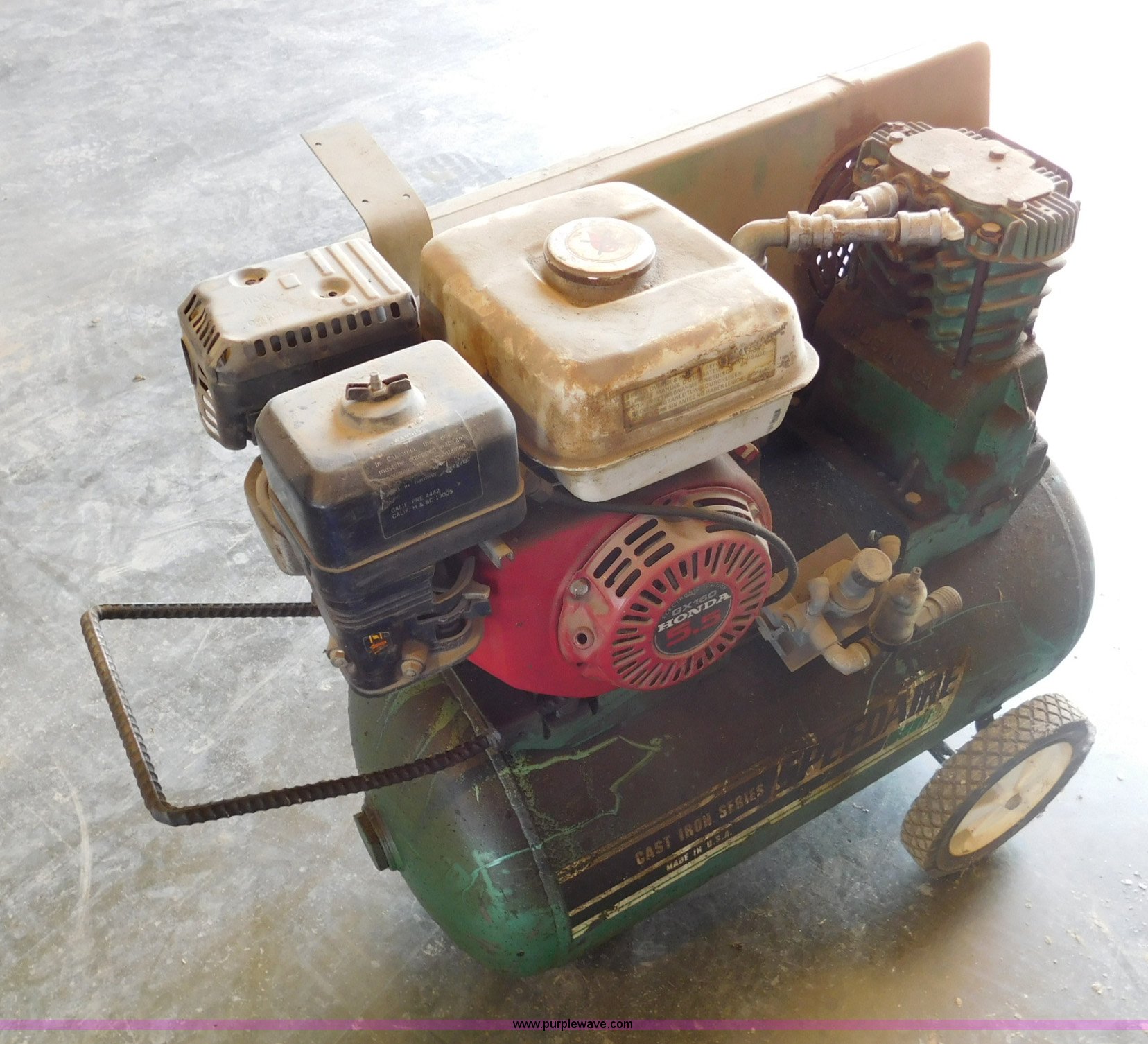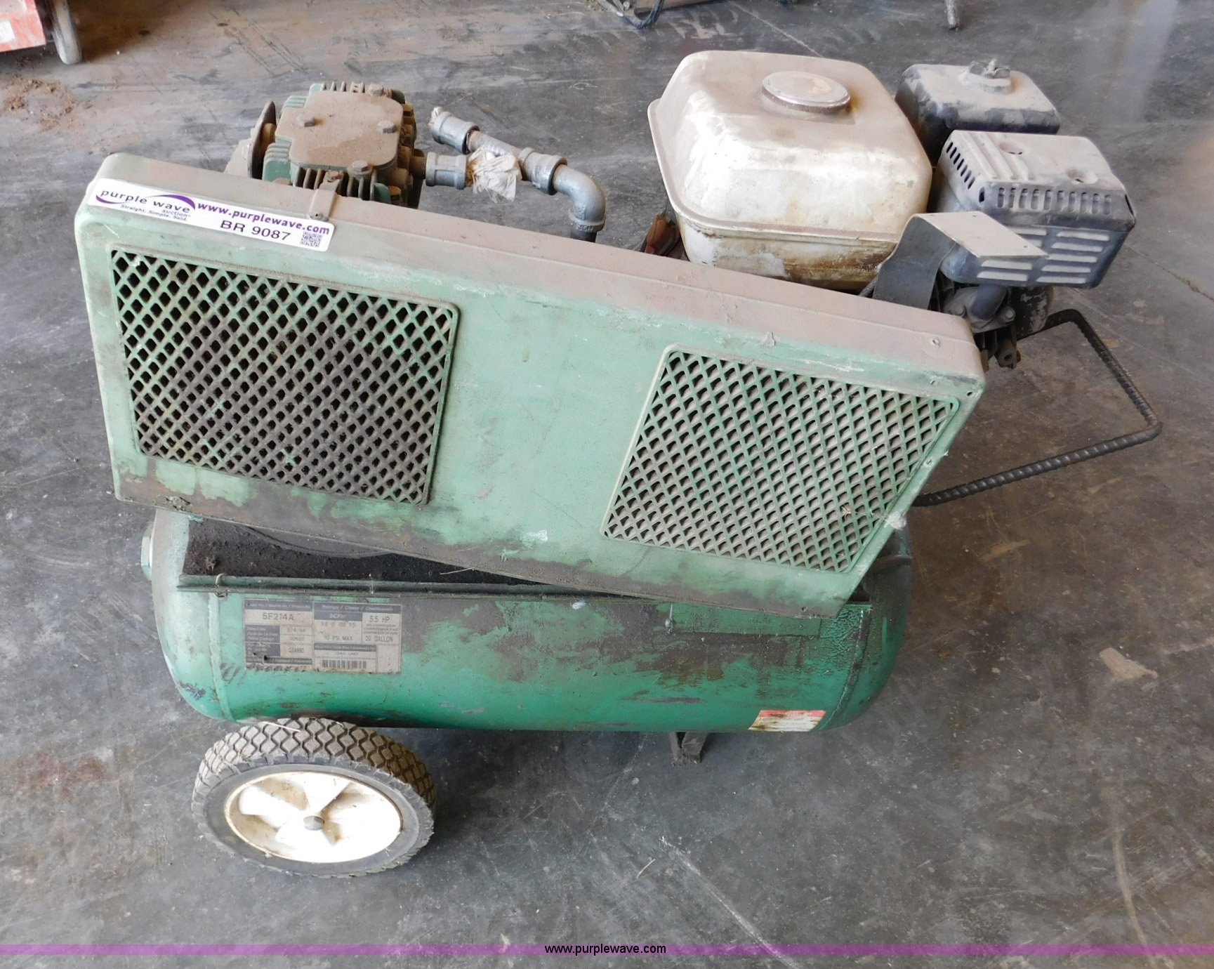 Purple Wave is selling a used Air Compressor in Kansas. This item is a Speedaire 5FZ14A air compressor with the following: Honda 5.5 HP gas engine, 110 psi, Non-operational unit