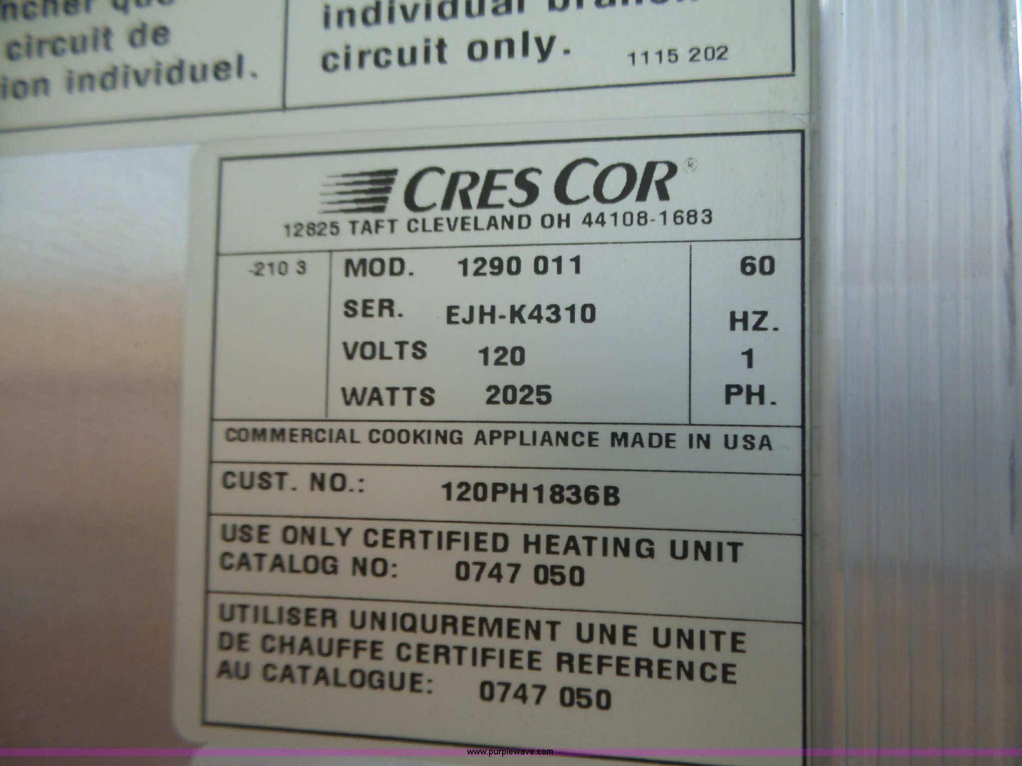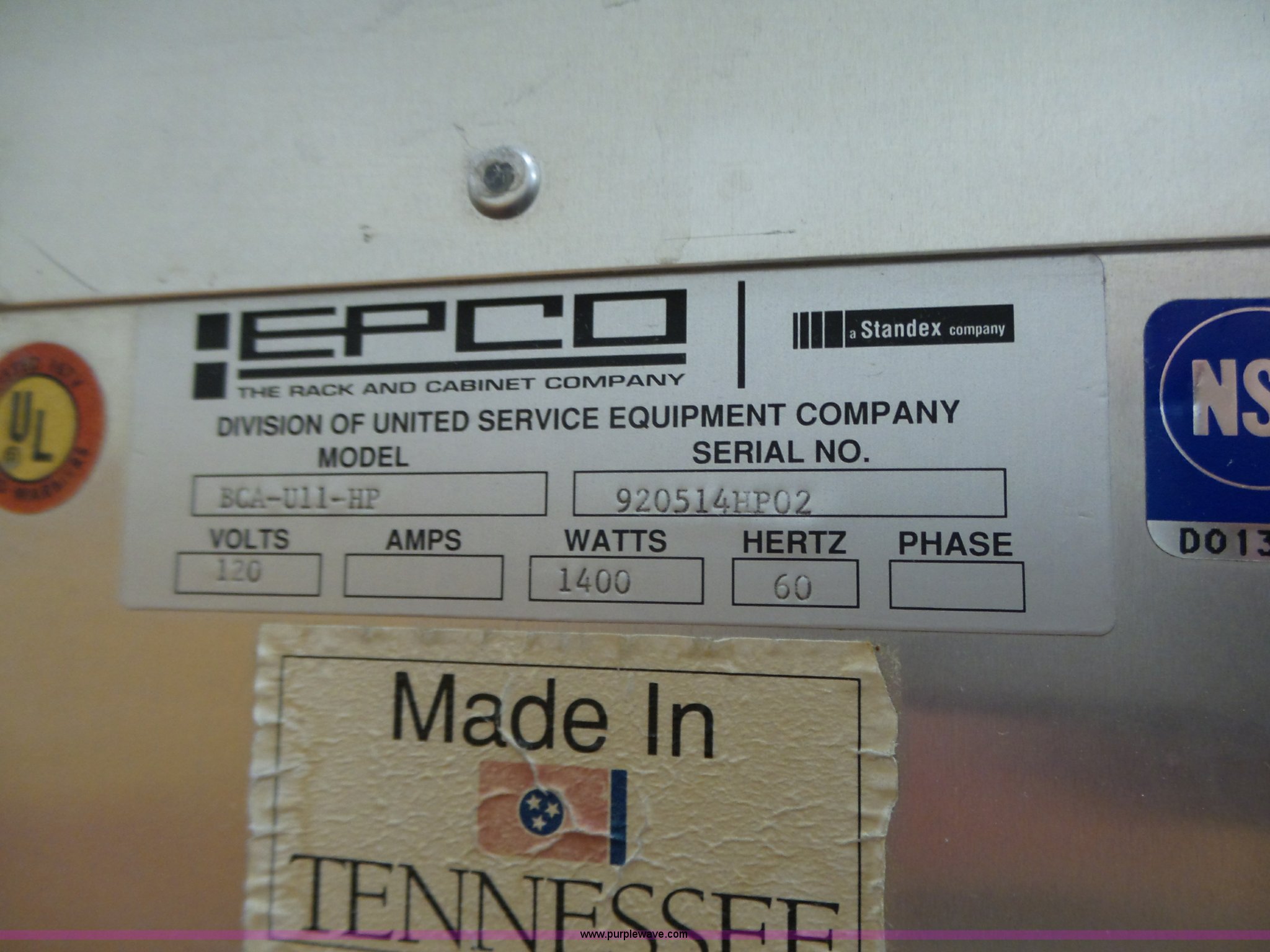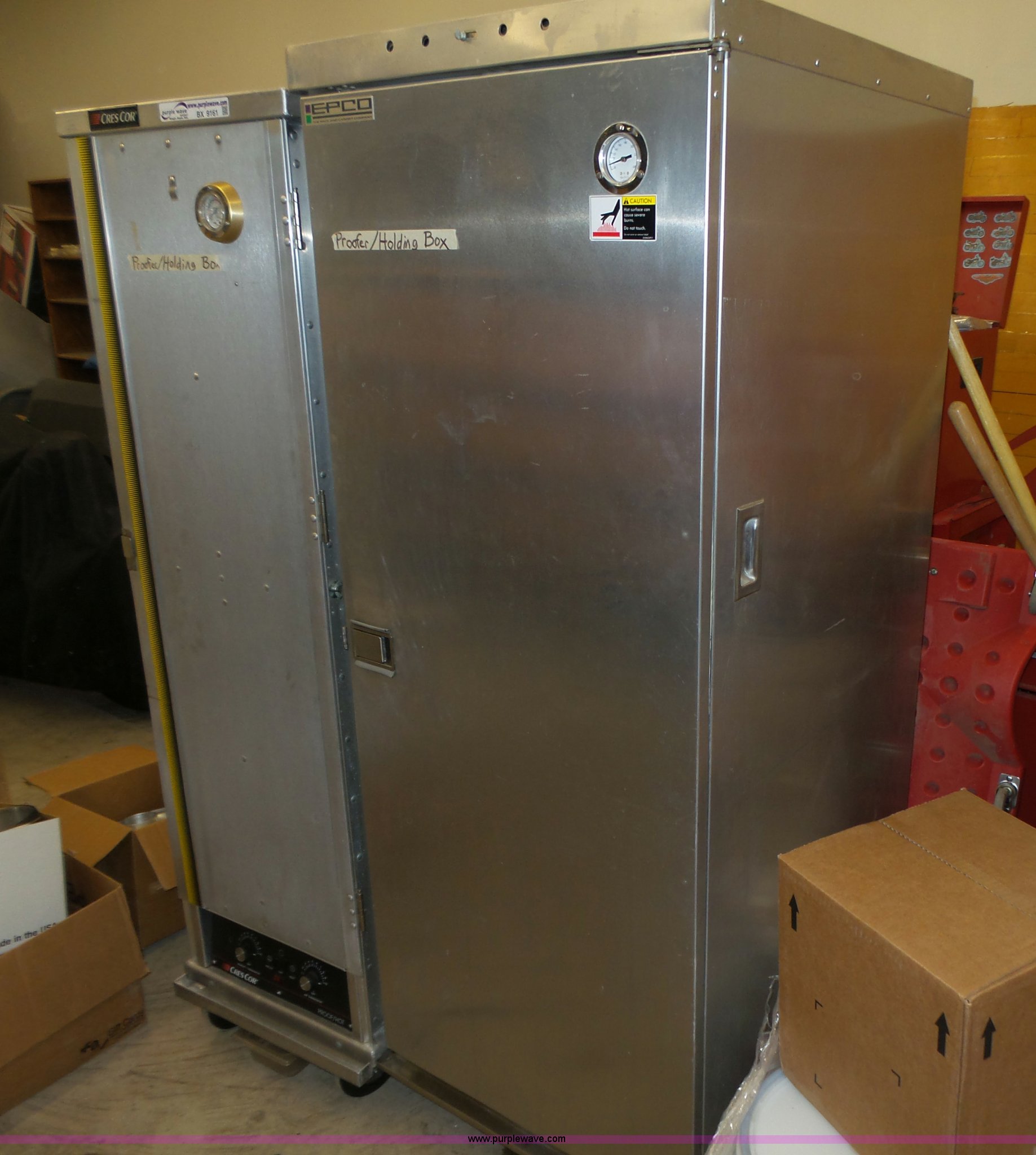 Purple Wave is selling a used Restaurant Equip. in Nebraska. This item is a (2) stainless steel food warmers with the following: Crescor, Model 1290011, Serial EJHK4310, Epco, Model BCA-U11-HP, Serial 920514HP02, Unit temperature issues