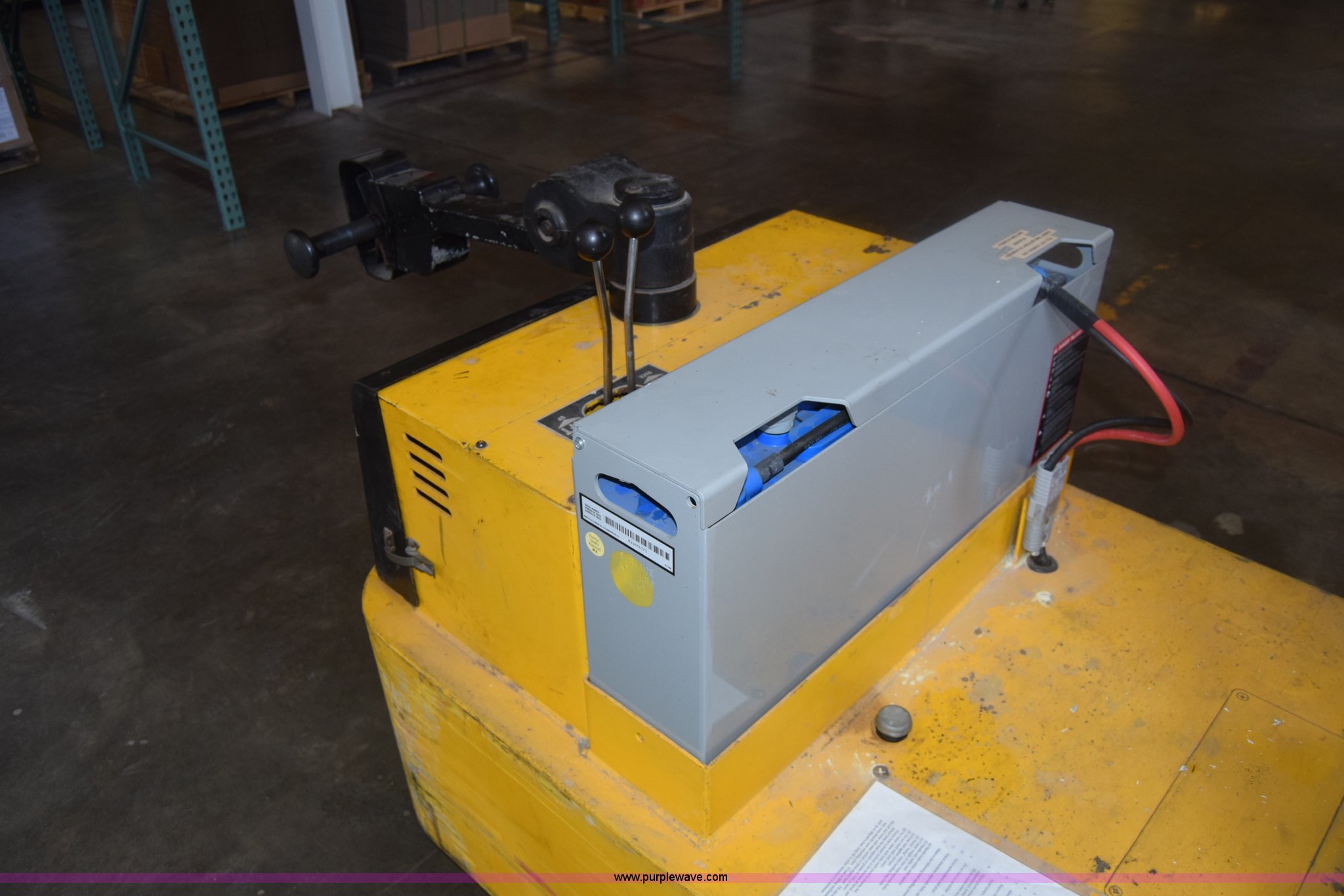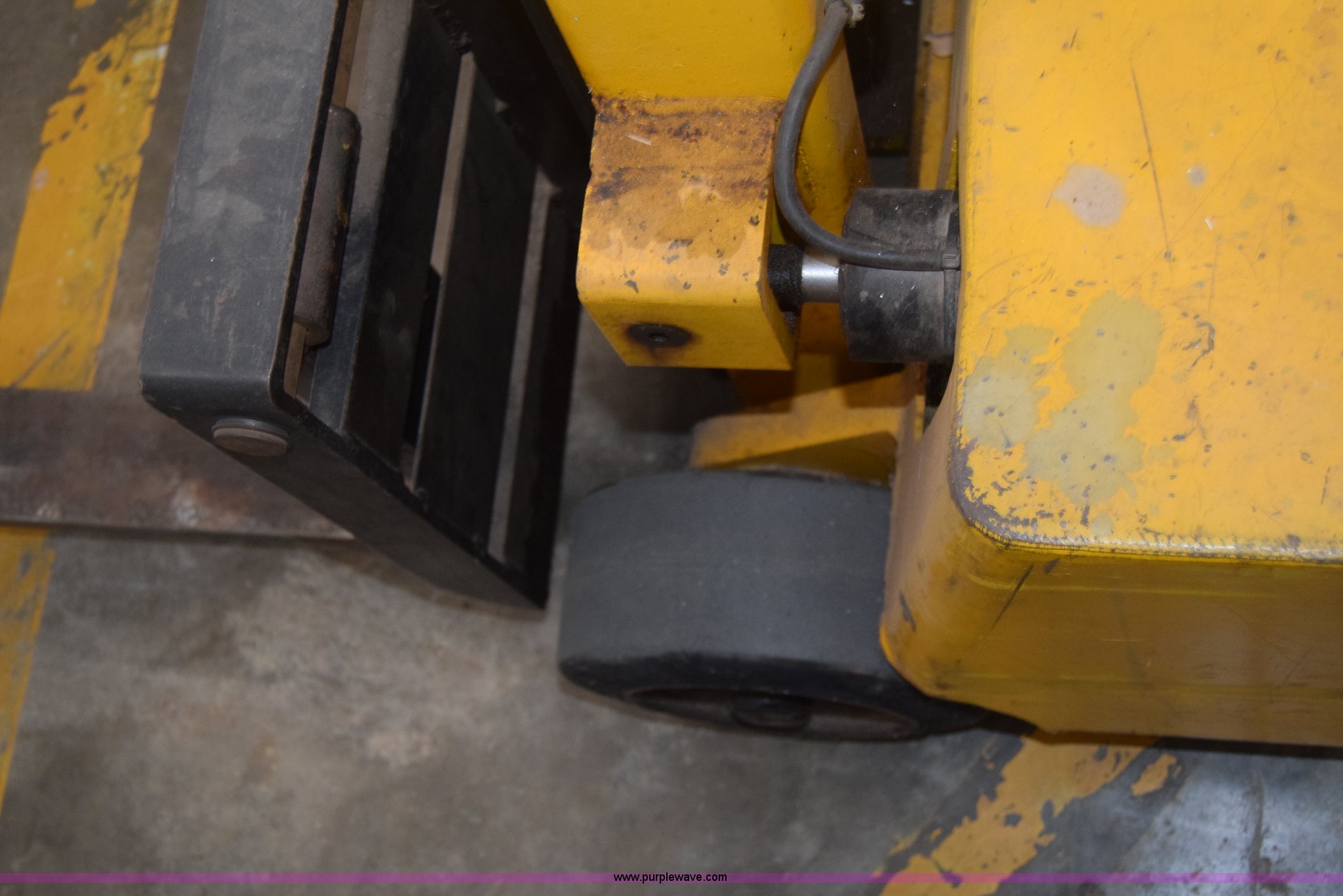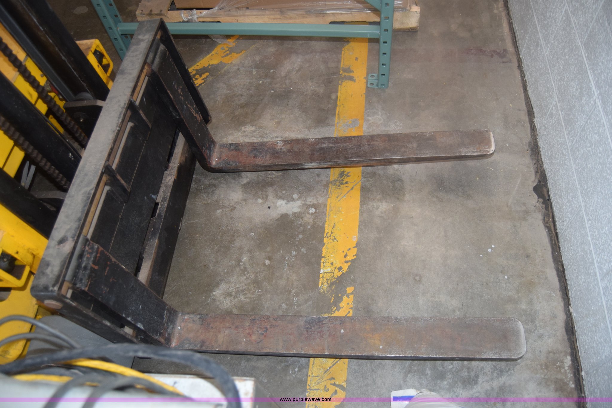 Purple Wave is selling a used Warehouse Forklift in Kansas. This item is a Big Joe forklift with the following: Model PDC-20-124, Electric motor, 2,000 lbs capacity, 36" forks, Charger, Batteries need replaced, Serial 60272